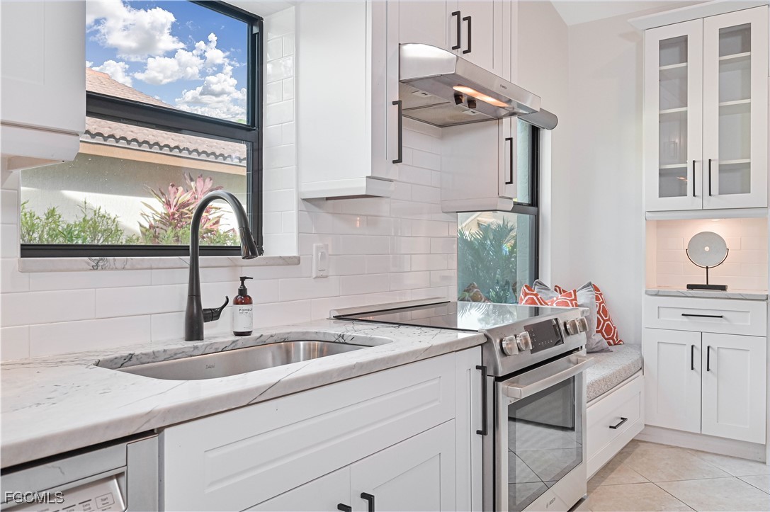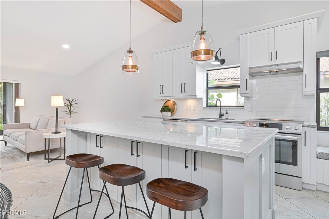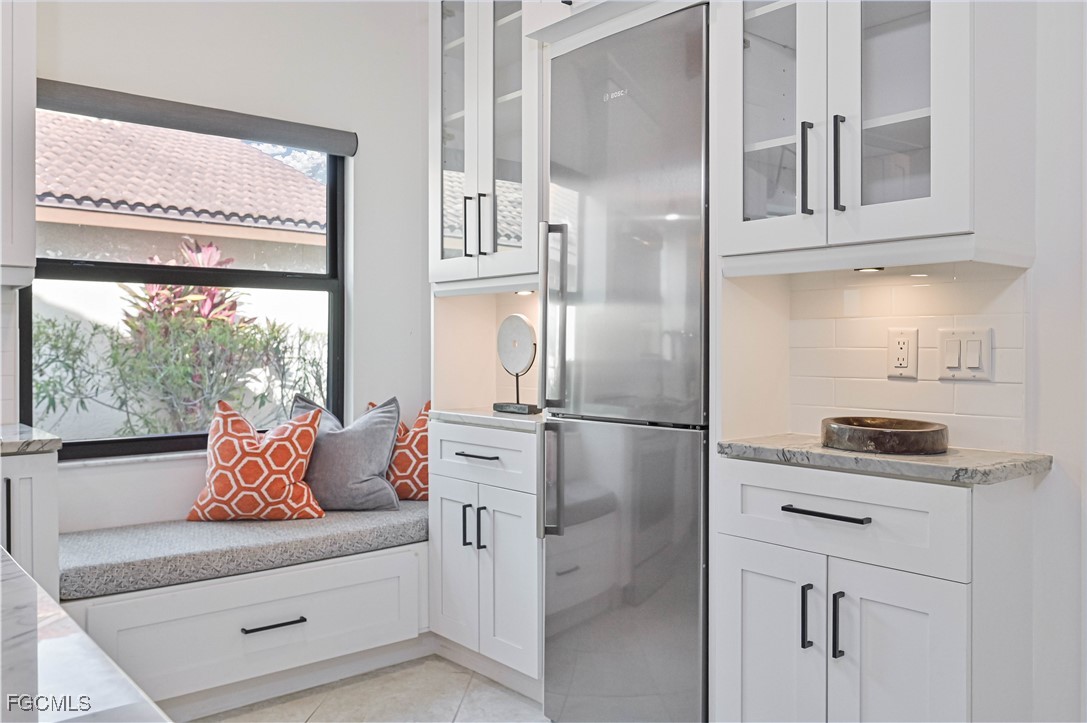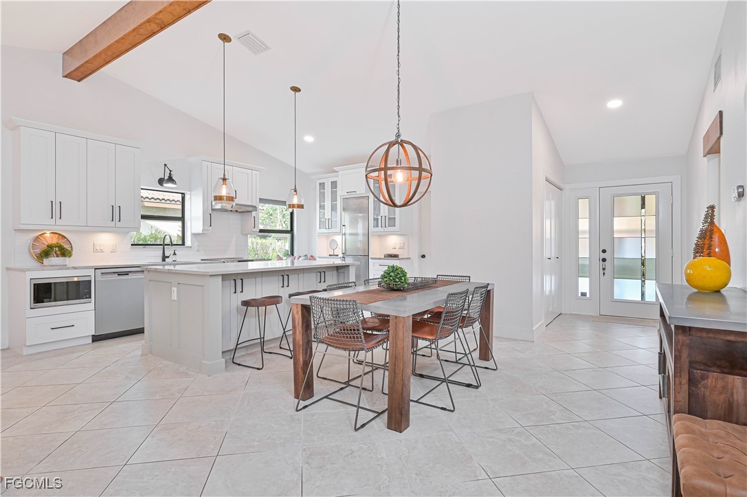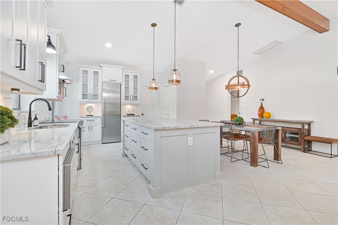 Experience the perfect blend of modern luxury and timeless design in this meticulously renovated villa, offering over $150K in high-end upgrades. Nestled in the heart of Fort Myers this exceptional home is walking distance to Bell Tower shops and restaurants. This open-concept design exudes sophistication at every turn. The entire home has been upgraded with new lighting, doors, trim, and fans, with striking faux beams adding character and warmth. The stunning kitchen is a chef’s dream, featuring custom cabinetry, top-of-the-line Bosch appliances, gorgeous quartzite countertops, and a spacious island perfect for entertaining family and friends. Both bathrooms have been tastefully updated with custom-built vanities and quartzite countertops, creating a spa-like experience. The master suite is a true retreat, offering a custom built in closet, walk-in shower, dual sinks, and a stylish herringbone backsplash. Step through the back sliders (accessible from both the master and living room) to the fully screened lanai. Enjoy your morning coffee or evening sunsets in this serene outdoor space, complete with new pavers and a lush, private backyard. The community pool is just a short stroll away, providing the perfect place to unwind.