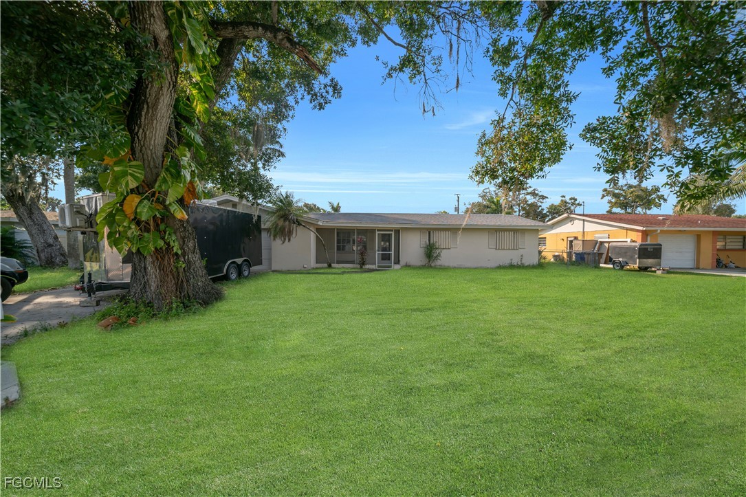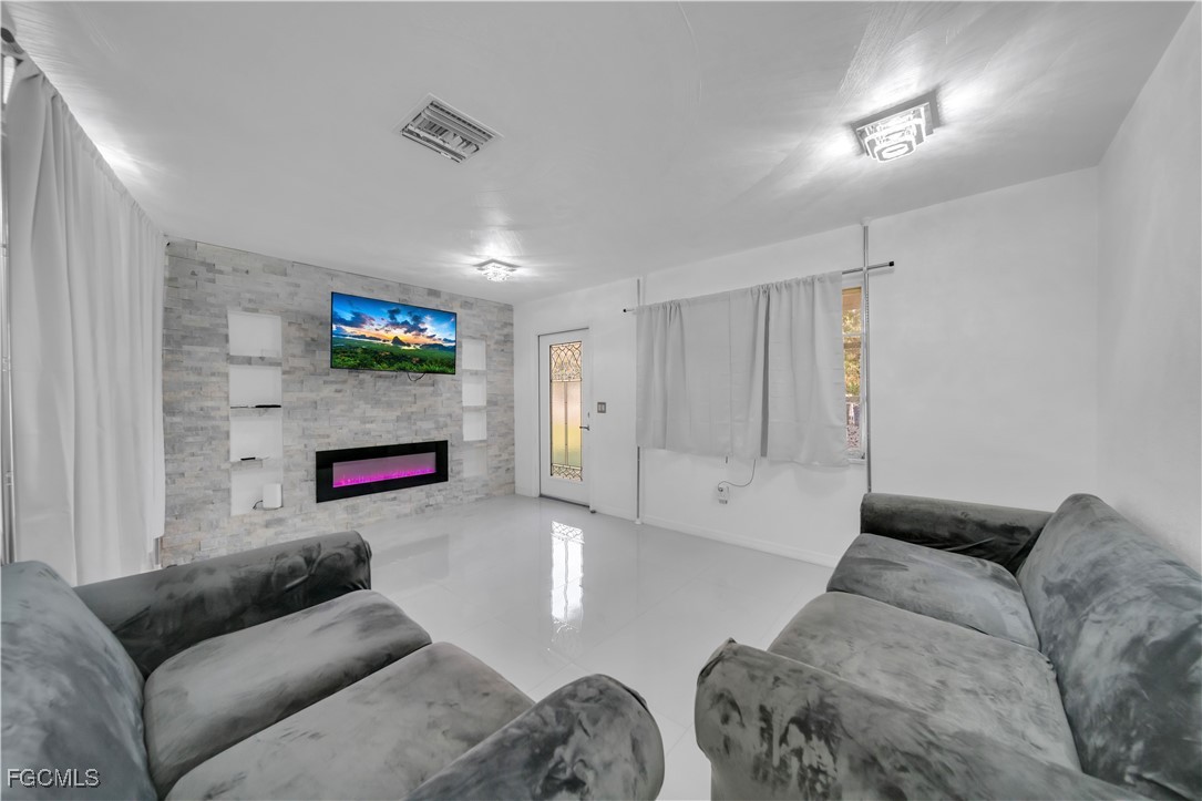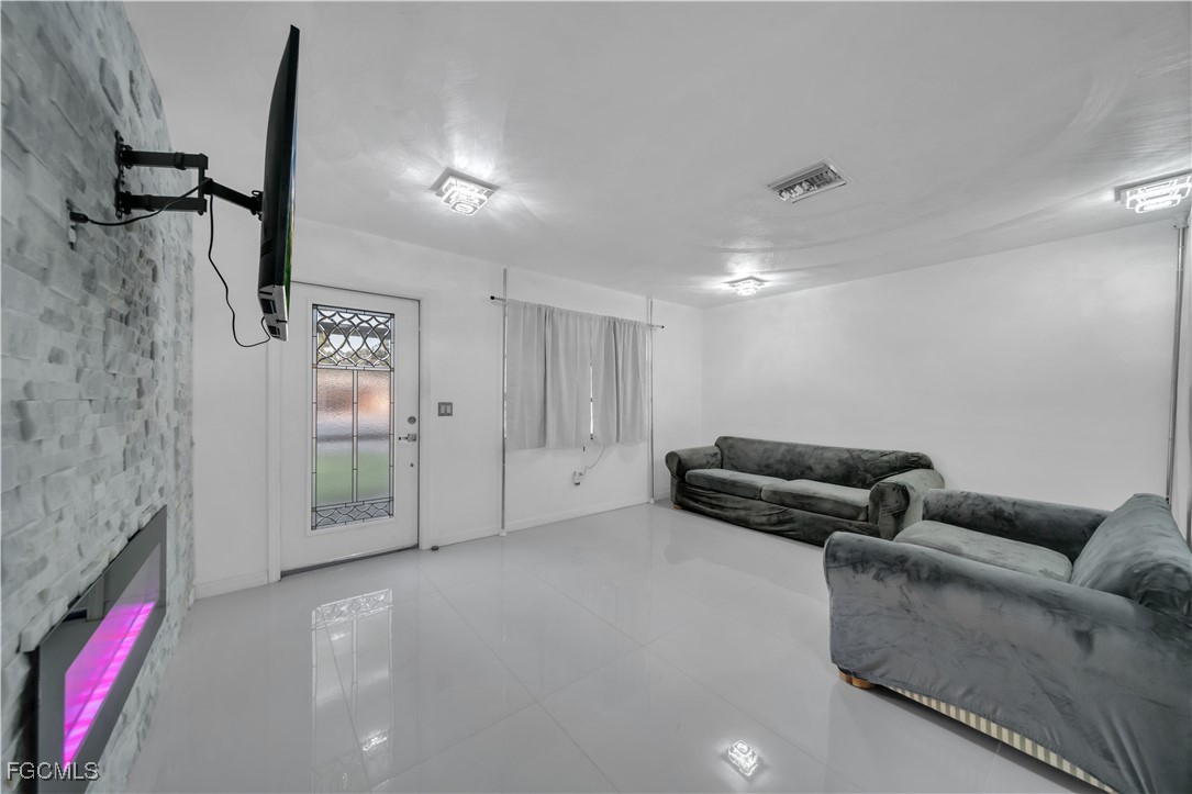 Beautiful home in Fort Myers! It features 3 bedrooms and 2 bathrooms. Modern kitchen with stunning quartz countertops. The bathrooms are updated for a sleek look, tile throughout the property. The living-room area has accent brick wall "entertainment set up" and a cozy fireplace. It's move-in ready and also includes an extra kitchen in the lanai area. Come take a look!