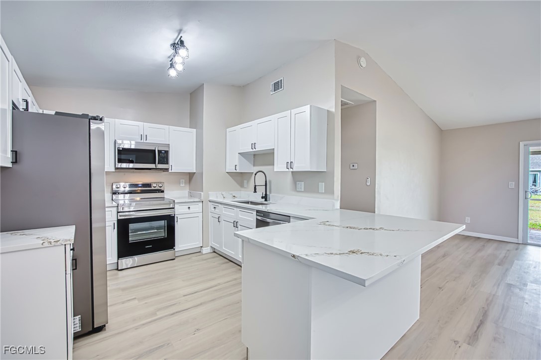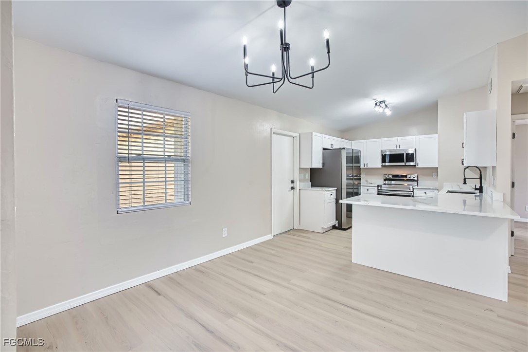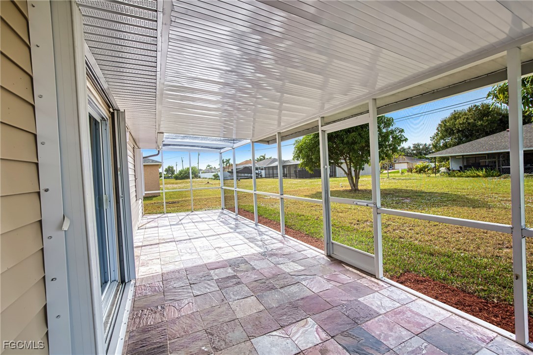 Completely Remodeled Cape Coral Gem on a Spacious Corner Lot! Welcome to 4022 SW 8th Place, a beautifully updated single-family home nestled in a desirable area of Cape Coral. This light and airy residence sits proudly on a large corner lot and offers modern comfort, timeless style, and plenty of room to relax or entertain. Step inside and be greeted by vaulted ceilings and an open-concept layout that feels both inviting and expansive. The home has been completely remodeled, featuring a brand-new kitchen with crisp white cabinetry, elegant solid-surface countertops, and a Samsung stainless steel appliance package that will delight any home chef. Throughout the living areas, you’ll find luxury vinyl plank flooring, fresh interior paint, and new lighting fixtures with remote ceiling fans—creating a cohesive, move-in-ready atmosphere. Both bathrooms have been beautifully updated with new vanities and toilets, and the primary ensuite showcases a gorgeous new tile shower. Enjoy Florida living on the newly screened lanai, perfect for morning coffee or evening gatherings. The new HVAC system (2020) ensures comfort year-round, and hurricane shutters provide peace of mind during storm season. Outside, the oversized yard offers endless possibilities—plenty of space to add a pool, garden, or play area for pets and family fun. A two-car garage adds convenience and extra storage. With its modern upgrades, spacious layout, and prime Cape Coral location, 4022 SW 8th Place is ready to welcome you home.