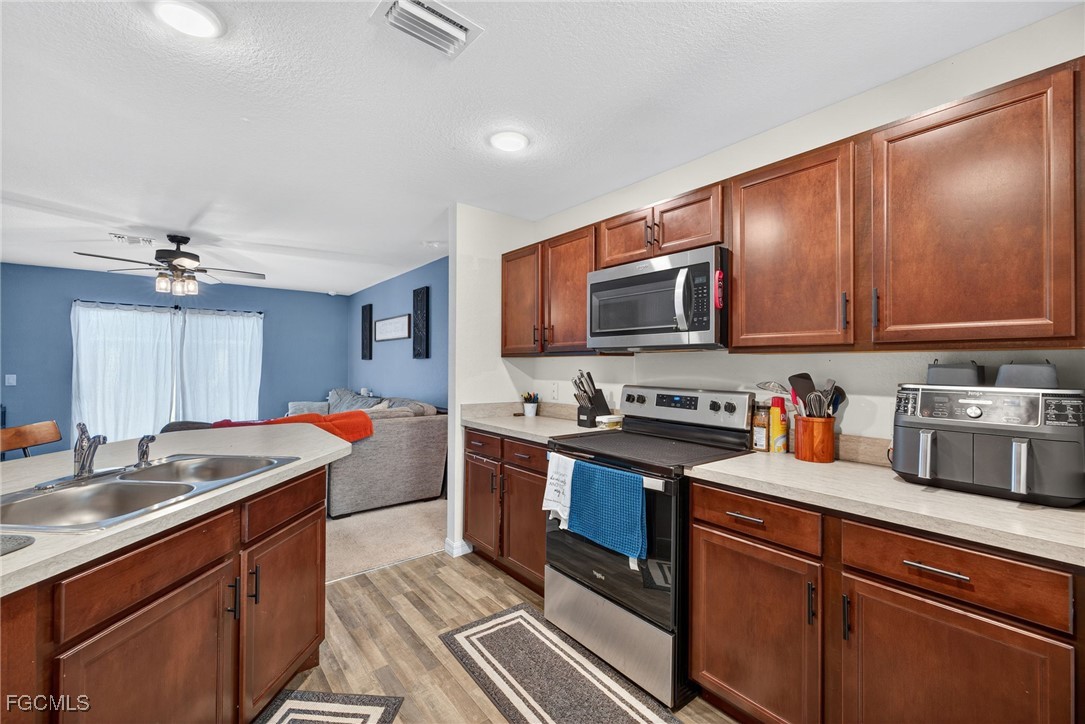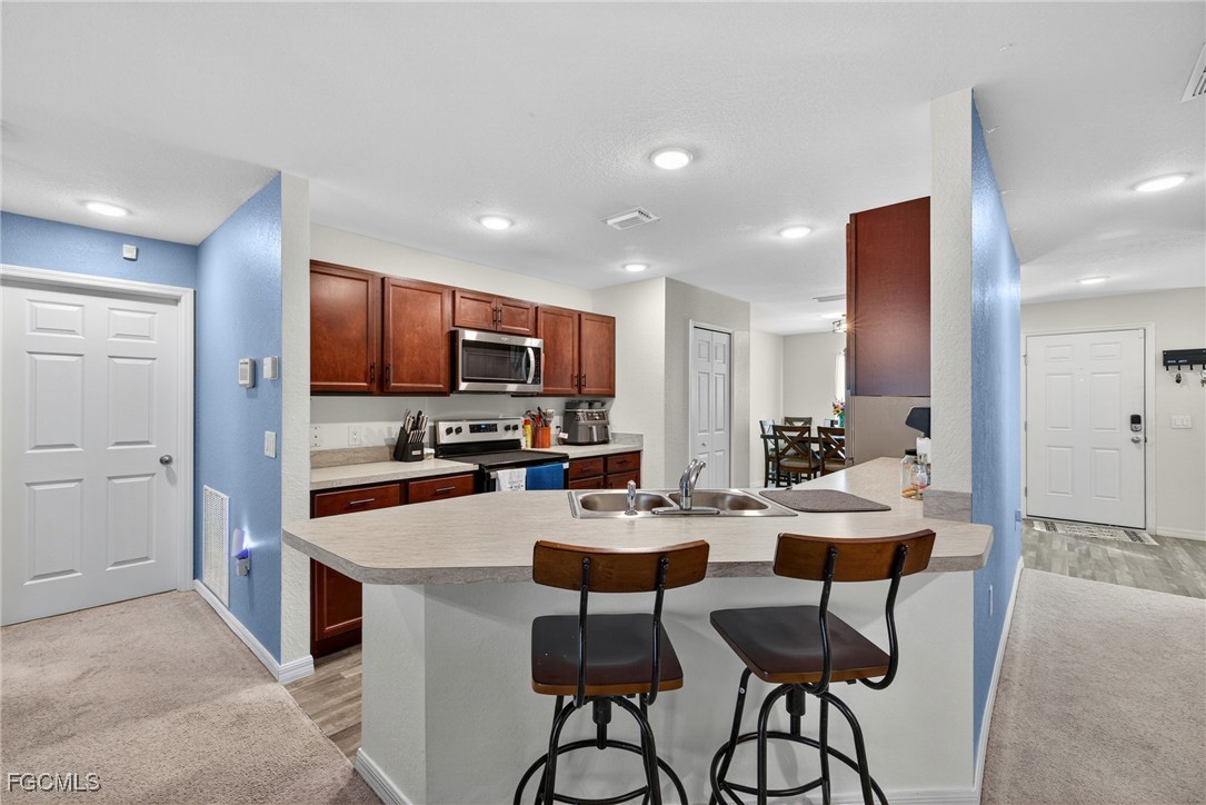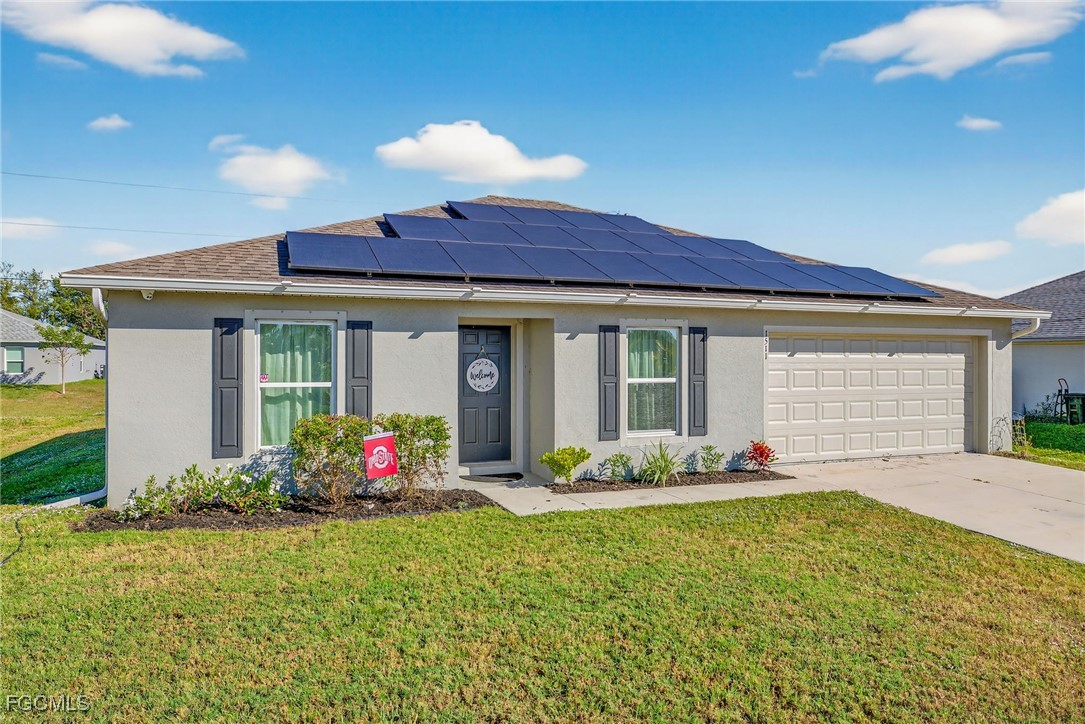 Welcome home to this charming 3-bedroom, 2-bathroom ranch-style home located in a quiet neighborhood of Northeast Cape Coral. Very efficient home with newly installed (paid in full) solar panels, built in 2022, featuring a popular open-concept design and a desirable split-bedroom floor plan that offers privacy for the owner's suite. The spacious interior boasts a formal living room (perfect for a den or home office), a separate formal dining area, and a large great room with volume/cathedral ceilings. The kitchen, which overlooks the great room, offers a pantry and ample cabinet and counter space, ideal for entertaining. This home is located close to restaurants, schools, hospital & a short drive to downtown Cape Coral or Downtown Fort Myers & the Sandy Beaches of Fort Myers & Sanibel Island. This is a Great property for a permanent home, investment income or even a great get-a-way vacation home you can just lock the doors and leave with no worries. MAKES FOR A GREAT RENTAL BECAUSE OF ITS LOCATION.