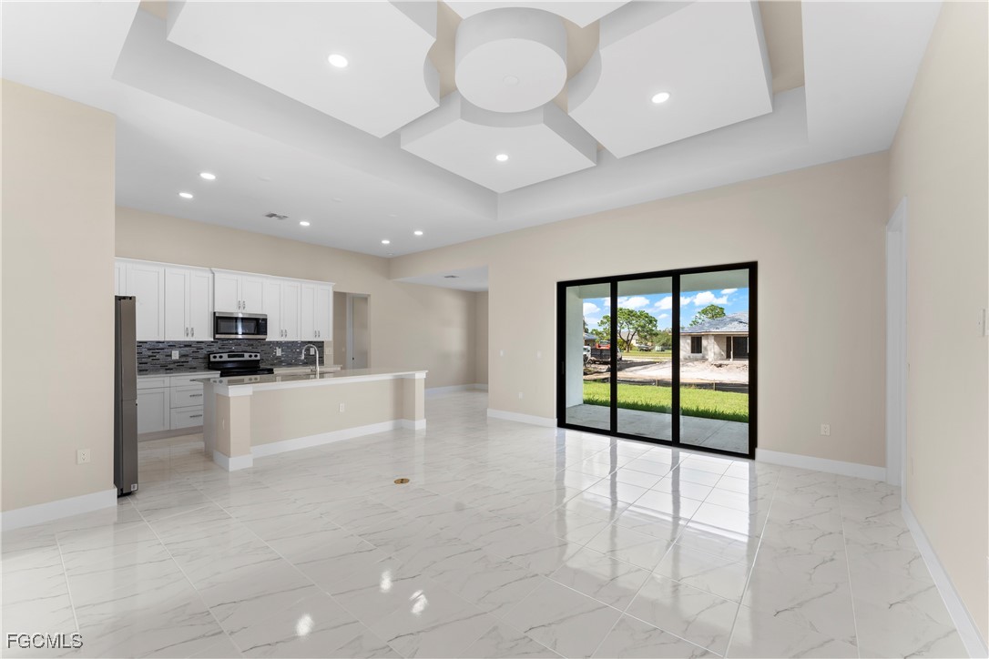 NEW CONSTRUCTION - With French door entry, which gives the feeling of elegance upon entry. This new construction home features high-end updates and finishes. With 3 bedrooms, a large Den, 2 bathrooms and 1871 square feet of living space. Equipped with stainless steel appliances, quartz countertops, soft-close white cabinets. The center island with ample space and integral to the great room and dining area. Elegant ceramic floors and tray ceilings create an elegant and luxurious atmosphere. These extend to the master bedroom that is full of comfort and spaciousness, with separate walking closets for him and her, spectacular bathroom with large shower and exposed bathtub, double sinks and closet to keep the entire area free and accessible. The two remaining bedrooms are ample in size and with closets, providing comfortable accommodation for family or guests. 2-car garage, laundry facilities conveniently located inside the residence, and impact-resistant doors and windows ensuring protection from the elements. Located in the central Lehigh Acres area, this home offers easy access to shopping, dining, and all the amenities the area has to offer. Whether you are looking for a quiet retreat or a vibrant community atmosphere, this home truly has it all. Some materials and colors may vary.