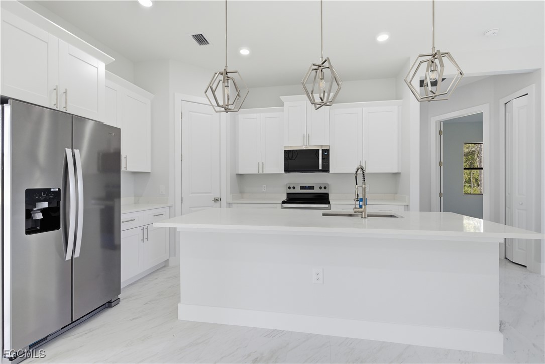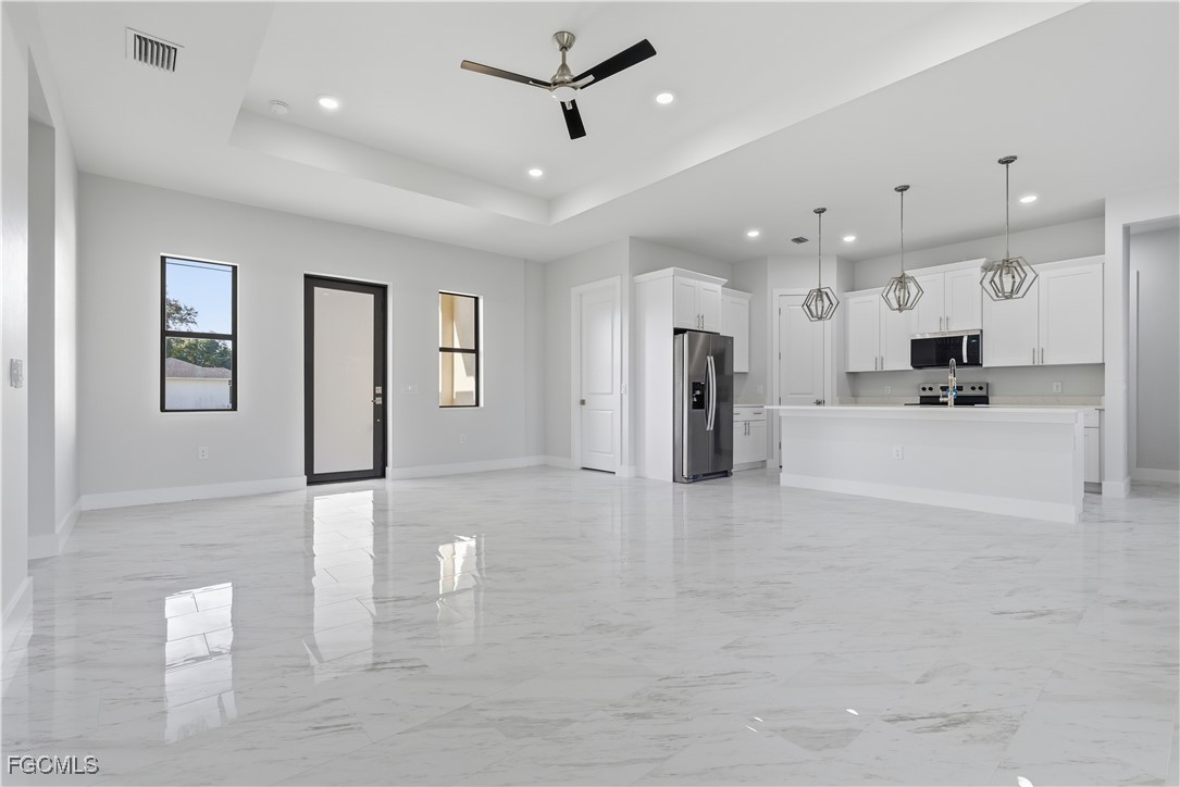Discover a brand-new single-family home in the Mirror Lakes community featuring 1,894 sq ft of living space, high ceilings and an open-concept floor plan. The kitchen is equipped with 42-inch soft-close cabinets, quartz countertops and a full suite of new appliances. Porcelain tile flows throughout the home and 8-foot doorways enhance the sense of space. A large laundry room with a built-in sink adds convenience. Impact-rated windows and doors support durability and efficiency. Situated on city water and sewer and located in a no-flood-insurance zone, this home eliminates the need for flood coverage. Outdoors includes yard lined with Calusa Rosa hedging, dedicated space for a pool and fruit-tree plantings, and the oversized 0.37-acre corner lot offers ample room for outdoor living. Community features include hiking and biking trails, a children’s playground and conservation areas. Nearby amenities include dining, shopping, medical services and parks. The property also enjoys fast access to major corridors and approximately 14 miles to Southwest Florida International Airport (RSW). Virtual tour available in the MLS.0.37-acre oversized corner lot • Built 2025 • 3 bedrooms / 2 baths • 1,894 sq ft This brand-new single-family home in the Mirror Lakes community offers modern construction and quality upgrades throughout. The open-concept floor plan features high ceilings, 8-foot doorways, and porcelain tile throughout. Schedule your showing today. Community trails & children’s playground in Mirror Lakes (within community) Mirror Lakes Elementary School (approx. 2.8 mi) Veterans Park Academy for the Arts (approx. 3.2 mi) Lehigh Towne Centre Shopping (approx. 4.2 mi) Lehigh Regional Medical Center (approx. 5.5 mi) Southwest Florida International Airport (RSW) is approximately 14 miles Access to major corridors (near SR 82) providing regional travel ease