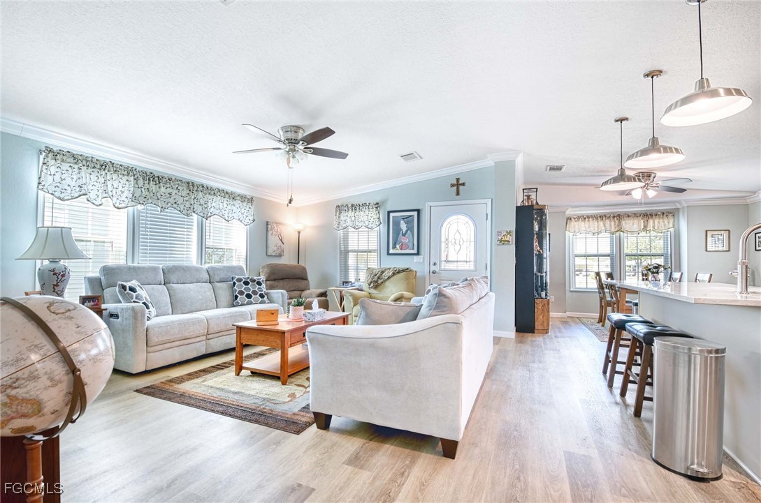 Step into this well maintained, newer, 2019 home in the desirable 55+ community of Country Lakes. Situated on your own spacious private lot with a peaceful wooded backdrop, this residence offers a warm and inviting great-room layout with 2 bedrooms, a study, 2 full baths and 1445 Sq Feet. . Bright and airy with vaulted ceilings, the home features an upgraded island kitchen with stainless steel appliances and quality cabinetry. Both bathrooms, flooring, and windows have been upgraded as well. Enjoy the comfort of a screened lanai and the convenience of a spacious attached storage shed.