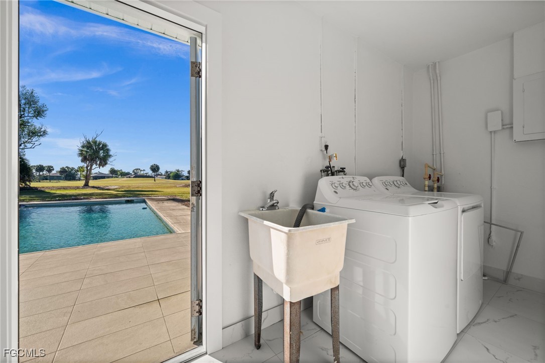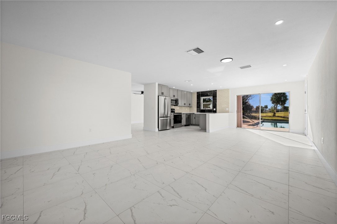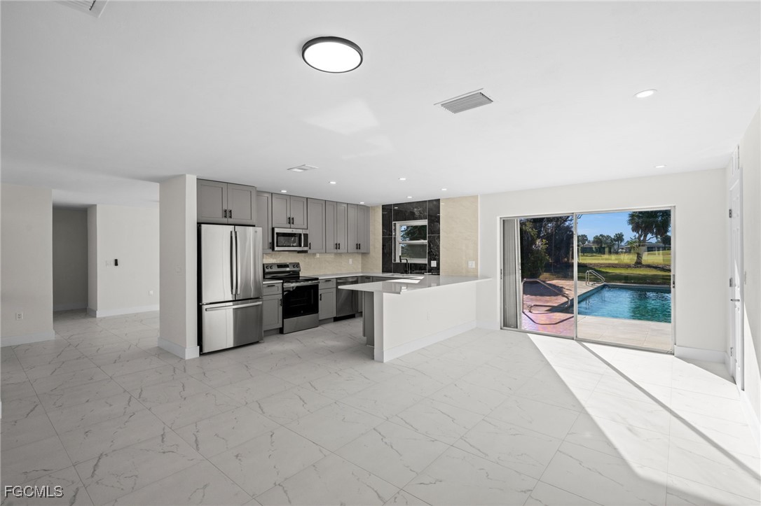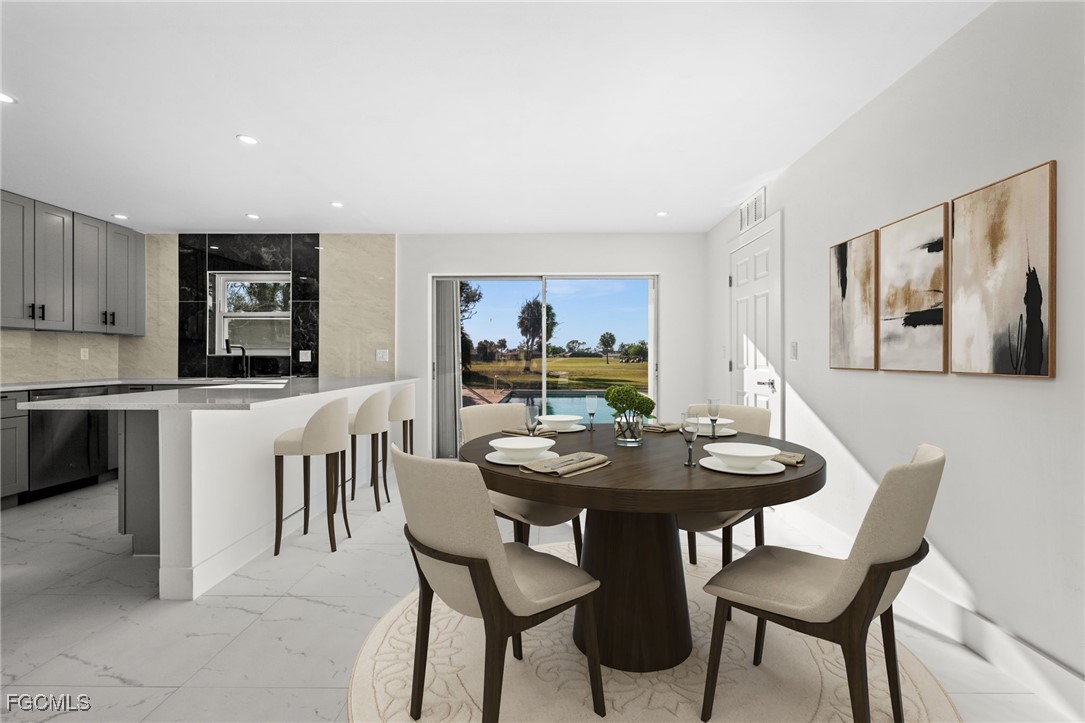 Beautifully updated pool home located on a golf course, offering 3 bedrooms, 2 renovated bathrooms, two separate living areas, an indoor laundry room, and a 1-car garage. The home features a spacious tiled patio and large pool with peaceful golf course views. Recent 2025 upgrades include a brand-new kitchen with quartz countertops, real wood shaker cabinets, new appliances, a modern sink and disposal, and luxury tile backsplash. Additional updates include new light fixtures throughout, fully remodeled bathrooms with luxury wall tile, quartz vanity tops, custom showers, new toilets and sinks, and LED fog-free mirrors. The home also offers new tile flooring throughout, updated interior doors and trim, new exterior tile, and a new roof. A new fence has just been installed after the initial photo shoot.
