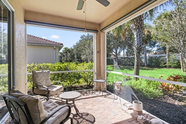 Come see this turn-key home in the active 55+ community, Cascades at River Hall! This beautifully kept single-family home boasts 3 bedrooms, 2 bathrooms, and a 2-car garage. The versatile third bedroom is currently outfitted as a family room, but it can easily be converted to a bedroom, or used as an office or hobby room. The open floor plan provides plenty of space for residents and their guests. The interior features granite counters, stainless steel appliances, carpet and tile flooring, and is offered for sale with all the furnishings and personal assets you'll see inside the home as you visit. The garage has lots of shelving and cabinet storage space which will remain. The personal assets in the garage, including the trailer and its contents, will not convey with the sale. The screened lanai provides a great outdoor space where you can enjoy your morning coffee or afternoon tea while taking in the nicely landscaped back yard with a privacy wall providing a feeling of seclusion. Cascades features some great amenities, which include a community clubhouse and pool, various sport courts, and an exercise room. In addition to the recreational facilities, the reasonable HOA fees include lawn and land maintenance, irrigation water, internet, cable TV, and more. Come see this lovely home today and make it your year-round or seasonal home!