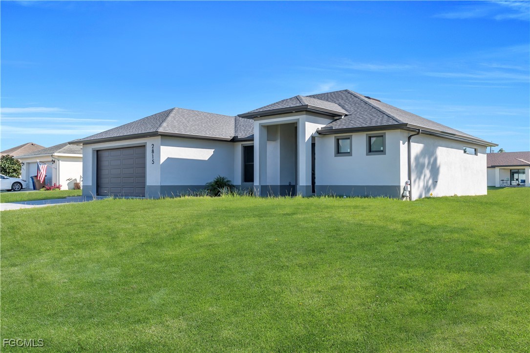 Modern home featuring high ceilings, underground electricity, and pre-installed electrical and plumbing connections in the garage ready for future use. Includes washer and dryer, with exclusive black quartz countertops on the kitchen island and all bathrooms for a touch of elegance. Impact-resistant doors and windows throughout, including the master bedroom and garage, offering safety and peace of mind. The property features a spacious den, a modern rain gutter system surrounding the roof, and a wide entry with a short hallway that opens into a bright kitchen and living area. Enjoy sleek, contemporary shower systems and a large office room separate from the other three bedrooms—perfect for remote work or creative projects. Equipped with a full sprinkler system and located in a rapidly growing residential neighborhood surrounded by new constructions, this home offers style, functionality, and comfort in one of the most desirable and expanding areas of the city
