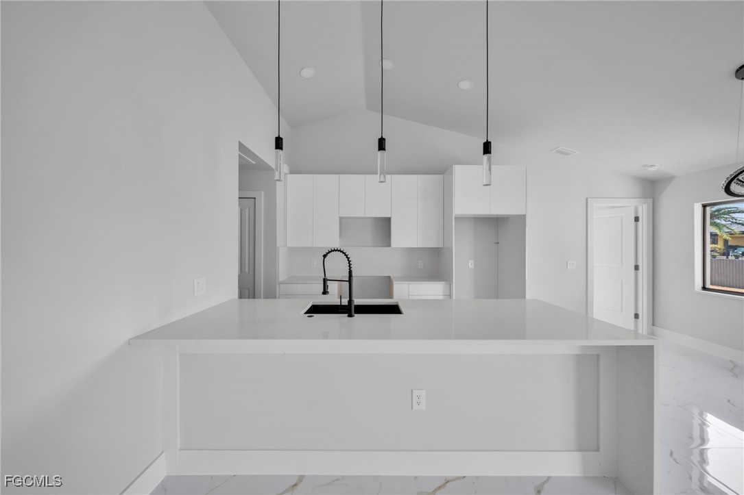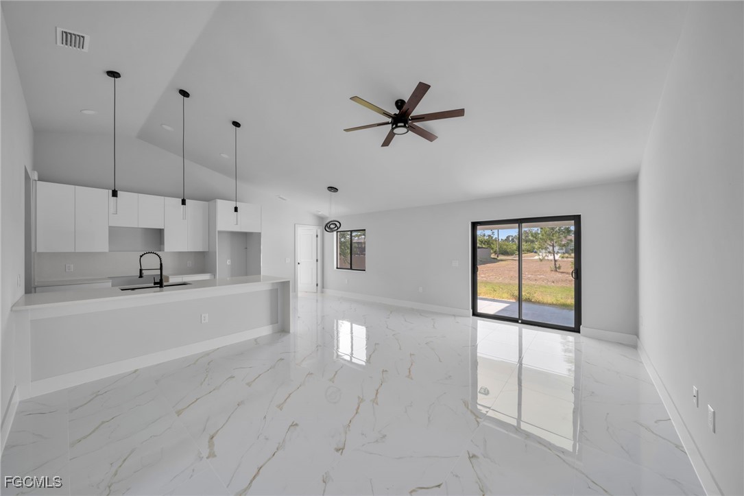 Modern living in SW Lehigh Acres! This stunning new home features an open layout with soaring ceilings, impact windows/doors, and sleek tile throughout—no carpet. Enjoy a designer kitchen with acrylic cabinets, quartz waterfall island, and stainless appliances. Luxurious baths, floating vanities, and a versatile den perfect as an office, gym, or playroom. Covered lanai, big 2-car garage, and no HOA!