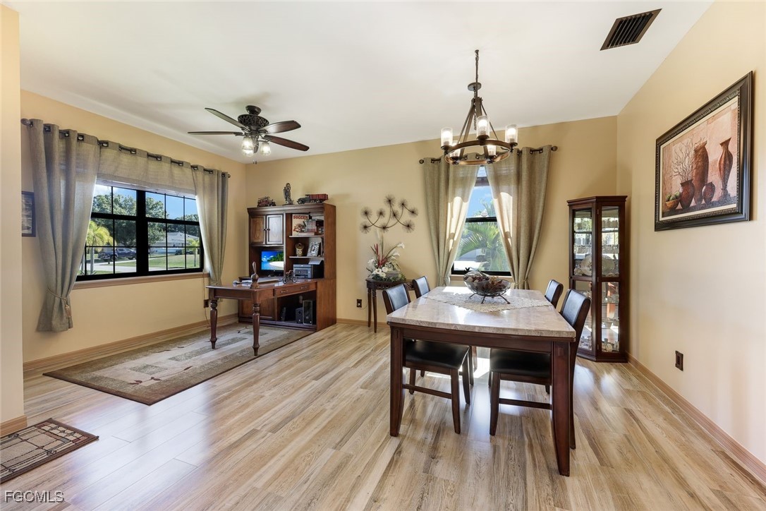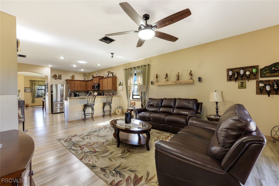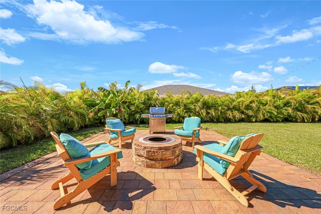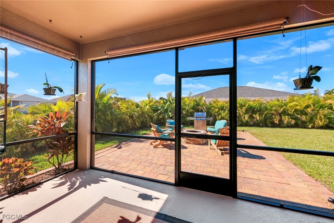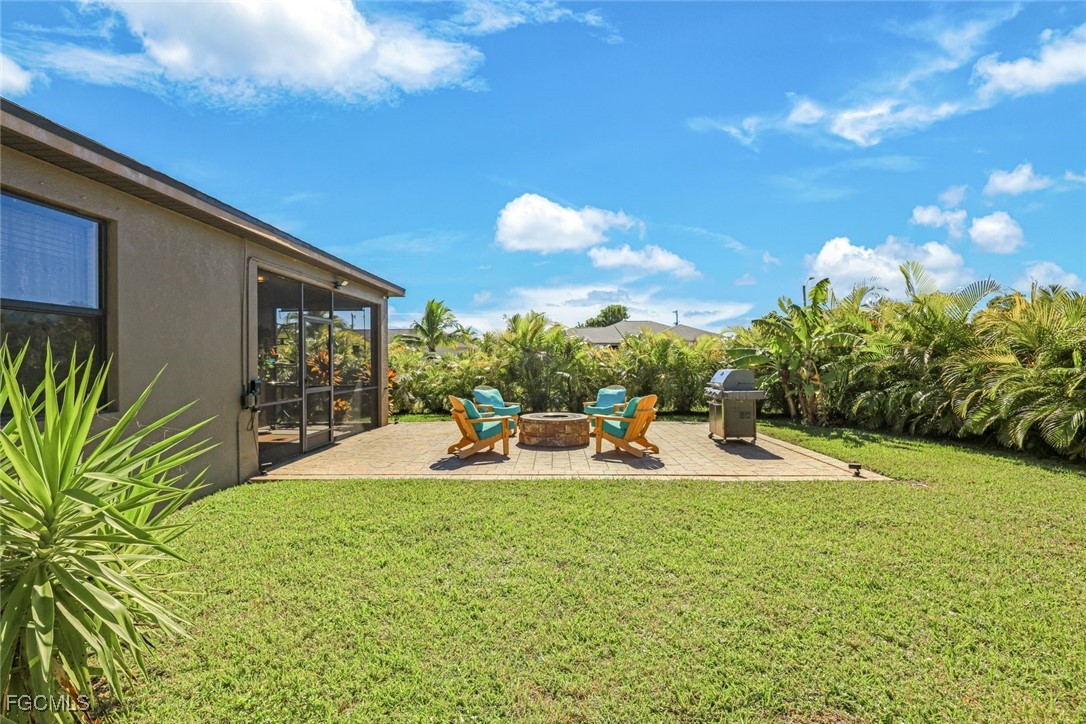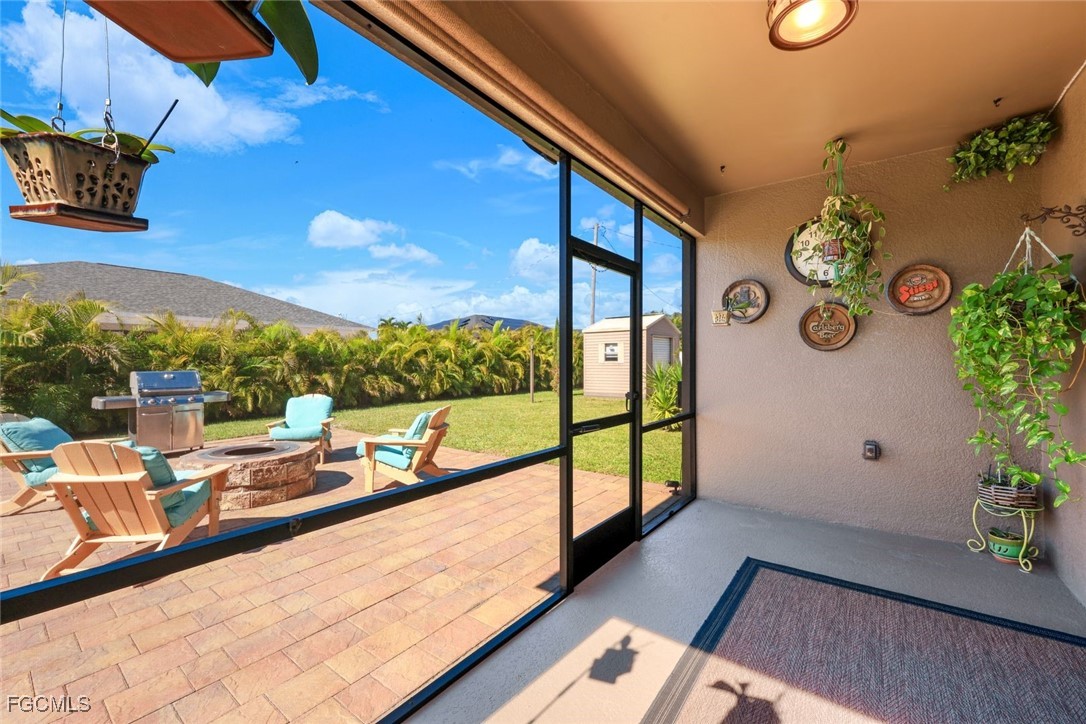 Welcome Home! This beautifully maintained Cape Coral property is the perfect blend of comfort, charm, and long-term peace of mind — located in a highly desirable NO FLOODING ZONE with full hurricane shutters for ultimate protection. Sitting on an oversized lot. From the moment you arrive, you’ll notice the pride of ownership and the extensive list of upgrades that make this home truly stand out. The exterior is enhanced with gorgeous palm trees (2019), a green fence (2016), a 2021 enclosed front entry and lanai, plus a cozy built-in patio fireplace (2021) that turns evenings into magic. The low-voltage LED color-changing landscape lighting (2022) adds the perfect touch of elegance day or night. Inside, the home features a long list of modern improvements that ensure comfort and functionality. The flooring has been thoughtfully updated with carpet removal and new wood flooring (2016), ceramic tiles (2025), and a stunning ceramic tile backsplash in the kitchen (2018). Enjoy the benefits of stainless steel appliances, including a refrigerator that’s only one year old. The kitchen is brightened by a beautiful skylight added in 2022, and every cabinet throughout the home features updated hardware. All faucets and shower heads were replaced in 2018, fans were installed in every room (2015), and all outlets, switches, and covers were replaced in 2016 for a clean, modern look. Your master suite received a complete remodel in 2019, offering a fresh and stylish retreat. Additional conveniences include a WiFi-enabled garage door opener (2022), a garage screen (2022), an attic retractable ladder (2018), and a 24/7 security system with four cameras—perfect for peace of mind whether you’re home or away. Step outside to the backyard and you’ll find your own private oasis with an outdoor shed (2020), upgraded sprinklers (2015), and plenty of space to enjoy Florida living at its best. UPGRADE SUMMARY (TONS OF UPGRADES!): • NO FLOODING ZONE • Hurricane shutters • Sprinklers (2015) • Carpet removed & wood flooring added (2016) • Ceramic tiles (2025) • Green fence (2016) • All faucets & shower heads replaced (2018) • Fans in all rooms (2015) • New outlets, switches & covers (2016) • Master bathroom remodel (2019) • Garage screen (2022) • Kitchen skylight (2022) • Outdoor shed (2020) • Enclosed lanai & front entrance (2021) • Hardware installed on all cabinets • WiFi garage door opener (2022) • Attic retractable ladder (2018) • 24/7 security system with 4 cameras • Patio with built-in fireplace (2021) • LED color-changing exterior lighting (2022) • Ceramic tile kitchen backsplash (2018) • Stainless steel appliances; fridge 1 year old • Palm trees (2019)