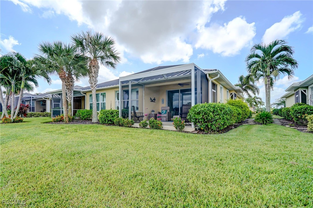 Step into the epitome of elegance and comfort with this stunning 2-bedroom plus den, 2-bath-attached villa, perfectly positioned in the highly desirable gated community of Sandoval. The expansive living room welcomes you beautiful tile on the diagonal and wide triple slider that opens to an oversized lanai, where breathtaking views of the lake and local wildlife await. Plantation shutters throughout. The kitchen is a chef’s delight, featuring ample raised panel cabinets, a spacious pantry, and extensive granite countertops. The dining room is an entertainer’s dream, featuring mirrored walls creating an open bright gathering place for memorable friends and family gatherings. Both bedrooms bathe in natural light and promise restful nights. The main bedroom and bath a sanctuary overlooking the lake this ensuite is complimented with a large shower, dual sinks, and granite countertops. Need a versatile space? The den is ideal for an office, craft room, or extra sleeping quarters. This home is not just a living space but a statement of style, meticulously maintained and tastefully decorated, demanding your personal visit. The new roof 2024 will give you peace of mind along with the newly replaced kitchen appliances. Sandoval's community is vibrant and rich with amenities including a clubhouse, pool, two dog parks, playground, and courts for tennis, shuffleboard, pickleball, and basketball. Not to mention horseshoes, bocce, a fitness center, library, and a plethora of community activities to explore. Embrace the chance to be part of this active and engaging community. This villa is more than a home—it's a lifestyle waiting for you to claim. Come see what makes Sandoval so special and why this villa should be your next dream home