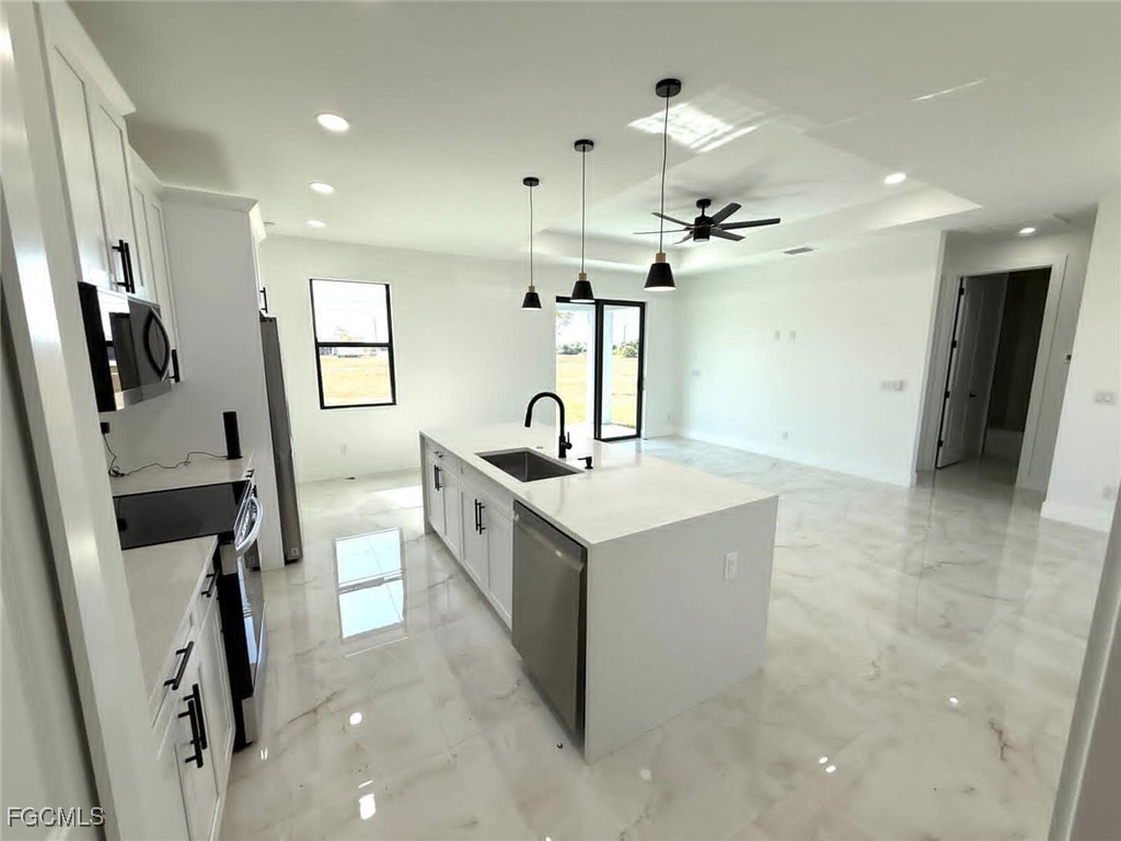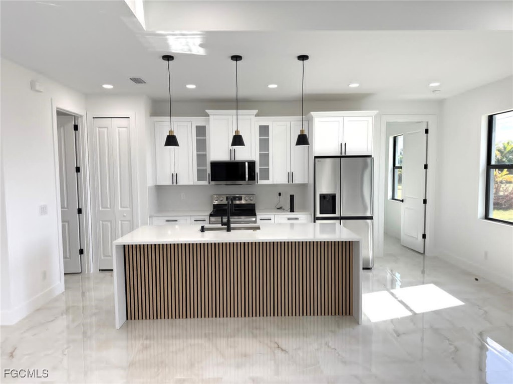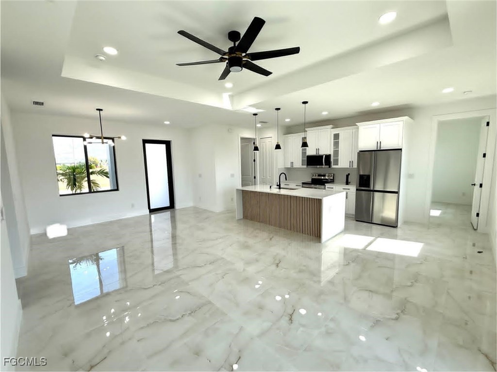 MOTIVADED SELLER , helping with closing costs. This beautiful house, conveniently located near shopping centers, restaurants, and more, is ready for occupancy with 3 bedrooms and 2 bathrooms. 24X48 It features porcelain tile throughout, quartz countertops in the kitchen and bathrooms, stainless steel appliances, an open kitchen, and stunning custom cabinets. Enjoy the walk-in shower with a glass door in the master bathroom, which is complete with dual sinks. The driveway is paved, and all windows and doors are impact-resistant for added convenience and security.