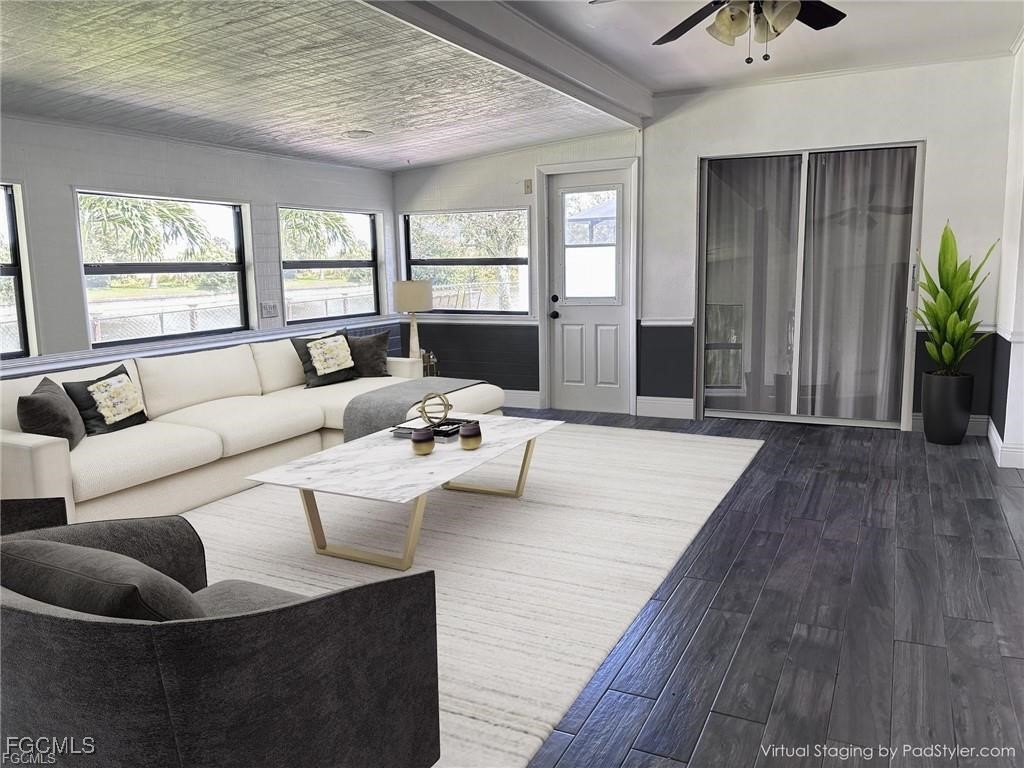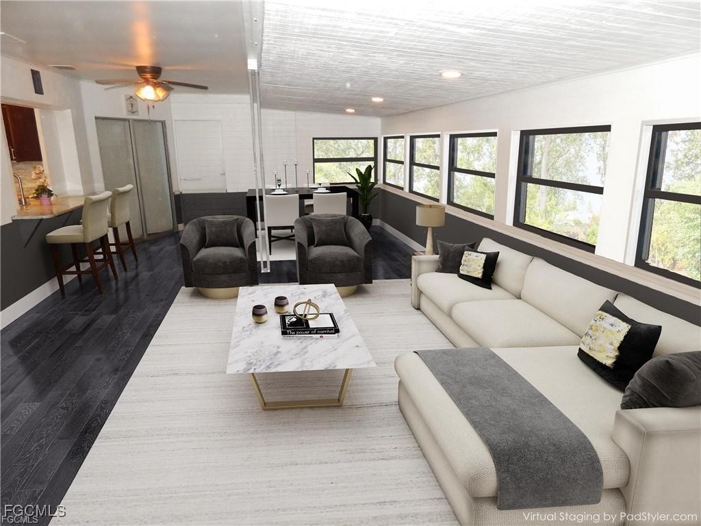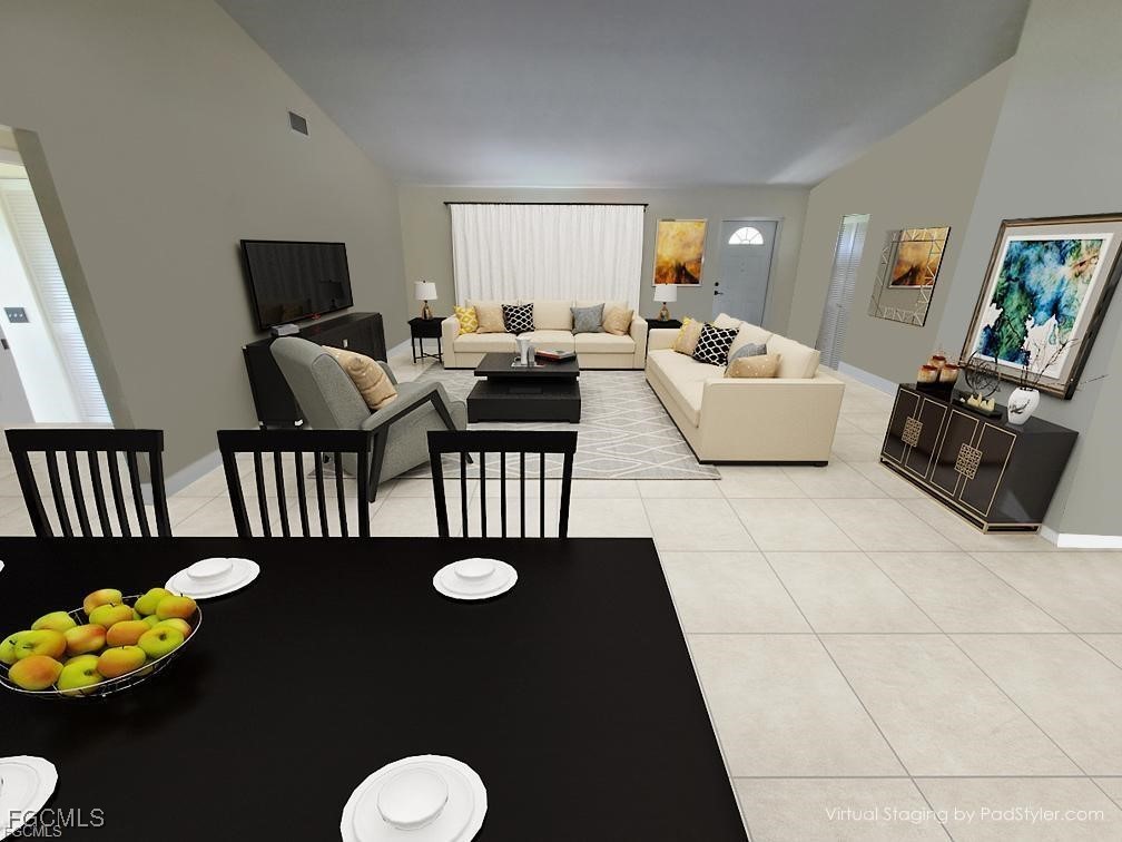 WATERFRONT HOME- Home Buyers and Vacation Renters, 3 bed 2 bath on fresh water canal, 1695 sq ft home with a Bonus room, 2100 sq ft Total. Includes a huge Family room with wrap around windows and water views, perfect for entertaining. Master bath has huge his/hers double shower, and double sink. MUST SEE, A/C replaced in May 2022, Roof and Gutters replaced May 2023. This home places you at the heart of everything SWFL has to offer. ALL Assessments paid. Home is located on Donna Canal in your backyard; comes with a seawall and a concrete dock and extended wood composite dock installed in 2020 giving you access to several lakes Seminole lake being the largest, Cherokee lake, Mohican lake, Apache lake are all available from your backyard canal for your boating enjoyment!! Outdoor tennis courts walking distance. Outdoor views of the Baseball fields and park from the front window. US 41 Cleveland Avenue Bridge has no tolls to go home from downtown Fort Myers only a 10 minute drive away to enjoy all the Downtown events.