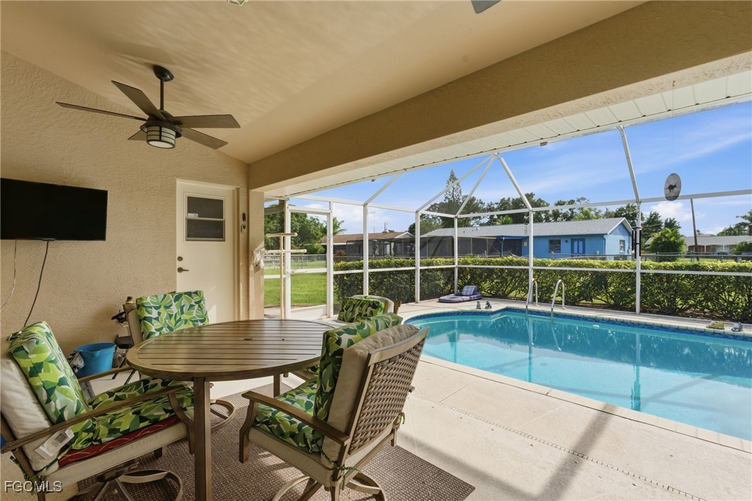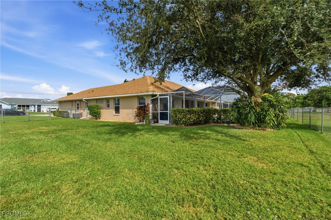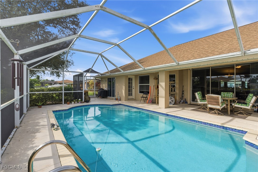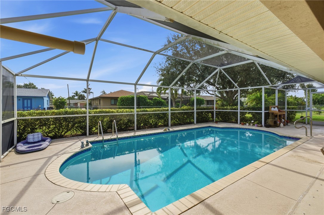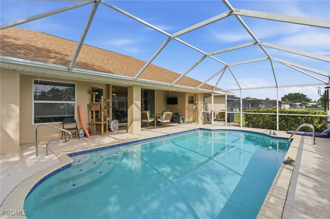 Welcome to this well-maintained 3-bedroom, 2-bath pool home located in the desirable SE Cape Coral area. Built in 2002 and offering approximately 2,033 sq ft of living space, this property features a comfortable single-level layout, solid concrete block construction, and a spacious 2-car garage. Roof replaced in 2023! The home sits on an oversized 0.34-acre lot, providing excellent outdoor space and added privacy. Inside, you’ll find an open floor plan with ample natural light and generous room sizes throughout. The property is located in a quiet residential neighborhood within Cape Coral Unit 18, offering convenient access to shopping, dining, schools, and major roadways. This home is a great opportunity for buyers seeking space, value, and a well-built property in a prime Cape Coral location.