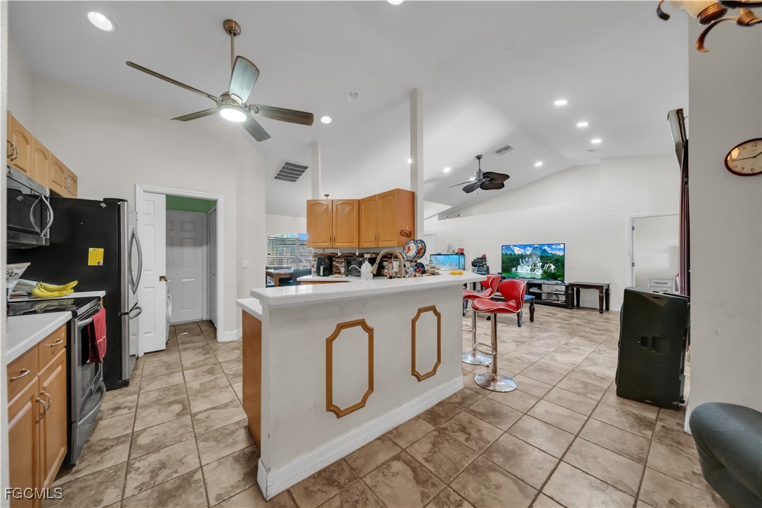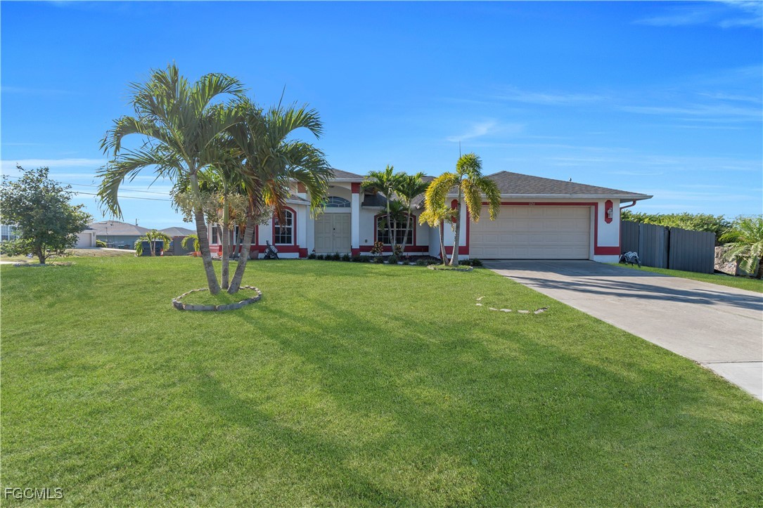 Discover this beautifully maintained 3-bedroom home with a versatile den, offering 1,901 sq. ft. of living area. Situated on a spacious corner lot in one of the best areas of Cape Coral, this property provides an exceptional blend of privacy, curb appeal, and convenience. The home features a newly installed roof, a newer A/C system, and a reinforced privacy fence ideal for securely storing a boat, work trailer, or outdoor equipment. The expansive yard also offers ample space to add a pool, allowing you to design your own backyard oasis. Don’t miss this opportunity—schedule your showing today..