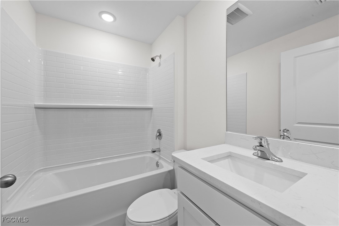 NEW CONSTRUCTION WITH WARRANTY! Estimated delivery Jan 2026. The Santa Maria showcases a bright, open-concept floorplan that seamlessly blends the Great Room, kitchen, & dining area into one spacious main living space with upgraded plank tile floors. A vaulted ceiling enhances the sense of openness, while sliding glass doors extend the living area to a breezy lanai—perfect for indoor-outdoor entertaining. The kitchen is thoughtfully designed with an island-style layout featuring a statement breakfast bar, Quartz countertops, & stainless steel appliances, making it both stylish & functional. The private Primary Suite is tucked away for peace & comfort, complete with a walk-in closet & an en-suite bathroom that includes a dual-sink vanity, a walk-in shower, & a private water closet. On the opposite side of the home, 2 additional bedrooms & a full guest bath provide space for family, visitors, or a flexible home office. Pictures, renderings, & virtual tour are of similar home & are used for display purposes only. According to Lee TC, PID is 36-44-26-L4-05031.0130