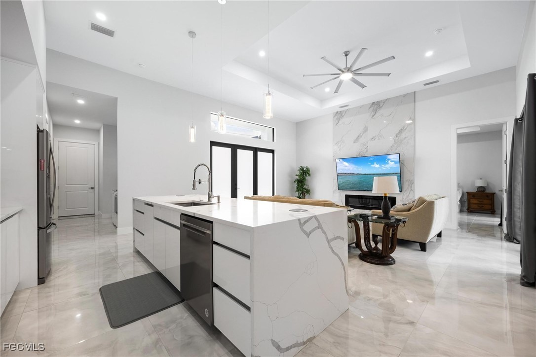 Beautifully designed 4-bedroom, 3-bathroom Cape Coral pool home featuring highly desirable southern rear exposure for all-day sunshine on the lanai and pool. Located on city water and sewer with assessments PAID, this property delivers exceptional value and convenience.