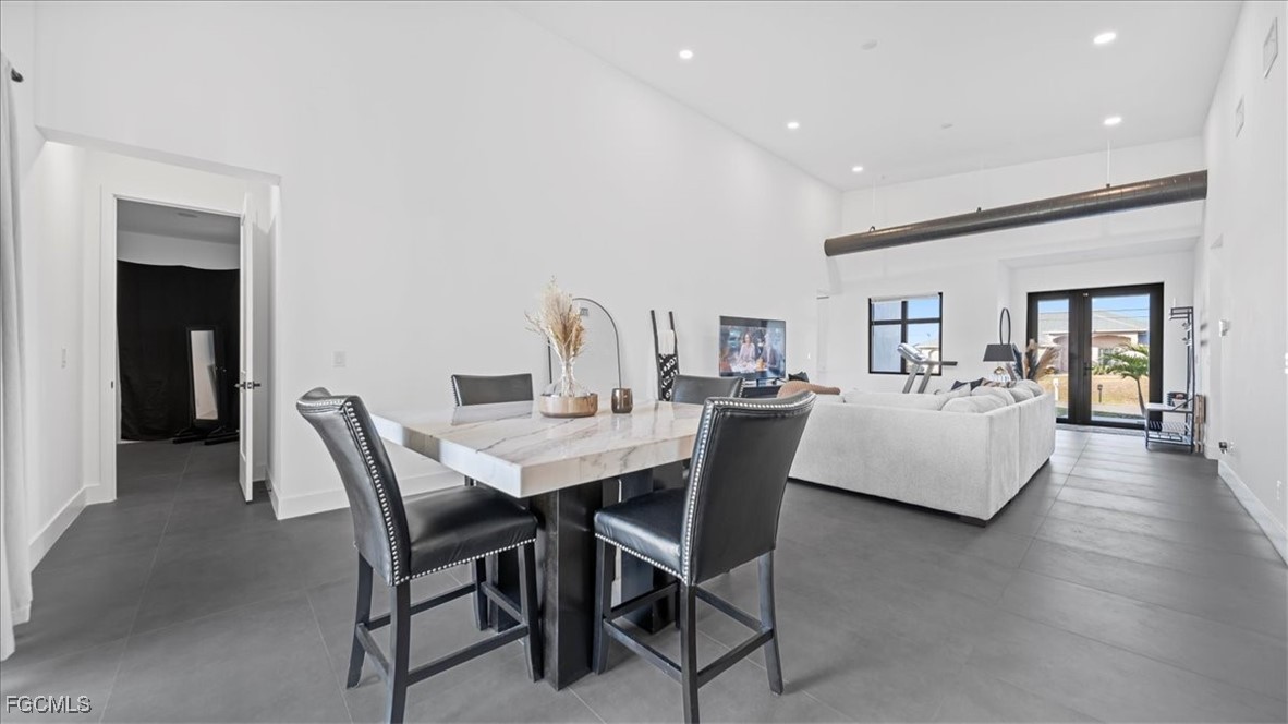 The heart of the home features a chef-inspired kitchen with custom marble countertops, an oversized waterfall island, and seamless flow into the main living area. Expansive sliding glass doors bring in natural light and provide effortless indoor-outdoor living, while offering plenty of space to design your dream pool.