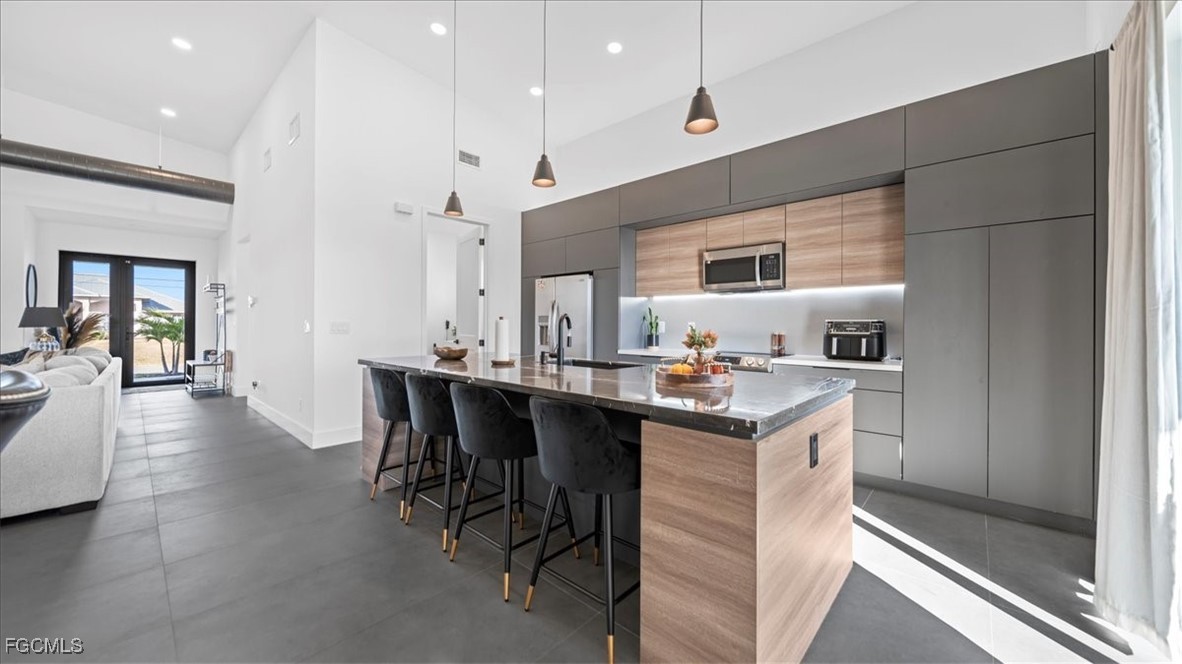 Welcome to this beautifully designed modern masterpiece that truly stands apart from ordinary new construction. This 3-bedroom, 2.5-bathroom home offers an open-concept layout with soaring 16-foot ceilings, creating a bright and airy living space perfect for both everyday living and entertaining.