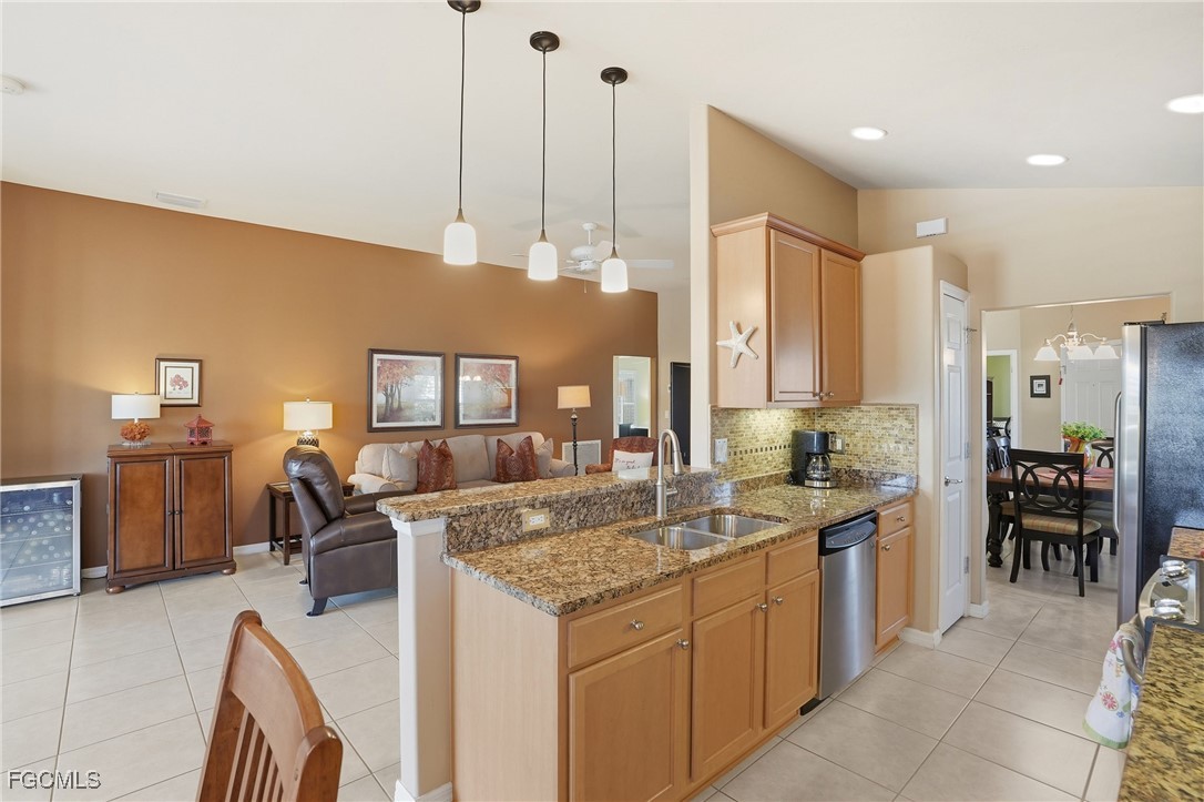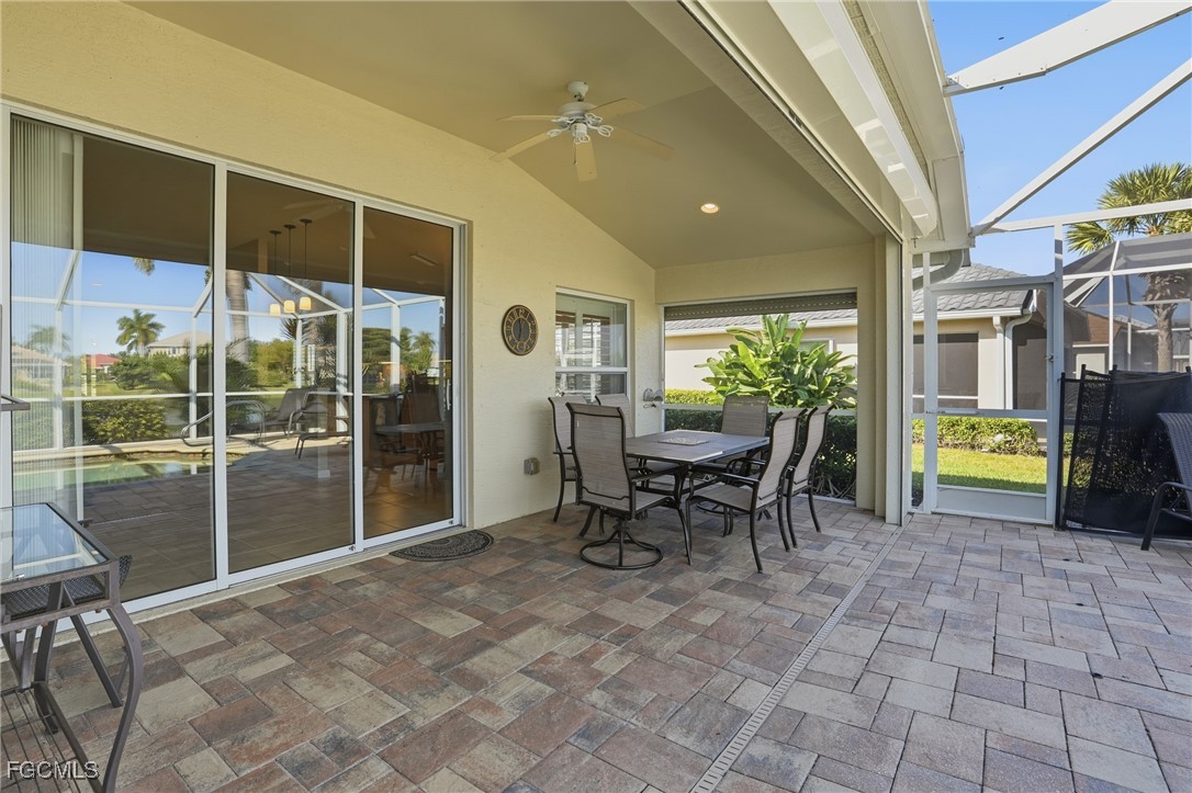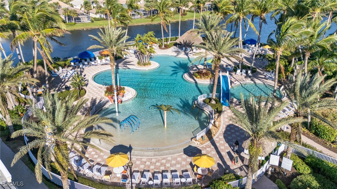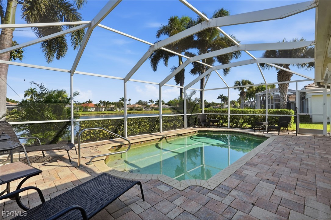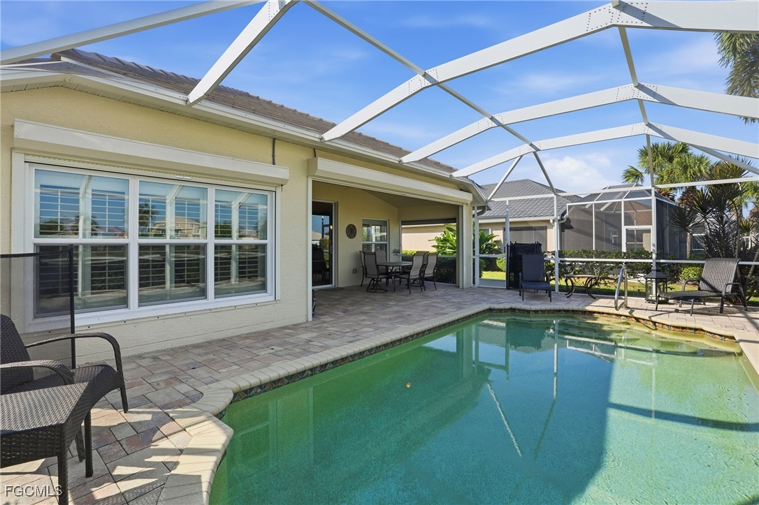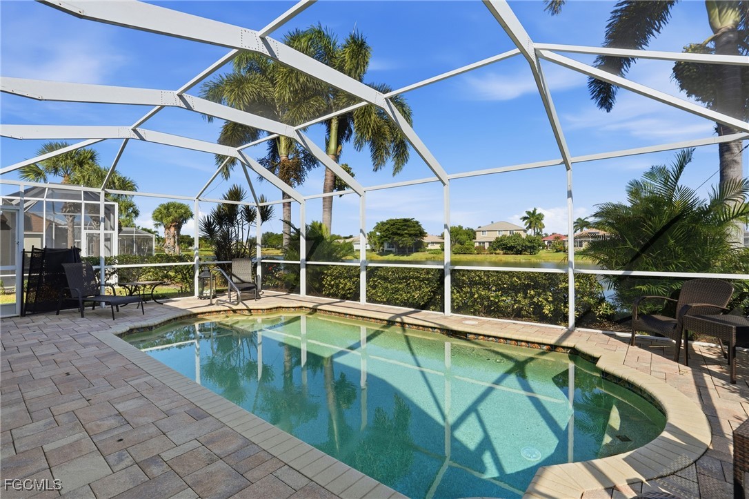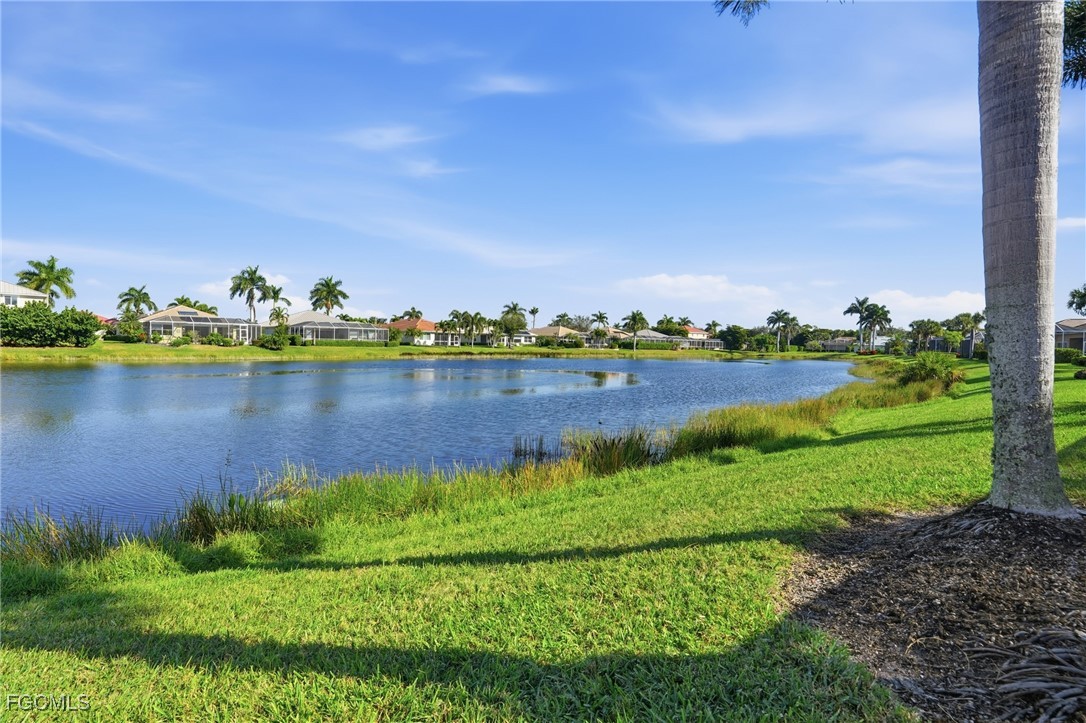Back on market since buyers got cold feet, no fault of the seller. Welcome to this meticulously cared-for, turnkey waterfront pool home situated on a tranquil lake in the highly sought-after community of Sandoval. Loved by its original owners and kept in truly impeccable condition, this 3-bedroom, 2-bath home offers 1,726 square feet of comfortable living space designed for effortless Florida living. Surrounded by mature palms in both the front and backyard, the home provides an inviting coastal feel the moment you arrive. Step inside to an open layout featuring tile and ceramic plank flooring, a cathedral ceiling, and abundant natural light throughout. The kitchen is well-appointed with granite countertops, stainless steel appliances, and convenient pull-out drawers that make storage and organization easy. It flows smoothly into the main living area, ideal for both everyday living and entertaining. Peaceful lake views can be enjoyed from the spacious lanai and screened-in heated pool area, creating the perfect setting for morning coffee, afternoon lounging, or sunset gatherings. For added peace of mind, the property includes electric storm shutters, and the garage features additional built-in cabinets offering excellent storage options. Living in Sandoval means access to exceptional resort-style amenities, including a lagoon-style pool with waterslide, pickleball courts, fitness center, dog parks, library, playground, and more. The community is also known for its vibrant social calendar, offering everything from yoga classes and book club meetings to pool parties and annual holiday traditions. Experience the welcoming lifestyle residents love. This home is truly a must-see in person.