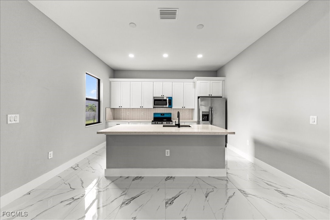 Stunning brand-new 4-bedroom, 2-bath home in Cape Coral! This move-in-ready residence offers a bright, open split floor plan—perfect for hosting company—with high ceilings and large tile flooring throughout. The modern kitchen showcases shaker-style cabinetry, quartz countertops, stainless steel appliances. Impact-resistant doors and windows are through out for enhanced safety and energy efficiency. The spacious primary suite features tray ceilings, dual walk-in closets, and a large ensuite bathroom with dual sinks and a walk-in shower. Additional highlights include a convenient inside laundry room and a guest bath with a tub/shower combination. Enjoy shopping, dining, boating, world-class fishing, parks, and entertainment—everything that makes the Southwest Florida lifestyle so exceptional. Downtown Cape Coral offers a vibrant mix of restaurants, bars, breweries, live music, and shops, while a quick trip takes you to Fort Myers, the Downtown River District, area beaches, and Southwest Florida International Airport. Seize this rare opportunity to own your stunning slice of paradise in sunny Cape Coral.