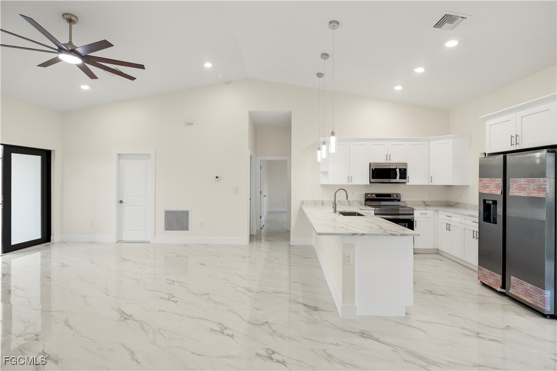 The kitchen and laundry area come fully equipped with stainless steel appliances, including a microwave, oven, dishwasher, refrigerator, washer, and dryer. The washer and dryer also come with a transferable 3-year Home Depot warranty, offering added value and protection for the new owner.