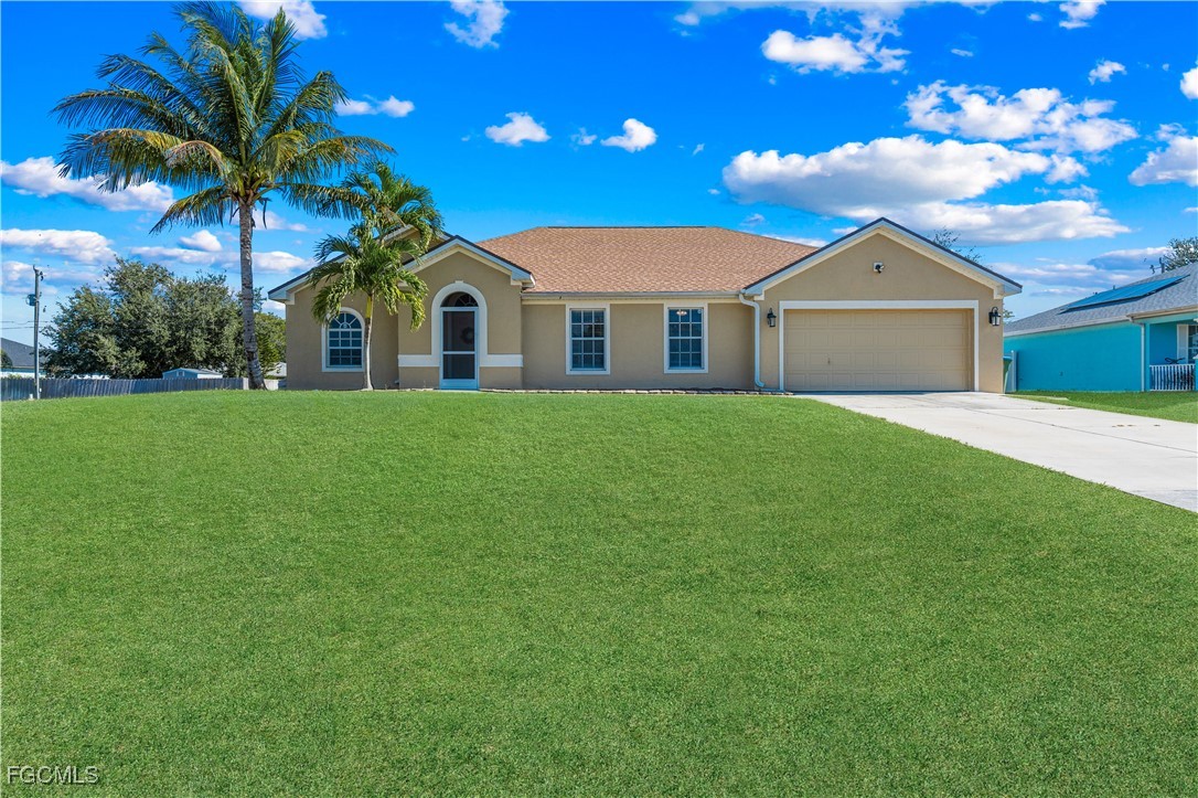 Welcome to your dream home, perfectly located in a prime area of Cape Coral! This beautifully maintained property offers peace of mind with a brand-new roof installed in 2022 and a newer A/C, making it truly move-in ready. Inside, you’ll instantly appreciate the open layout and tall ceilings, creating a bright, spacious, and inviting atmosphere.