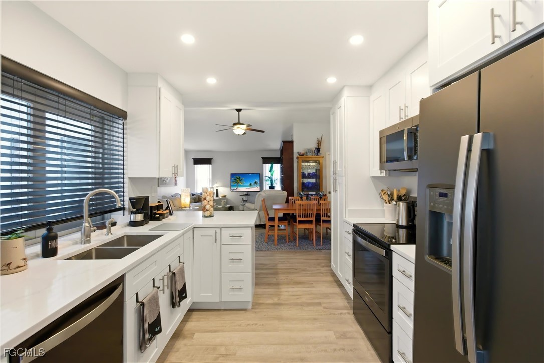This inviting 3-bedroom, 2-bath residence offers an ideal split floor plan and southern exposure, ensuring your screened pool and lanai enjoy full sun year-round. Inside, the home features new flooring throughout, updated bathrooms, and a bright, refreshed kitchen with a convenient passthrough window to the lanai—perfect for entertaining.