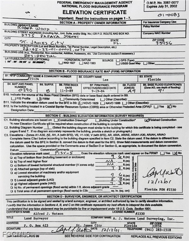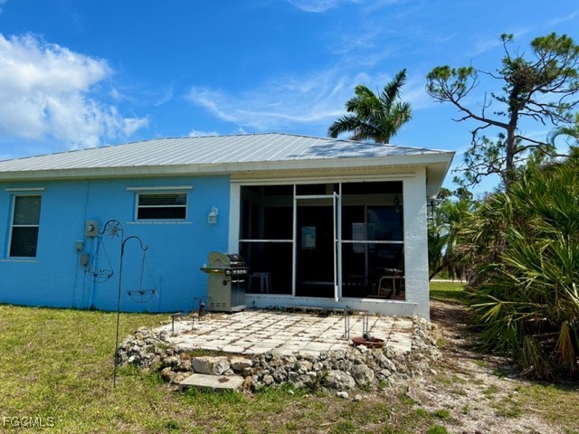 Floor elevation 9'8"above sea level NEVER HAD FLOODWATERS INSIDE HOUSE Adorable tropical cottage featuring open plan concept with exposed beam cathedral ceiling. 2 bedroom, 1 1/3 bath. Screened lanai under truss + patio. Turn key- all furnishings included as shown. Brass queen bed in Master BR, desk in Br #2 with double bed. available NOW! Immediate occupancy or rent out. Hide-a-bed in living room - house sleeps 6 total. Overbuilt by architect himself. Metal hip roof- storm panels. Short distance to Tropical Point Beach park, kayak launch ramp+ small boat ramp. QUIET rural island area. Very unique house. MUST SEE. Additional sink in master BR. No rules here: park boat or campers on lot. Stained concrete floor throughout.