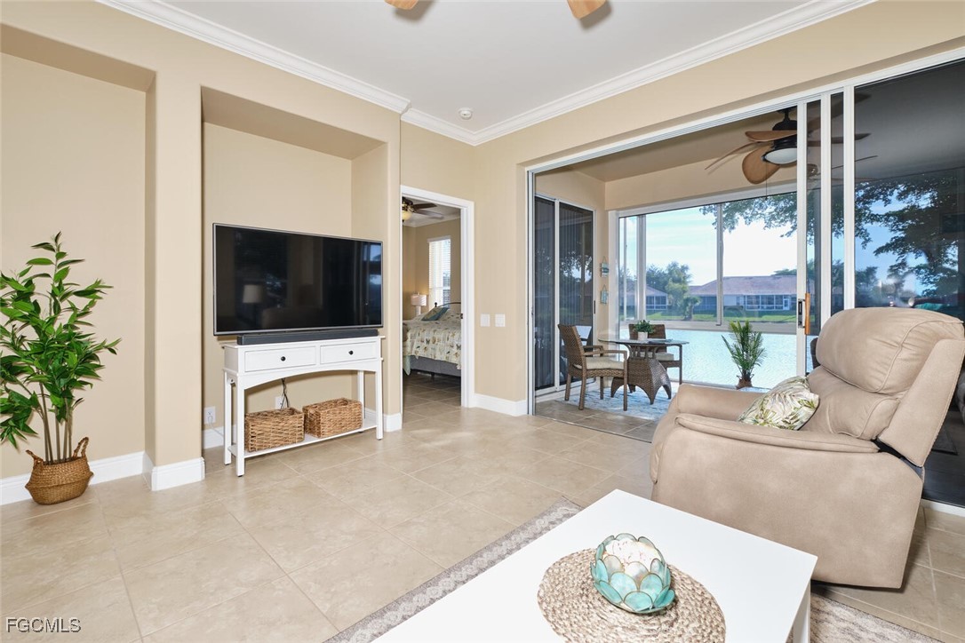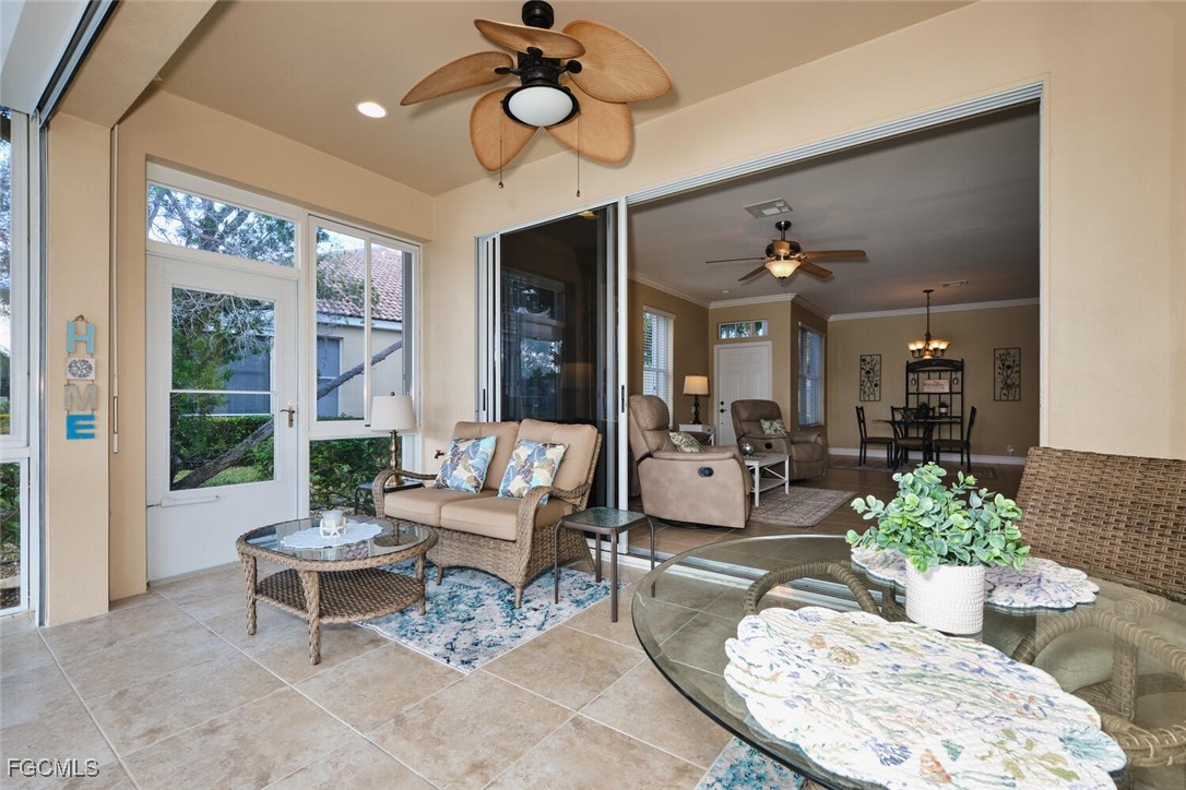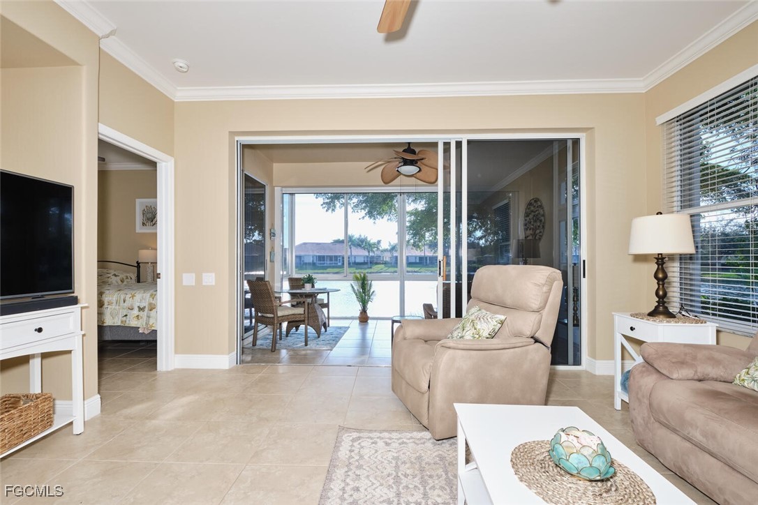 2 bedroom plus den attached villa in Lexington Country Club's Lake Village. This "Bristol" floor plan has been totally updated. Southern exposure from the lanai with a stunning lake view. Loaded with upgrades. End unit with lots of extra windows and natural light. A short walk to the Island Club/ Tiki Bar and tennis courts. New water heater. New garage door. New Hurricane shutters and lower panels of high impact glass on the sliders on the lanai. New rollers on sliders. Crown moldings. New lights & fans. Under cabinet lighting in the kitchen. Nest thermostat. Tiled lanai. Owner had gutters installed. Ceiling fan in the garage and so much more!