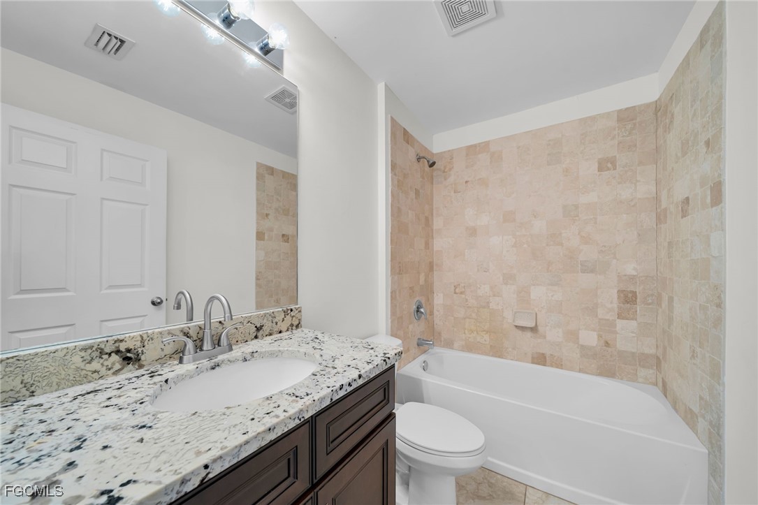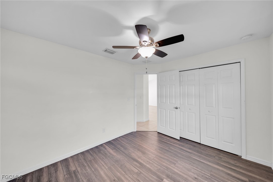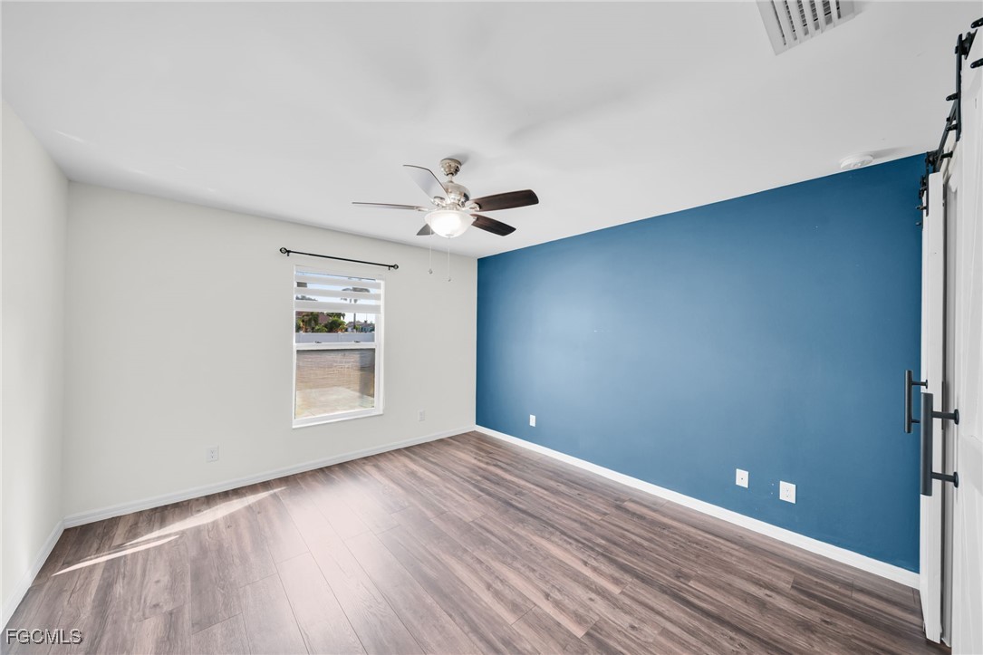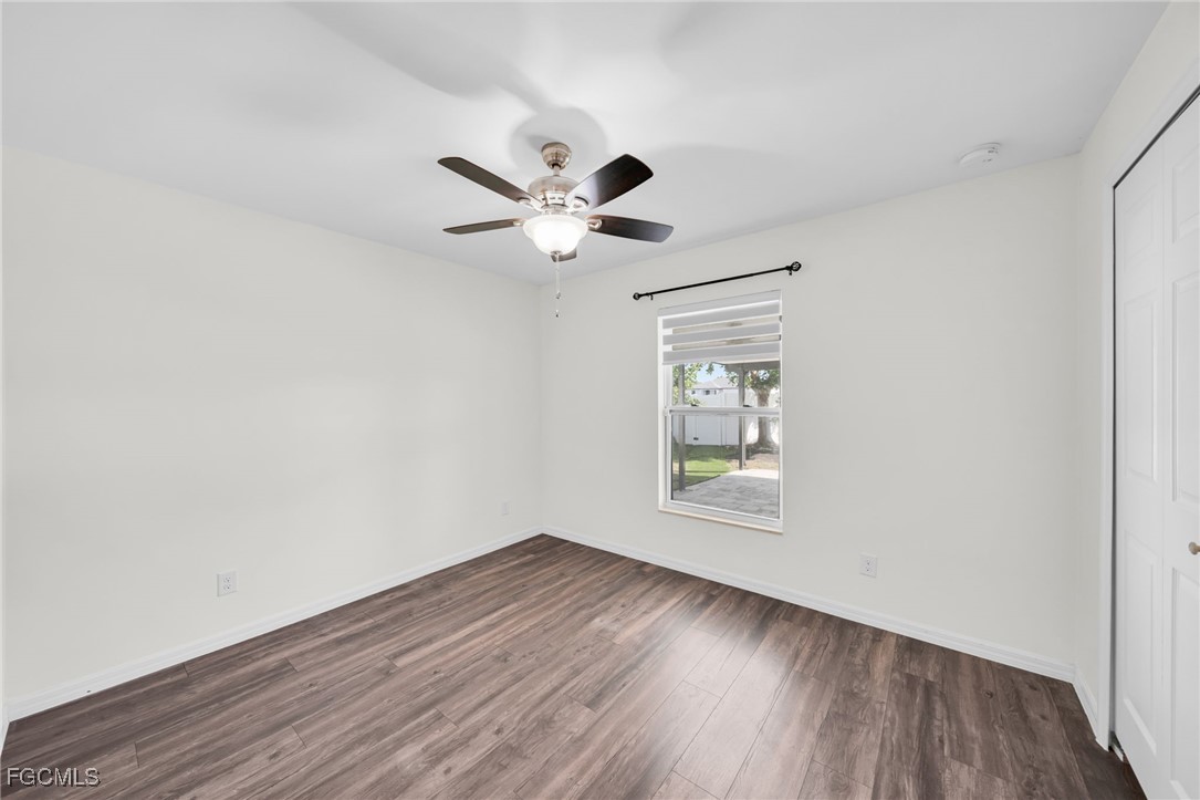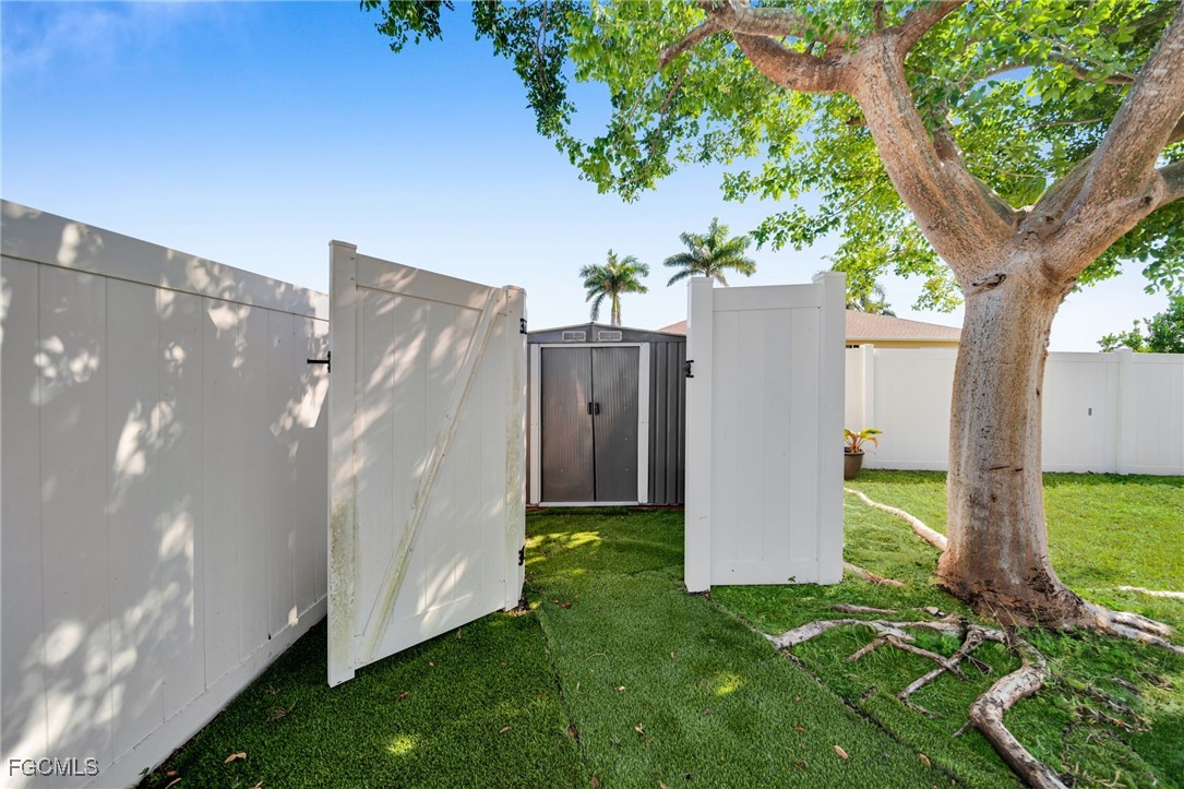 Move-in ready 3-bedroom, 2-bath single-family home in Cape Coral. Built in 2018, this residence showcases an inviting open layout with wood cabinetry, tile and laminate floors, and a well-designed kitchen equipped with stainless steel appliances, granite countertops, dishwasher, refrigerator, microwave, and stove. All appliances are included. The master bedroom features dual sinks, walk-in closets, and a spacious walk-in shower. Enjoy the convenience of a dedicated laundry room with washer/dryer, ceiling fans in the living room and bedrooms, blinds throughout, and an irrigation system. Step outside to a fully fenced yard perfect for outdoor living. The home offers a screened porch and an expansive backyard lanai with a pan roof, plus a beautifully paved backyard area. Additional features include hurricane shutters for peace of mind. Recent upgrades include a new water heater and new A/C handler, with the water softener replaced within the last two years. Conveniently situated near schools, shopping, and local amenities, this home has everything you need for comfortable living and entertaining.