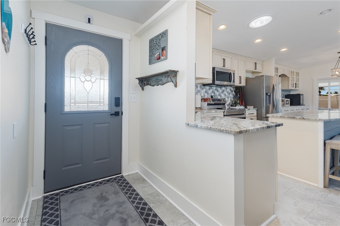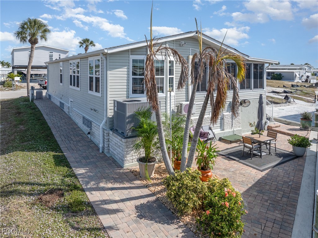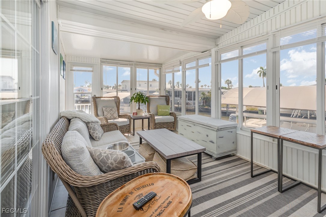 Welcome to your resort-style coastal retreat in Bayside Estates, a desirable 55+ waterfront community. Nestled at 17780 Stevens Boulevard, this beautifully maintained 3-bedroom, 2-bath home invites you to embrace the relaxed Florida lifestyle from the moment you arrive. The open floor plan creates a natural flow throughout the home, offering multiple spaces to gather and making it ideal for entertaining. Positioned on the salt-water side with a covered boat lift, it provides effortless access to the water and the freedom to explore the surrounding canals and Gulf waters. Step into the bright Florida room, where peaceful water views set the tone for morning coffee or sunset unwinding. The spacious kitchen, enhanced by extensive cabinetry, makes cooking and hosting a pleasure. Outside, a large carport and inviting back patio offer additional areas to enjoy the coastal breeze and outdoor living. Just 2.5 miles from Fort Myers Beach, this partially furnished home—featuring high-end pieces—allows you to settle in quickly and begin experiencing the community’s low HOA fees and vibrant, resort-like atmosphere. This is more than a home; it’s a lifestyle where every day feels like a getaway.