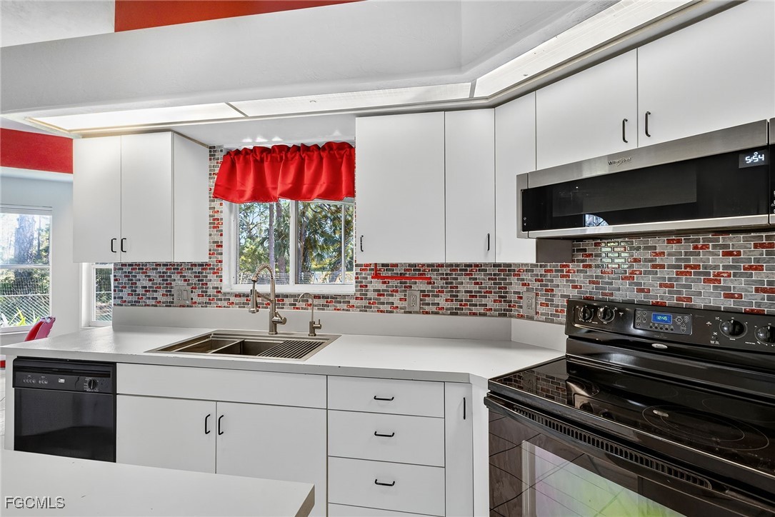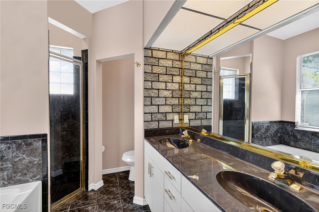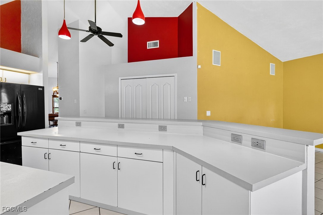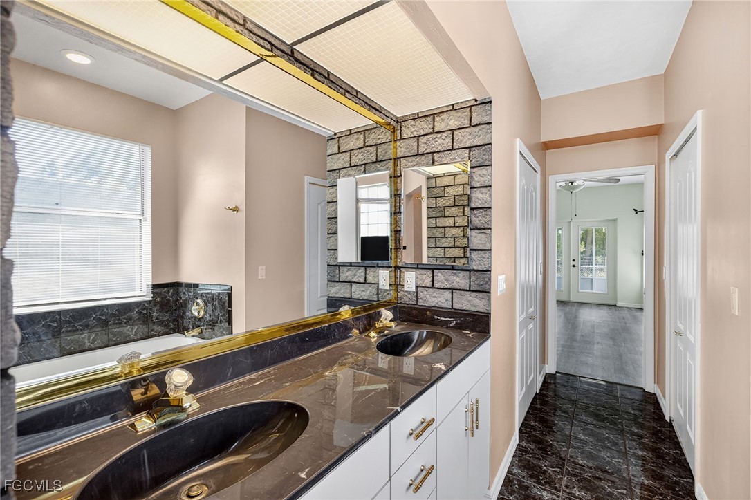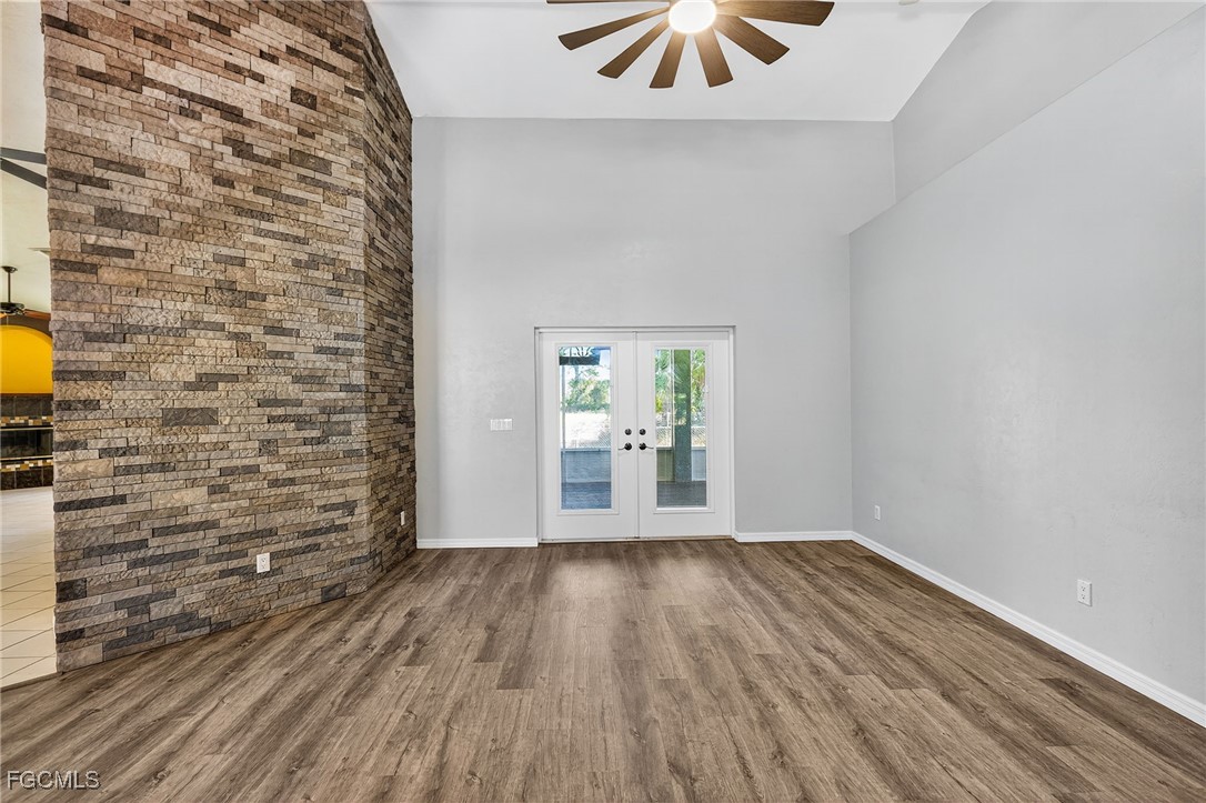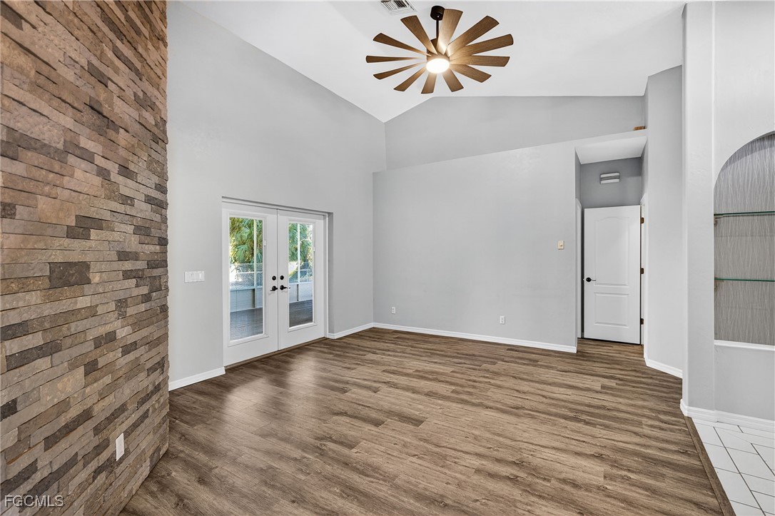Discover the perfect blend of comfort, functionality, and Florida living in this beautifully maintained custom built 3-bedroom + den, 2.5-bath home on a fully fenced half-acre located in a quiet, peaceful Lehigh Acres neighborhood. This spacious property offers exceptional indoor and outdoor living, plus rare bonus features for hobbyists or car lovers. Both the home and detached garage received new roofs in February 2025. The home sits on a canal, adding privacy and a serene backdrop. A screened front entry with French doors leads into bright living spaces with cathedral ceilings, arched windows, plant shelves, custom window coverings, and tile and LVP flooring. The formal living room features a modern stone accent wall, while the family room offers a custom tiled wood-burning fireplace. A formal dining room and breakfast nook provide multiple gathering options, and the kitchen offers abundant storage including a large pantry. Bedrooms and the den are wired with Bluetooth speakers, allowing you to connect your phone and enjoy music throughout the home. The primary suite features two walk-in closets, dual sinks, a soaking tub, walk-in shower, private water closet, and direct access to the expansive screened lanai. Outdoor living shines with the oversized Super Screen lanai, complete with a TV mount, pull-down attic stairs, and two doggie doors leading to either the fenced yard or a private garden courtyard with white vinyl privacy fencing. Mature tropical landscaping surrounds the home and enhances the peaceful canal setting. Car enthusiasts will appreciate the attached two-car garage plus a detached two-car garage, both with insulated 130-mph rated doors, decorative glass windows, and smart MyQ openers. The detached garage also includes a climate-controlled room with a window AC unit—perfect for a workshop or hobby space. Additional features include granite bathroom countertops, custom glass-insert doors with built-in blinds, surround sound wiring, an unarmed security system with cameras, a sprinkler system, Starlink internet equipment (service not active), and generous storage throughout. The entire half-acre is enclosed with a 4' chain-link fence topped with a 2' extension. Located just minutes from SR 82, the home offers convenient access to Fort Myers, Immokalee, shopping, and dining. Move-in ready and full of thoughtful upgrades, this home offers peaceful Florida living at its finest.