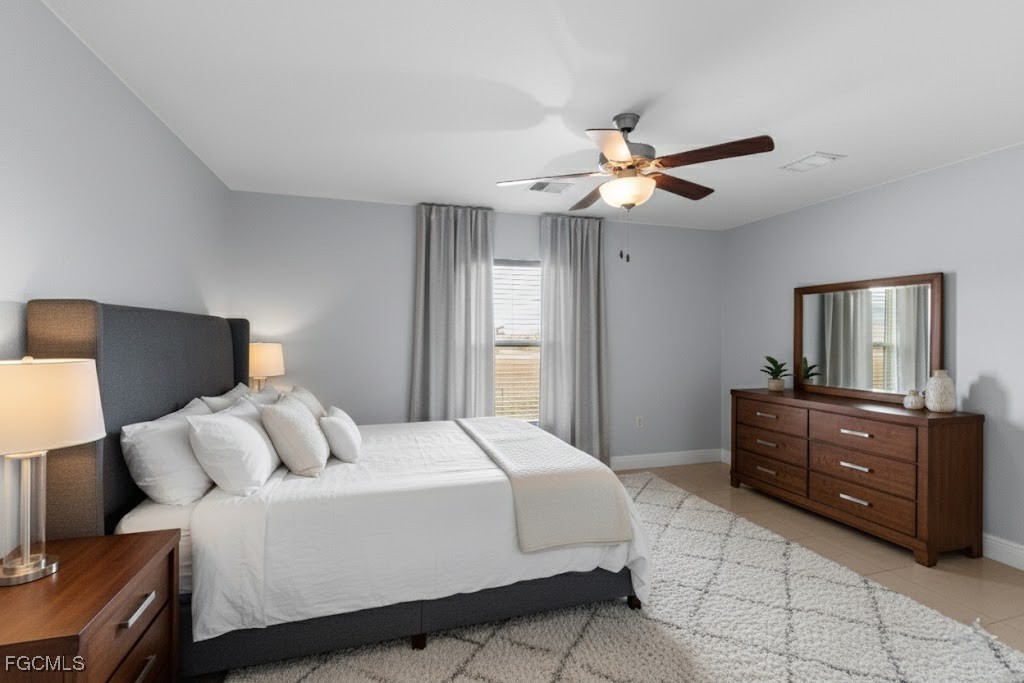 Sitting on an oversized corner lot in a quiet NE Cape Coral neighborhood, this three-bedroom home features a split floor plan with both a living room and a great room, giving you flexible everyday space. A versatile den off the front living room with pocket French doors is ideal for a home office or creative space. Tile floors run throughout, vaulted ceilings create an airy feel, and the kitchen offers stainless-steel appliances. The primary ensuite includes a walk-in closet, double sinks, a soaking tub and a walk-in shower. French doors open to the lanai, where you can relax and enjoy the soft evening light. A tile roof, 2020 AC, and newer water heater round out the practical updates that make this home a solid choice.
