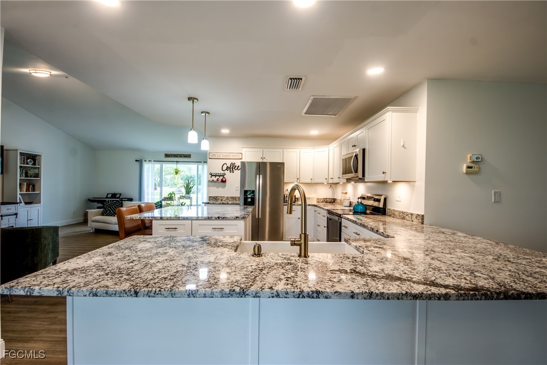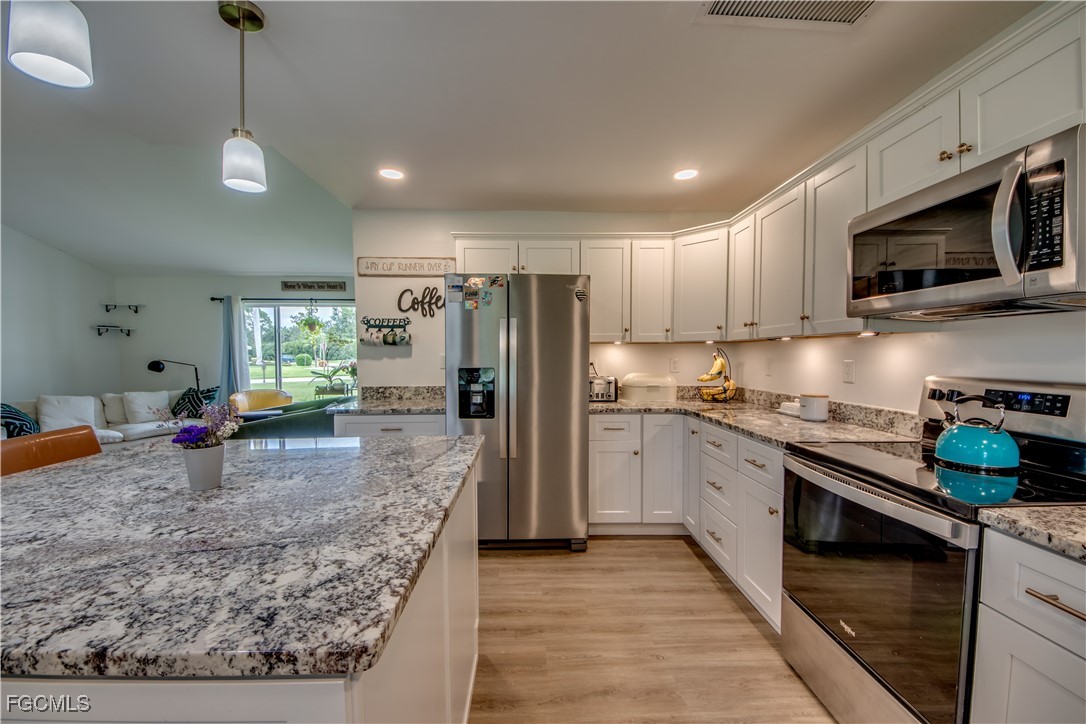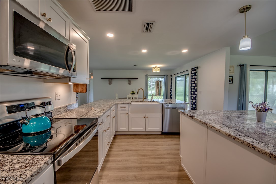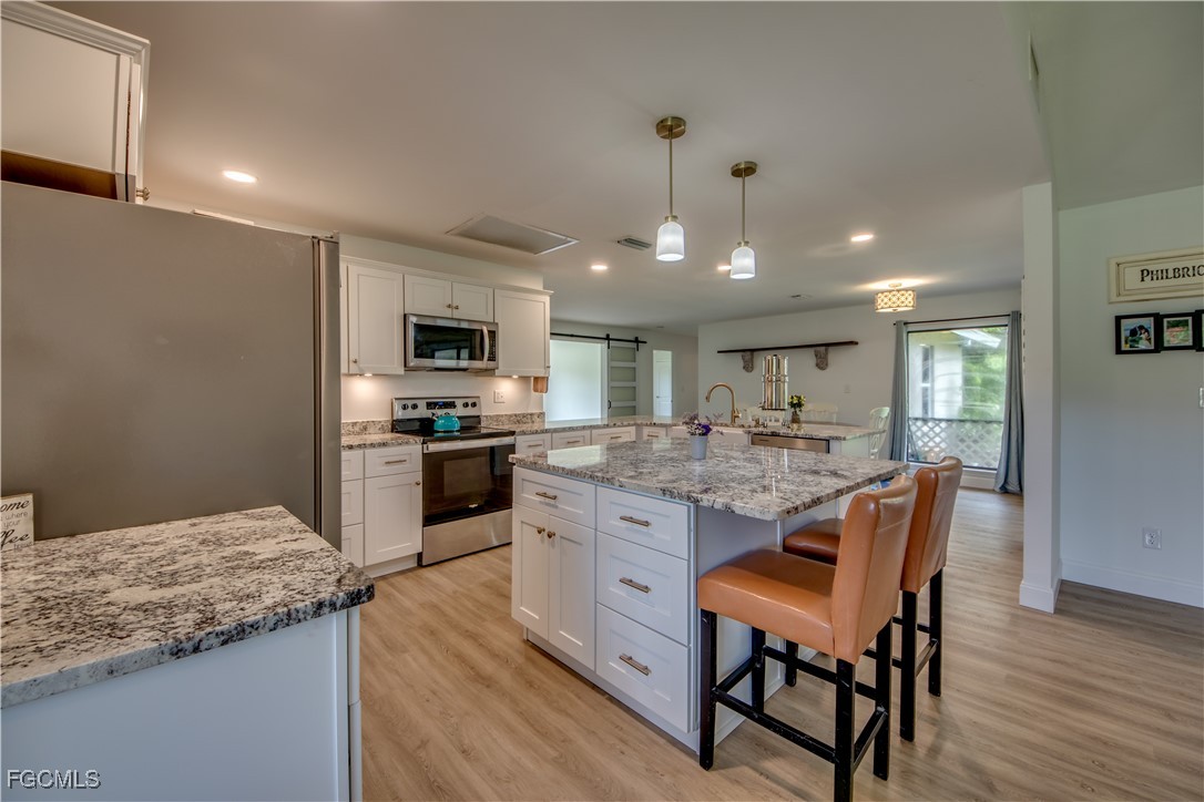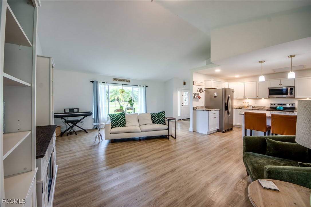 Get ready, because this one is a total TRIFECTA — LOCATION, LIFESTYLE & LUXURY wrapped up in an actually affordable package! This beautifully remodeled 4-bedroom home delivers that light-filled, wide-open floorplan everyone dreams about. The kitchen is pure delight… a gorgeous granite prep-island that doubles as the family gathering hub, farmhouse sink, soft-close base cabinets, crown molding and stainless-steel appliances (2023). It’s the heart of the home and perfectly positioned so you can chat with guests in the great room while whipping up dinner. Hosting? Easy. Weeknight living? Even easier. Your primary suite is a true retreat with a freshly remodeled bathroom (2024), beautiful finishes and spacious walk-in closet. The split bedroom design places three extra-generous bedrooms on the opposite side of the home. The fourth bedroom, dressed with charming barn doors and its own walk-in closet, makes a fantastic flex space—home office, den, playroom … you decide. Did we mention the NEW 2024 DIMENSIONAL SHINGLE ROOF? The oversized lanai overlooks a big, beautiful private backyard with lush green views. The home is filled with natural light thanks to several NEW IMPACT GLASS WINDOWS (excluding 4th bedroom, dining, and sliders). Sitting on almost a half-acre lot at the edge of the golf course, this home offers peaceful green views and neutral colors throughout, making it easy to bring in your own personal style. There’s plenty of space for gardening, lounging, grilling, or simply sipping your morning coffee while enjoying the sunshine and the quiet backdrop of nature. Welcome to The Forest, an enchanting country club community tucked into the tropical beauty of South Fort Myers. Here, YOU choose your lifestyle. Membership is completely OPTIONAL—pick unlimited golf, executive, sports, or none at all. The lowest HOA fee is an appealing $2,914 per year. Amenities? Oh, they’ve got plenty: 36 holes of golf, practice facilities, clubhouse dining, social events, tennis, pickleball, fitness center, bocce, and more. Use it all or just what you love… the beauty is in the flexibility. It’s the kind of place where neighbors wave, golf carts cruise at sunset, and every day feels just a little more relaxed. BONUS: The seller offers an assumable flood insurance policy for primary occupancy at a very attractive $2,404 per year. LOW HOA. NOT a 55+ community. Just easy, flexible living in one of the best pockets of Southwest Florida. And let’s talk about South Fort Myers — people LOVE it here. Gorgeous beaches, warm Gulf breezes, and that laid-back Florida lifestyle that feels like you’re on vacation every day. Boating, fishing, kayaking, and water sports at your fingertips. Lush parks, golf courses, dining, shopping, and cultural attractions round out the fun. Great schools and a friendly, welcoming vibe make this an ideal location for families, seasonal residents, and year-round sunseekers. The TRIFECTA is real, it’s here, and it’s calling your name—don’t miss it.
