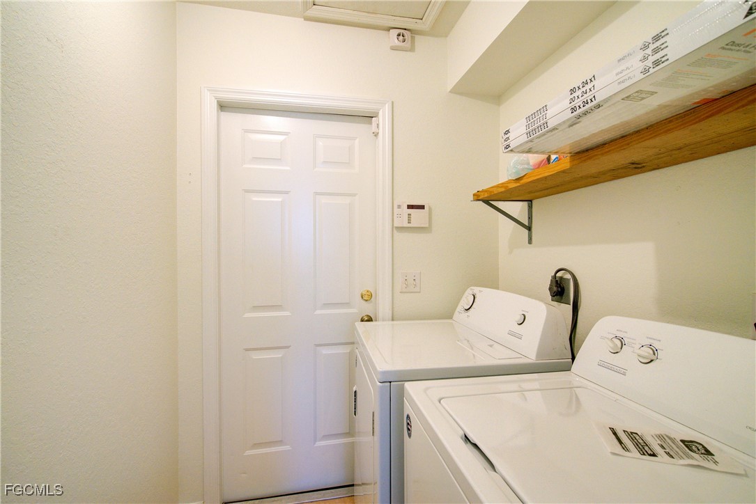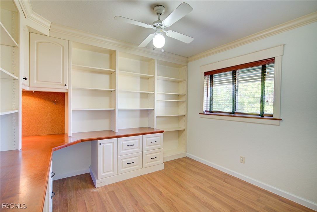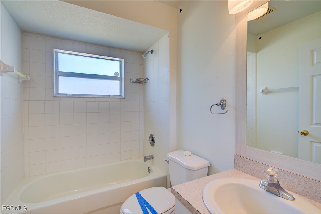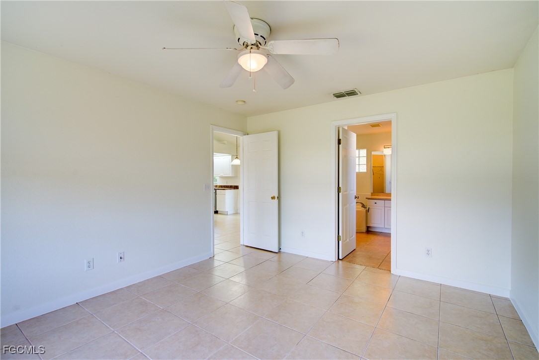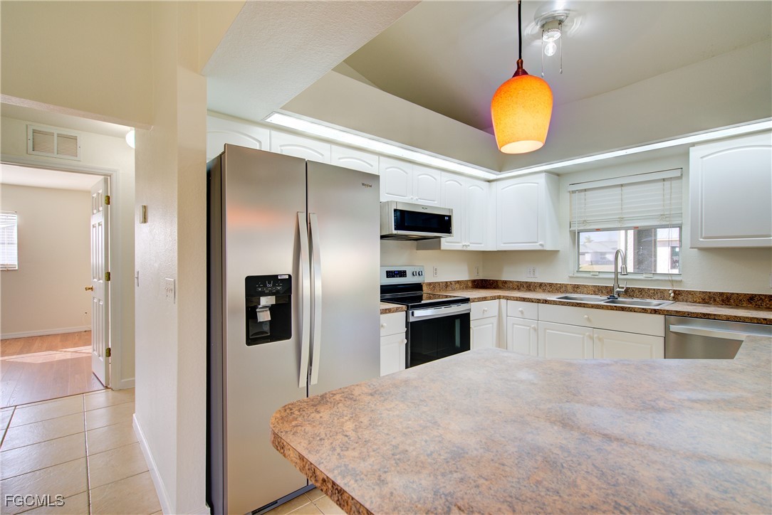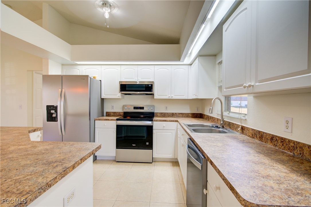 Move-In Ready 3 Bedroom Home in NE Cape Coral – Not in AE Flood Zone! New roof in 2022!! This well-maintained home features an open concept kitchen, living, and dining area with soaring vaulted ceilings that create a bright, spacious feel. The kitchen includes all-new appliances, and the home offers tile and laminate flooring throughout—no carpet. The split-bedroom floor plan provides privacy for guests, and the 3rd bedroom includes a custom built-in desk and shelving, making it ideal for a home office. Fresh interior and exterior paint—including the garage and tiled, screened lanai—give the home a crisp, updated look. City water and sewer are already connected, and assessments are paid in full, saving thousands annually on your tax bill. Located in a desirable, quiet neighborhood close to shopping yet away from heavy traffic. Best of all, this home sits in a NO flood zone for added peace of mind. Clean, updated, and ready for immediate occupancy—this one is a must-see!
