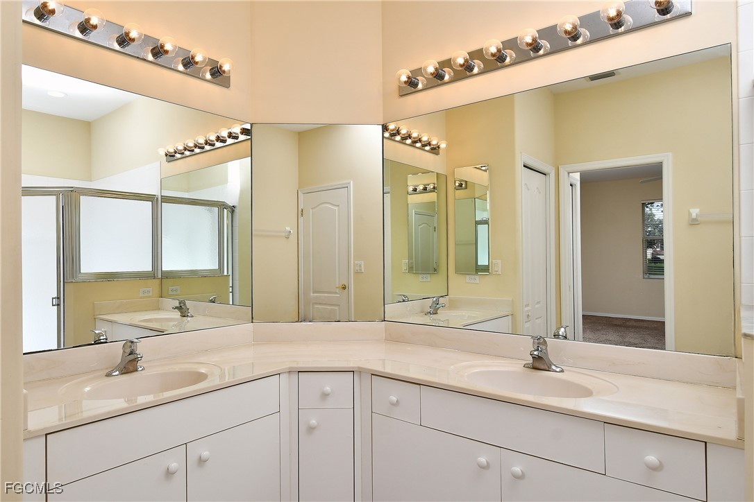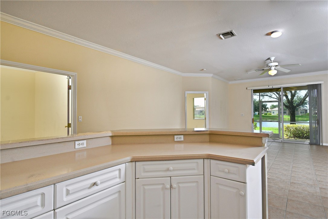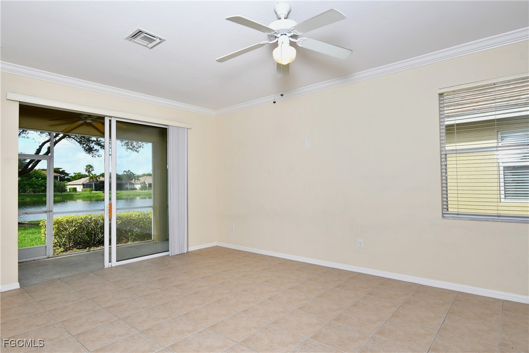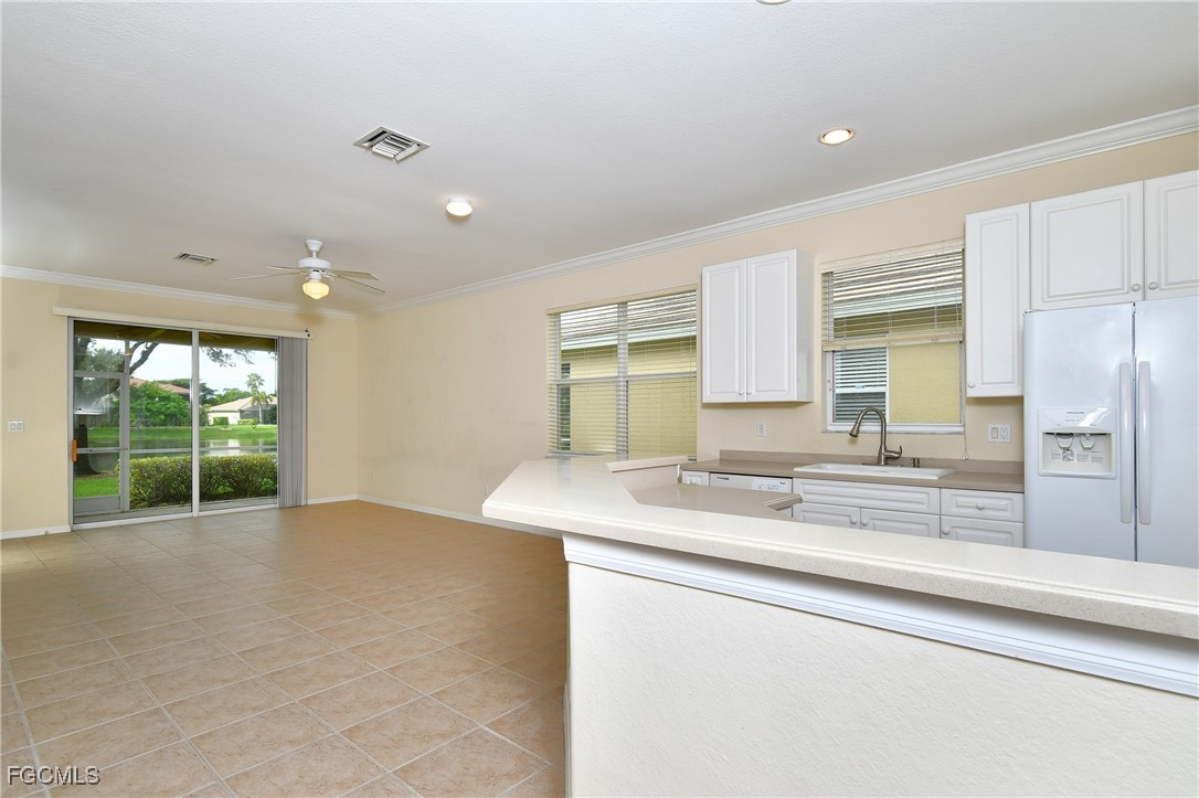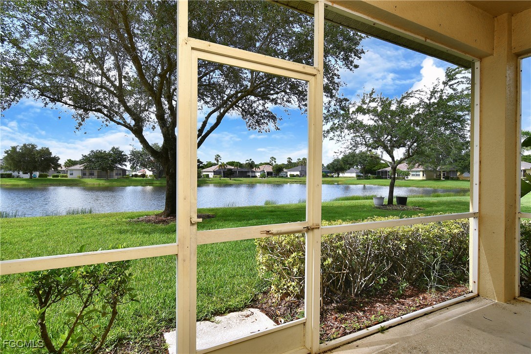 Welcome to your new home in Westminster Golf Club Community! A wonderful opportunity to move in to this two bedroom plus den villa that lives large like a single family home with the added benefit of your maintenance being covered. Seller will also include a one year home warranty with your purchase! Relax at the end of the day overlooking the peaceful water from your lanai view. Featuring a spacious kitchen, open to the dining and living areas, it is a great space to downsize to, live seasonally or year round! The large primary suite has views of the water out your windows, two closets and a large en suite. The second bedroom is spacious with a full size closet on the opposite side of the villa. The guest bathroom features a shower/tub combo just across the hall. There is a linen closet as well as a full size laundry room that comes with washer, dryer and plumbing to add a utility sink. The den is a great space for that extra sleeping area, tv room, office or any other needs. The home has a brand new tile roof completed just a few months ago. The villa HOA covers lawn and landscaping, pest control, exterior cleaning, painting and more. Westminster is a great place to live with affordable fees, golf for those that want to play, community amenities and plenty of events to get to know your new neighbors! A large community pool, spa, playground, tennis courts, pickleball courts, fitness room and more for those that like to stay active. The golf course also provides the option to join and become a member, or pay as you play if you don't have as much time. The restaurant on site puts on different events, as well as weekly specials with great food and drinks. The community is located with easy access to RSW International Airport, FGCU, JetBlue Park for Spring Training and plenty of restaurants and shopping close by.