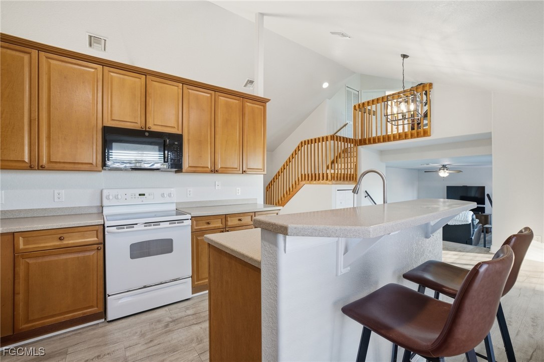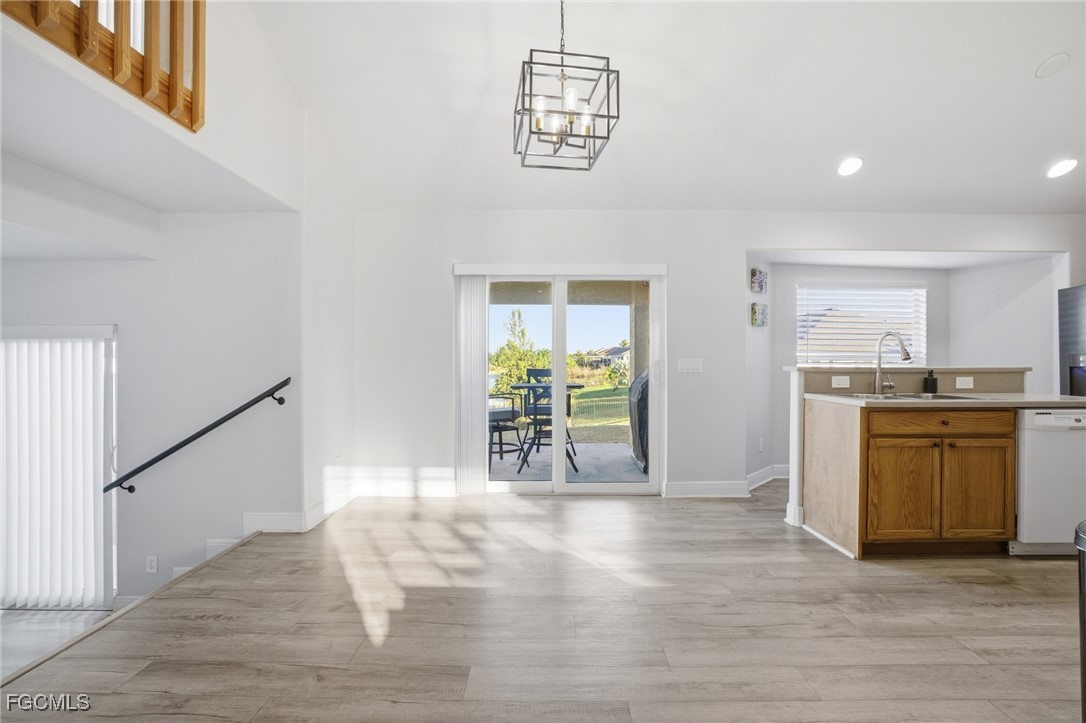 Step into spacious waterfront living at this unique split level home! This beautifully maintained home offers exceptional spaces for entertaining, starting with a grand living room and a stylish sunken family room showcasing serene water views. The bright island kitchen features a pantry, 42" cabinets, breakfast bar, and a spacious dining area that flows effortlessly to the raised patio—perfect for morning coffee or relaxing breaks.