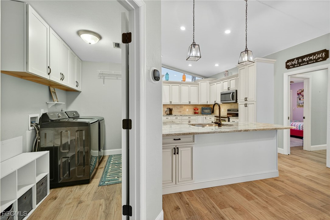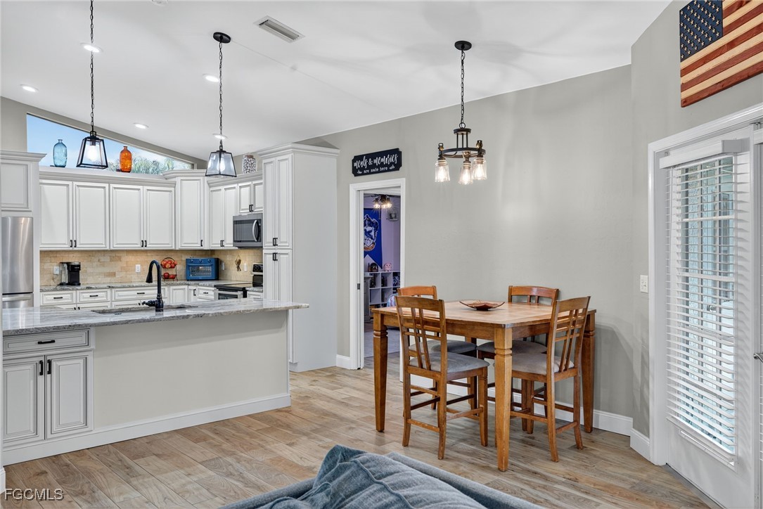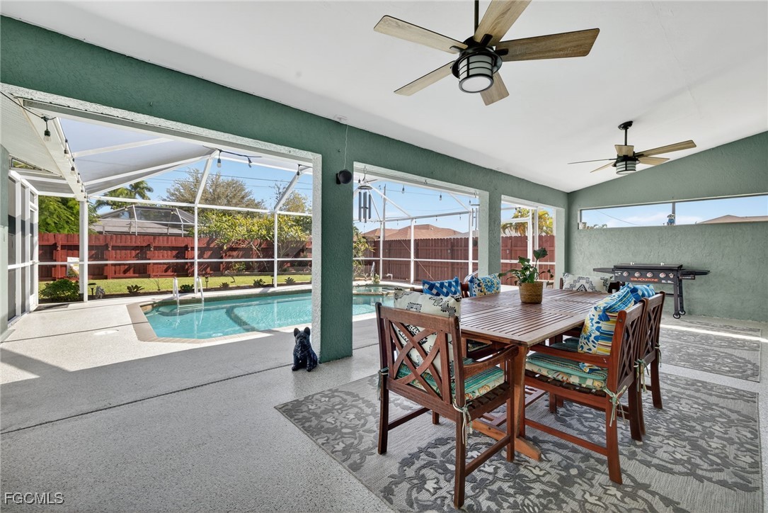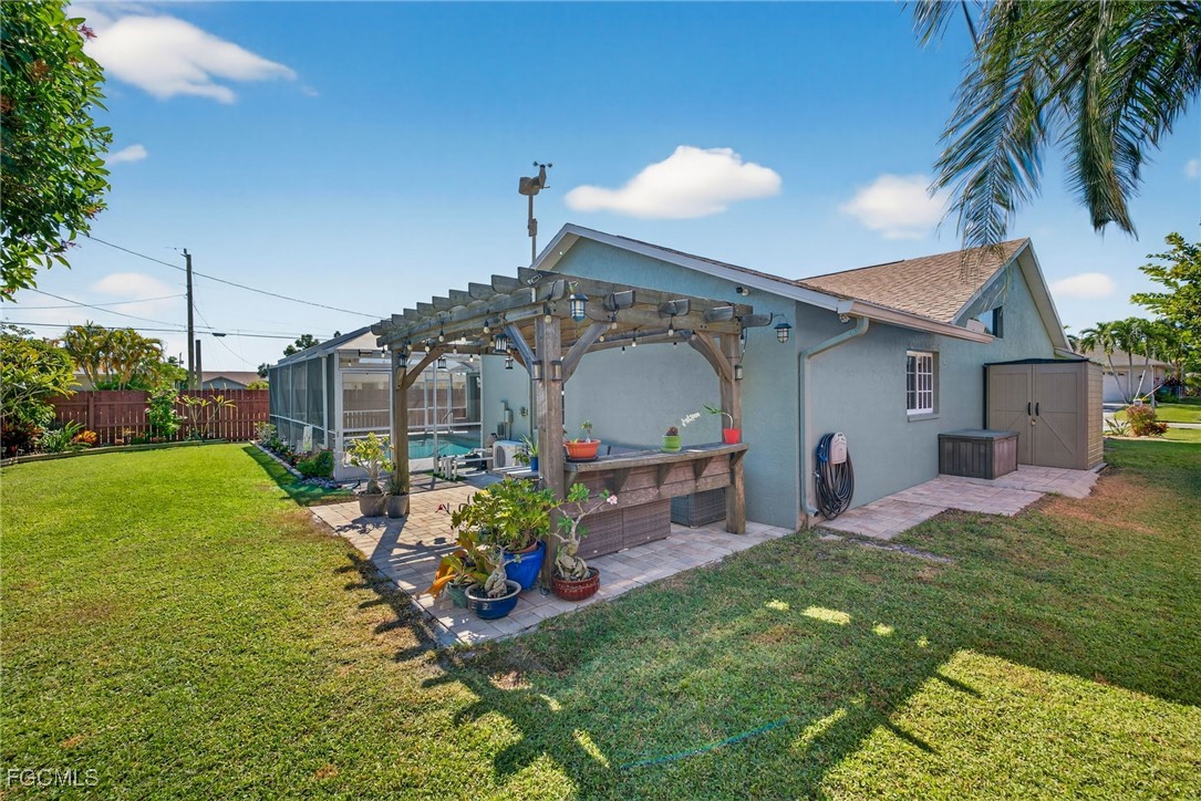 The elegantly renovated guest bath includes a convenient pool access door. Enjoy exceptional outdoor living with an upgraded patio, gazebo, paver walkways, epoxy-coated pool deck, storage sheds, and sprinkler system. All assessments are paid, and the home is located in a no-flood zone. Move-in ready and impeccably styled, this home delivers the perfect blend of comfort, convenience, and true Florida living.