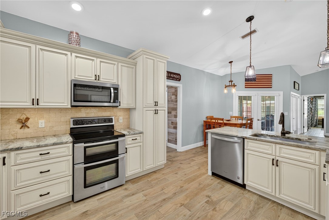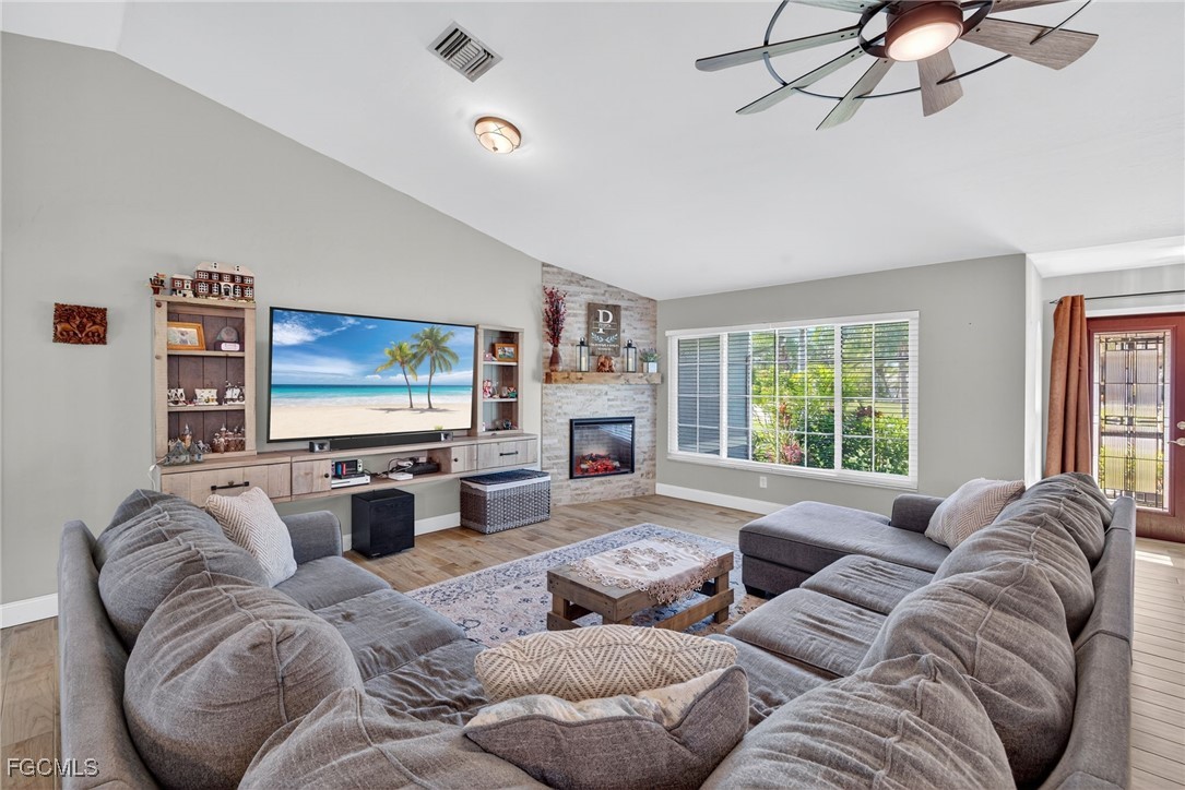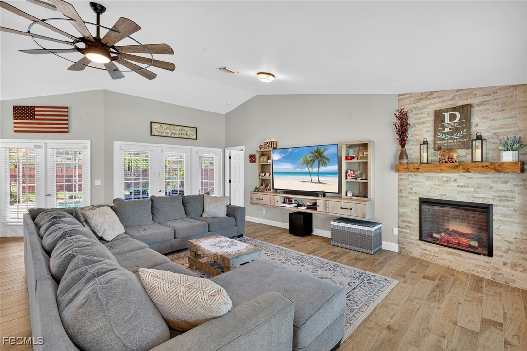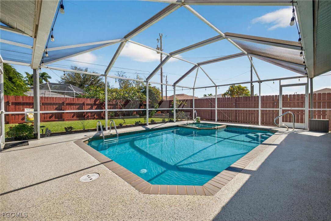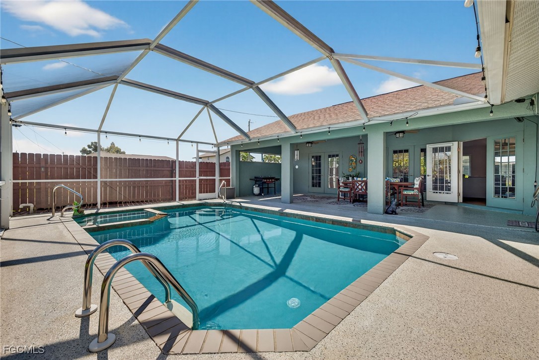 Beautifully updated 3-bedroom, 2-bath pool and spa home with a 2-car garage and 2022 roof, nestled on a desirable corner lot near top-rated schools and shopping. Step inside to an upgraded kitchen, modern lighting, Primary and office mini splits, new garage door 2023, roof 2022, 50-amp whole house generator hookup, and a cozy LED fireplace that set the tone for contemporary comfort. The spacious master suite boasts barn wood accents, walk-in closets, dual sinks, and both a tub and shower, with matching barn wood detailing thoughtfully added at the opposite end of the home. Impact windows (2023) throughout offer peace of mind.