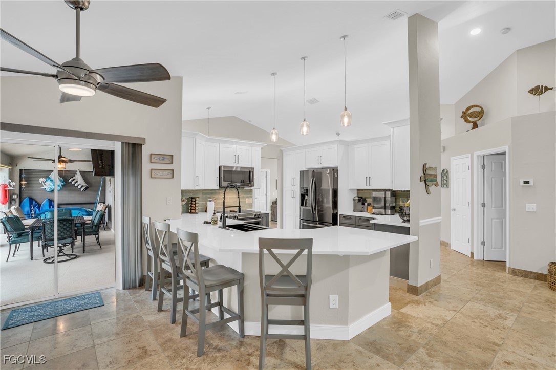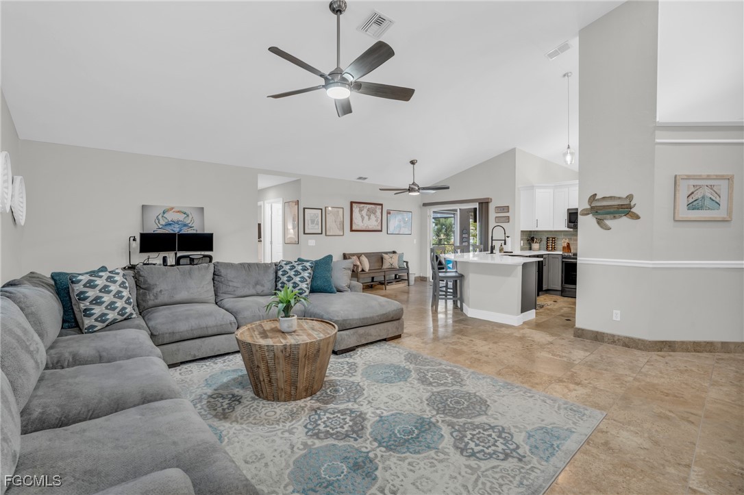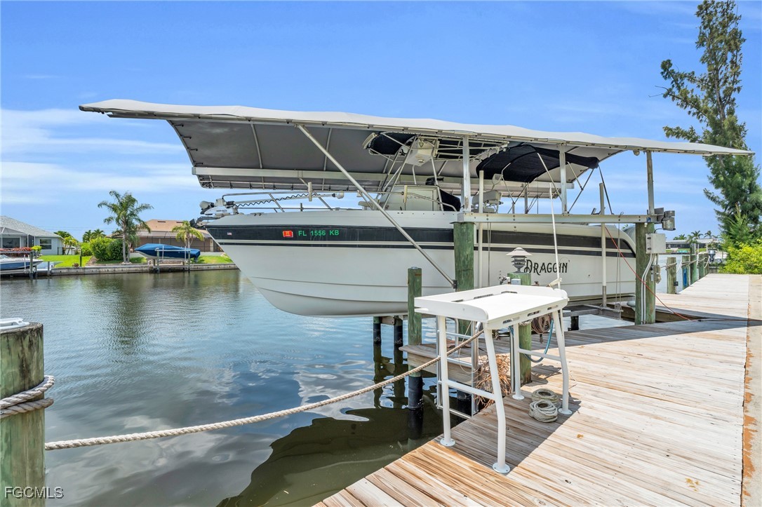 Beautifully furnished 3BR/2BA waterfront GULF ACCESS home in gorgeous SW Cape Coral! This home is on one of Cape Coral's wider canals which gives you both privacy and stunning views over the water. This well-maintained 2,100 sq. ft. property offers western exposure which means sun all day and sunsets at night. Stunning canal views, and a spacious screened lanai with heated pool. Newly renovated kitchen with stainless steel appliances and ample counter space. Open living and dining areas filled with natural light. Dock and boat lift provides a perfect spot to relax by the water (boat is also for sale separately). TURNKEY, move-in ready, and ideal for full-time, seasonal, or investment use. A must-see waterfront gem in SW Cape Coral! KITCHEN AND BATHROOMS RENOVATED IN 2024. NEW ROOF AND FENCE IN 2023.