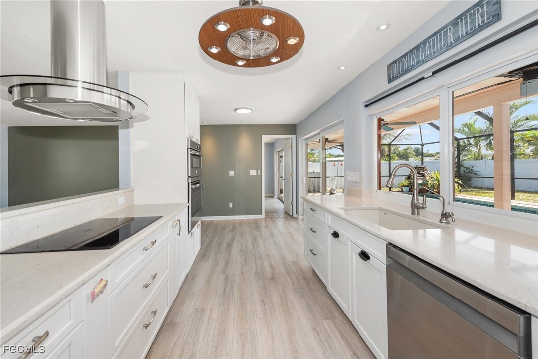 Welcome to this charming Florida OASIS known as "THE BIG HOUSE ON THE CORNER"! This beautifully maintained 3/2 FENCED Pool Home nestled in the Coronado Moors community in Fort Myers offers the perfect blend of comfort, location, and lifestyle. Situated on a spacious oversized corner lot, this home features an open, light-filled floor plan with tile and luxury vinyl flooring throughout. Newer ROOF (2019), newer appliances, new gutters (2023), Hot Water Heater (2023), IMPACT Windows, NEW A/C (2025), new interior and exterior paint, water softener, reverse osmosis system, OVERSIZED GARAGE, and solar panels (buyer must assume contract) . Enjoy Florida living at its finest with a screened-in lanai (new screens and doors 2023) overlooking your private in-ground HEATED pool (child fence included) — ideal for relaxing or entertaining year-round. This home also features a Barbados cherry, papaya, and orange trees for some Florida fresh squeezed orange juice or homemade pies. The kitchen offers ample cabinet space and flows seamlessly into the dining and living areas, making it easy to host gatherings with family and friends. The split-bedroom layout ensures privacy, with a generous primary suite complete with an en-suite bathroom with bidet, and walk-in closet. Additionally, this home is walkable to Cypress Lake High & Middle Schools and minutes to beaches, shopping, dining, and entertainment. Whether you're a growing family, retiring to paradise, or looking for a vacation retreat close to everything Southwest Florida has to offer, this home checks all the boxes. Don't miss this opportunity—schedule your private showing today! HOME APPRAISED IN 2024 FOR 462K