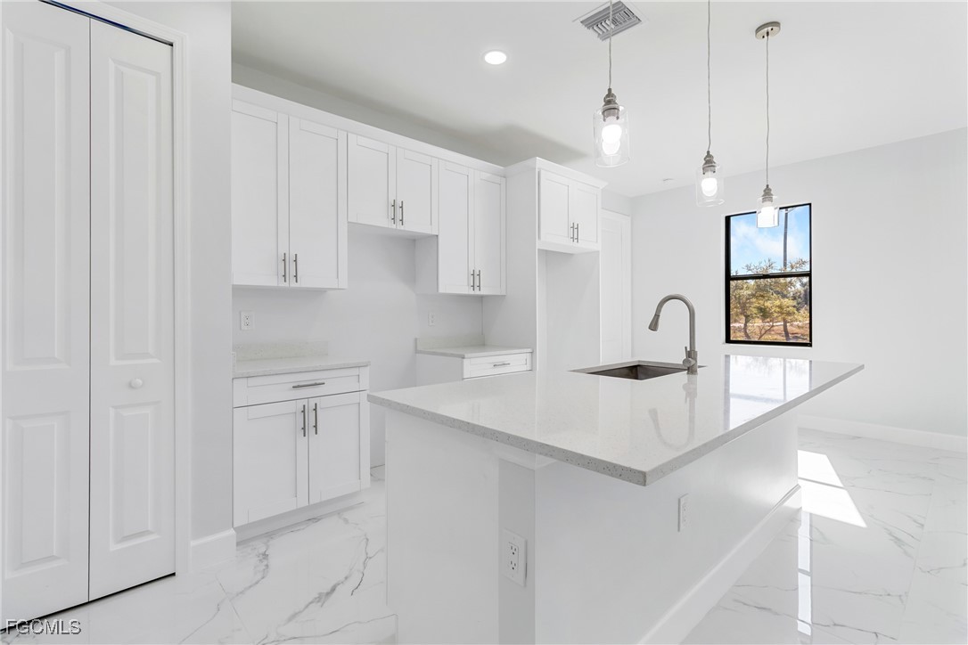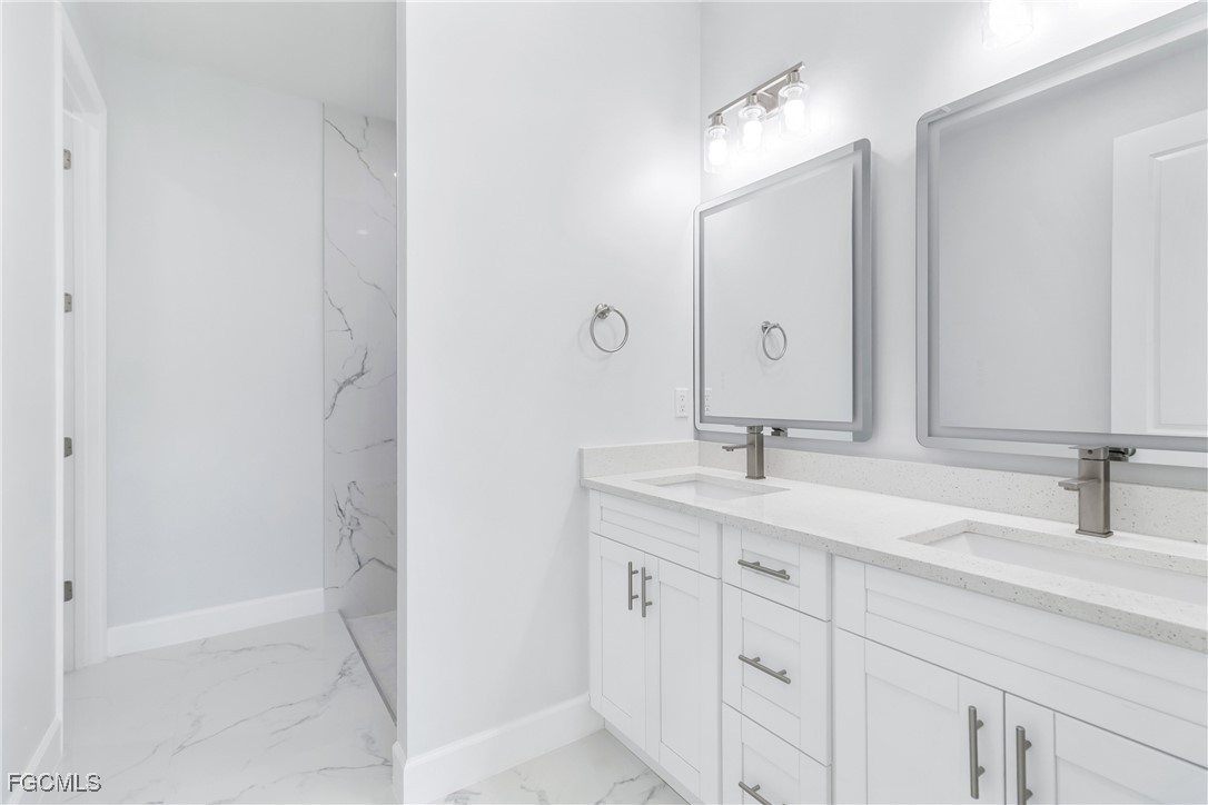 Stunning New Construction in Lehigh Acres! Discover modern living in this beautifully designed 3-bedroom, 2-bathroom home located in the heart of Lehigh Acres. This fresh, contemporary build features a sleek, modern kitchen with elegant cabinetry, perfect for any culinary enthusiast. The bathrooms are simply stunning, offering a luxurious feel with high-end finishes throughout. The spacious primary suite includes his and hers walk-in closets, offering ample storage and comfort. The open concept living area is ideal for entertaining, enhanced by a stylish entertainment door that seamlessly connects the indoor space to the outdoors. Additional highlights include a well-appointed garage. This home combines comfort, style, and functionality perfect for modern Florida living!