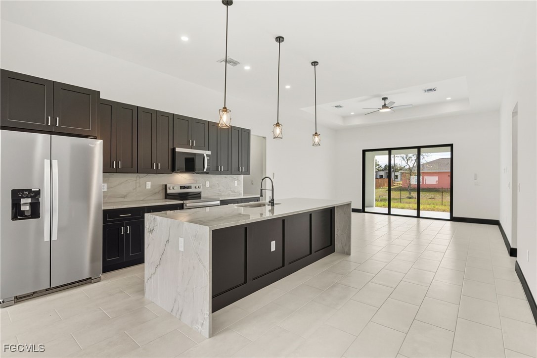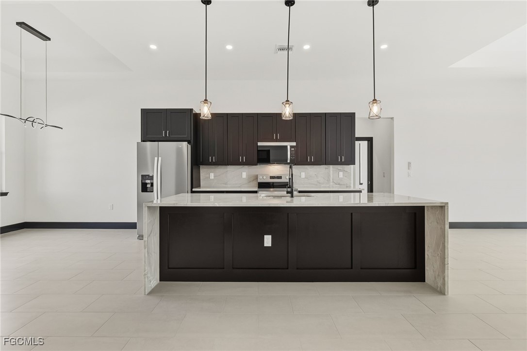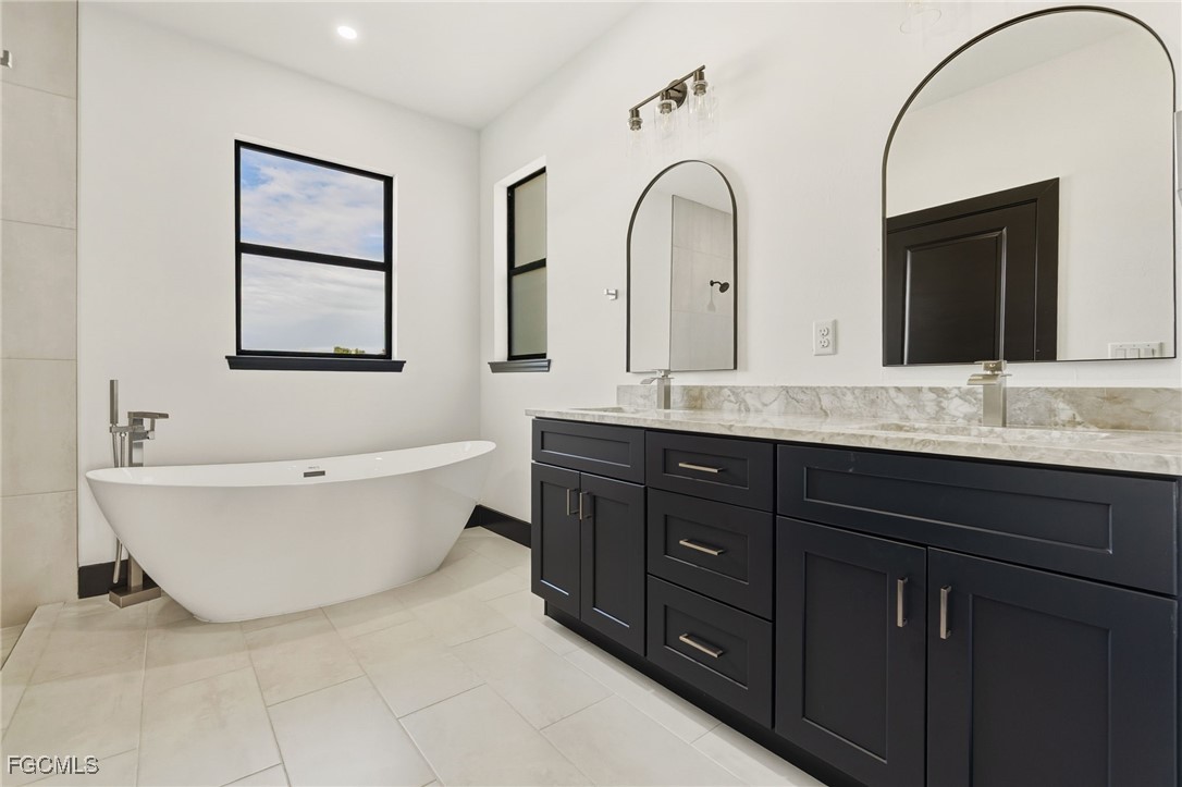 The standout feature of this property is the level of craftsmanship and materials used during construction. The sellers own a respected local granite and stone company in Ft. Myers, and the home showcases designer-selected natural stone "Quartzite" countertops, (Bianco Pearl in the kitchen and Alba Pietra in the bathrooms) custom cabinetry, premium tile flooring, and high-quality fixtures, all sourced from their professional showroom. Unlike standard spec homes, this residence offers a truly elevated and custom feel from the moment you step inside.
