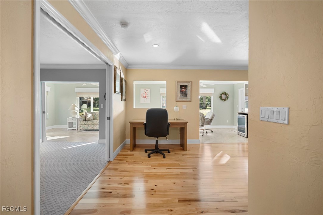 DON'T MISS this Showstopper! 3 BR / 3 FULL BATHS / 2 CAR GARAGE 55+ VILLA in Highly Desired Whiskey Creek! With 1900 SF of Living Area, this home feels like single family living. The Primary and Second Bedrooms have their own bathrooms while the 3rd Full Bathroom is perfect for guests. The Flexible Third bedroom with Murphy Bed could also serve as an extra living room, bonus room or large den. Entire Home has been TOTALLY REMODELED & UPDATED. Real HICKORY HARDWOOD Flooring as well as PORCELAIN TILE! Well-appointed ISLAND KITCHEN with GRANITE COUNTERS ~ SS APPLIANCES (including Built-in Convection Microwave and Oven new in 2024 and French Door Refrigerator) ~ CHERRY WOOD CABINETRY and Pantry with SOFT CLOSE DRAWERS & PULL OUT SHELVES! PLUS, the kitchen Island has INDUCTION Cooktop and Canopy Range Hood. Feel safe and secure knowing EVERY WINDOW (incl GARAGE DOOR) are MIAMI DADE RATED (excluding front door). Hunter Douglas Blinds and Room darkening Shades on most windows. ~ NEW A/C 2024 ~ High Ceilings and CROWN MOULDING throughout. You're sure to attract guests with MULTIPLE LIVING & ENTERTAINING AREAS including a Paver-Brick back PATIO! Inside LAUNDRY ROOM with utility sink and cabinetry. Beverage Bar w New 2024 Dual-Zone Wine/Bev Fridge. Epoxy Flooring in Garage with Custom Cabinets. Brand new carpeting in Primary BR. Beautiful Paver Driveway and Concrete Curbing. Must see this home! Condo Fees include Lawn Maintenance, Roofs, Exterior Insurance, HEATED POOL AND CABLE! Bring your pet under 20#. One Annual Rental allowed. NOT in flood zone. Location is everything and you have that here in the Whiskey Creek neighborhood, so close to restaurants, shopping, historic downtown Ft. Myers and Cape Coral. Whiskey Creek is home to a public golf course with restaurant! Golf and social memberships are additionally available. Golf cart friendly, bike and jog paths and friendly neighbors. Don’t miss out on this one!