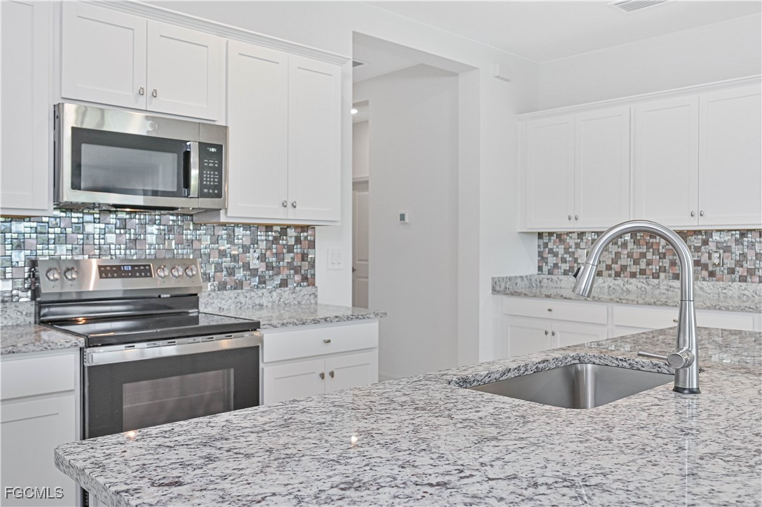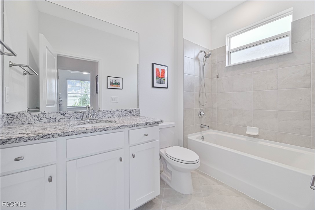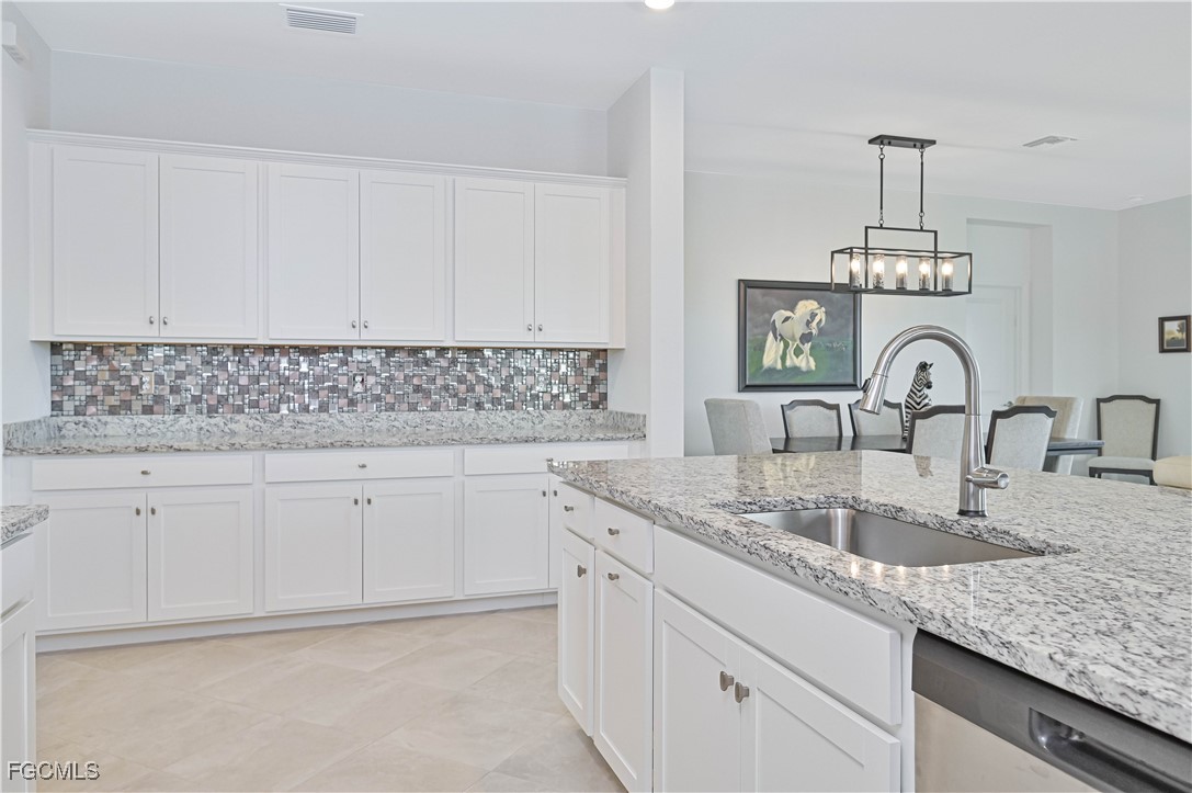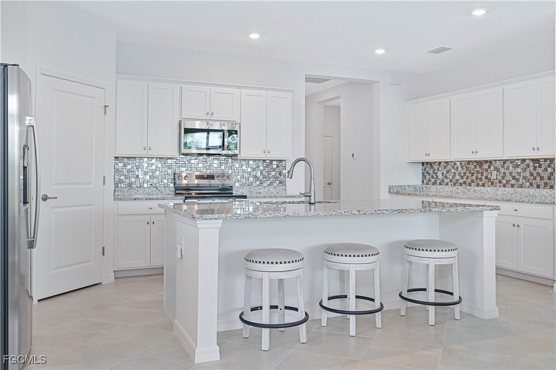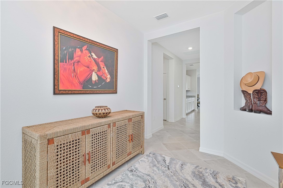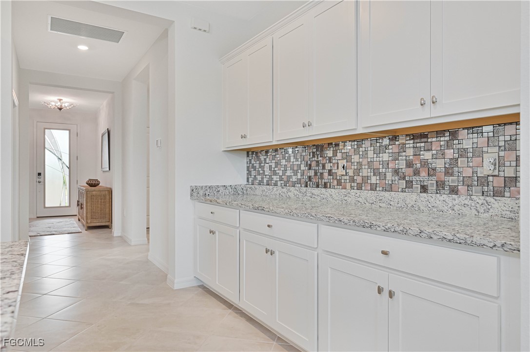 Welcome to this Stunning, Move-In Ready Home with Premium Upgrades Throughout & Optional High-End Furnishings. Discover exceptional comfort, style, and convenience in this beautifully upgraded home set on a premium lot with enhanced outdoor spaces and luxurious interior finishes. From the moment you arrive, the etched glass entrance door welcomes you into a residence designed for both elegance and everyday living. Inside, enjoy thoughtful upgrades including ceiling fans and designer light fixtures throughout, smart light controls, and a beautifully refreshed kitchen featuring glass-copper tile backsplash, counter lighting, and a touch-activated faucet. The open-concept living areas flow seamlessly for entertaining and relaxation. The bathrooms offer elevated comfort with upgraded towel bars and accessories, plus a frameless shower door in the guest bath. The home also includes a garage with epoxy flooring and fully enhanced landscaping with irrigation. Step outside to a private oasis on the lanai, complete with BRAND NEW SPA, new screening, custom Graber roll-down privacy shades, and a relaxing Hot Springs spa. Additional exterior features include installed gutters, decorative metal fencing in the rear yard, and a convenient trash-can storage area.