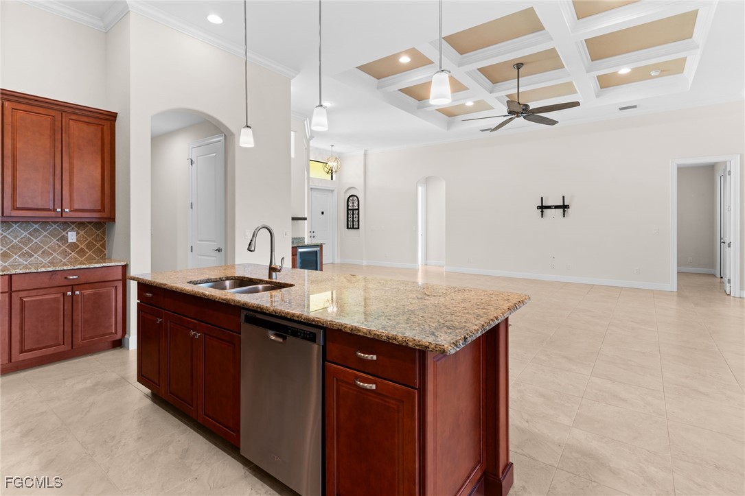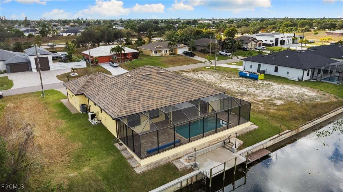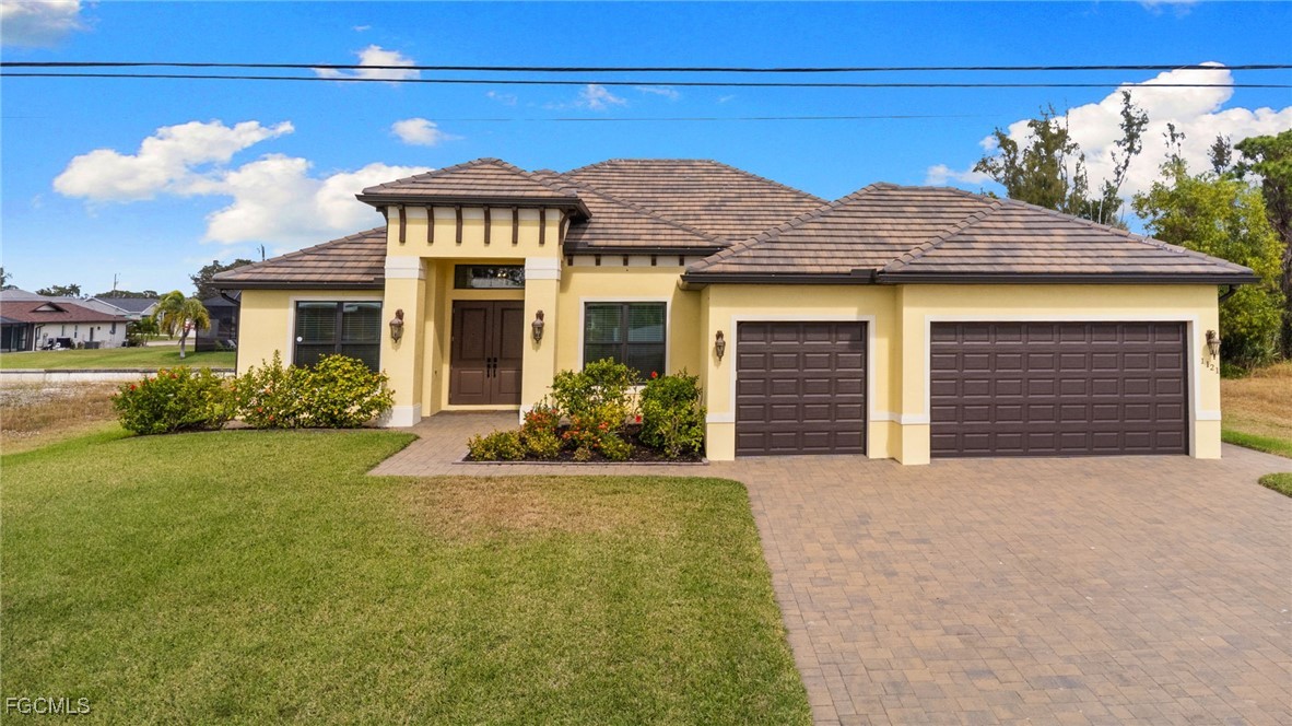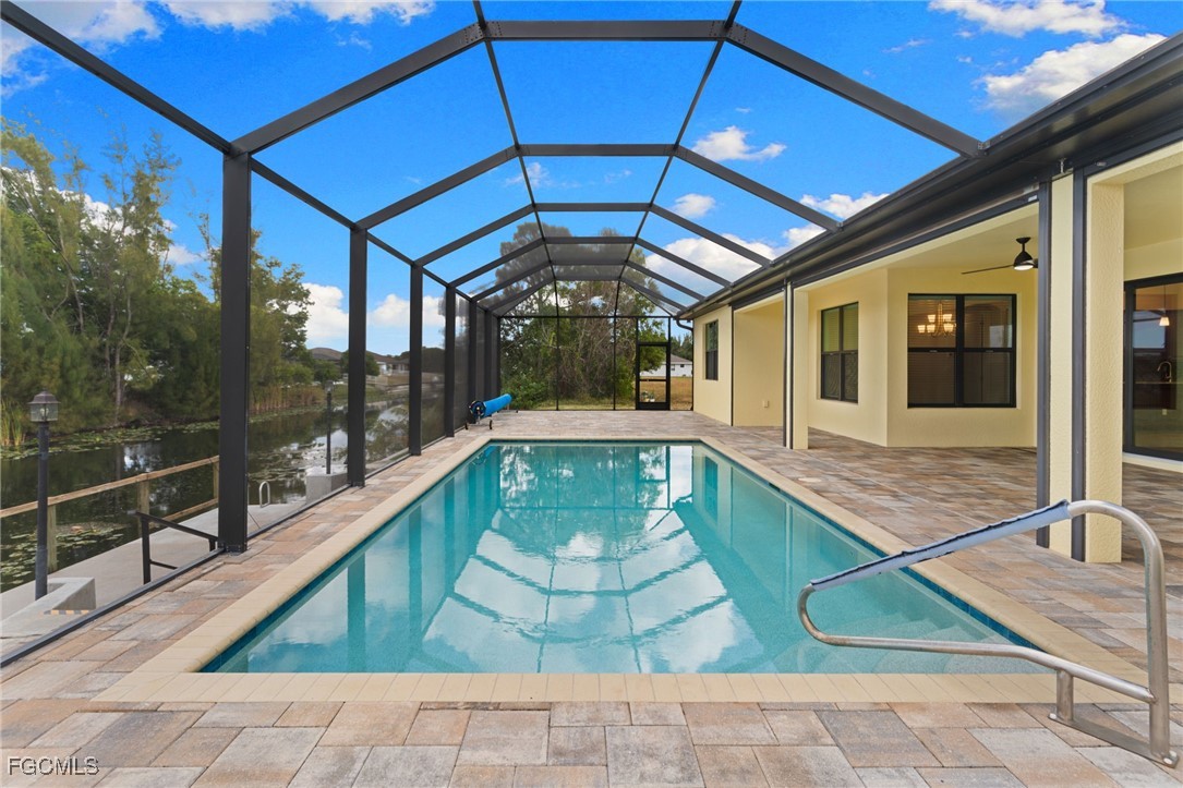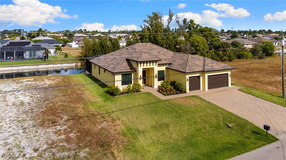 Experience this exceptional Open Concept Great Room home, built by a multiple award-winning local builder. Conveniently located to amenities and yet far enough from major roadways. The spectacular curb appeal sets the home apart. Featuring pretty landscaping, with three bedrooms and three bathrooms, plus Study, and Three-car garage, large lanai spreading out to a paver pool deck featuring a HEATED SALT SYSTEM Pool, this home is easy living SWFLA style. You'll be impressed from your first step into the home: The open concept floor plan lives large with a spacious Great Room, large well-appointed Kitchen, and spacious family room ALL looking out onto the Lanai and Pool and Canal. The roomy primary suite is light & bright, with a beautiful coffer ceiling with crown molding detailing. And a Primary Bathroom featuring PLENTY of room with double separate vanities. The third bath is a Pool Bath with direct access to the Pool Deck. Inside and out this home is all and includes electric hurricane screens across the entire Lanai, and paver walkways from the pool deck to the dock. Plus the dock has water & electric. The home is move-in ready and NEWLY BUILT from 2020 meeting all the new rigorous storm and building codes. ALL windows and doors are DOUBLE-PANE HURRICANE IMPACT. This home offers many upscale finishes & features you won't typically find. Like CRACK-SUPPRESSANT membrane under tile; ALL WOOD & AMERICAN-MADE cabinets; kitchen and bathroom vents all vent to the outside (no blowing back when you're cooking and entertaining); beautiful quality details such as 5 1/4inch CROWN MOLDING + 5 1/4inch BASEBOARDS + 3 1/2inch DOOR CASINGS; ALL doors are 8ft to complement perfectly the 12ft CEILING IN GREAT ROOM; TILE ROOF on a PLYWOOD roof deck. Come see this home and make it yours.