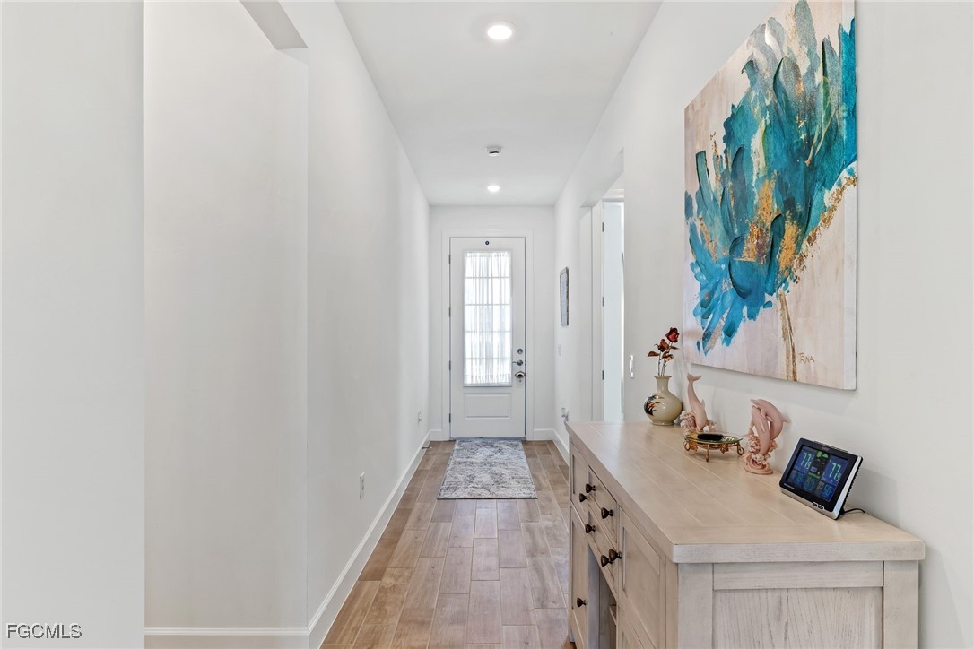 WOW! THIS MOVE-IN READY HOME IS A MUST-SEE! ONLY LIGHTLY LIVED IN SINCE AUG. 2025, THIS HIGHGATE MODEL IS DECKED OUT WITH UPGRADES THROUGHOUT. THIS GORGEOUS HOME OFFERS A LARGE OVERSIZED GARAGE AT 550 SQ.FT., WITH A 4' EXTENSION AND EPOXY FLOOR!! AND THE LOT? WELL, LET'S JUST SAY THIS ONE HAS PLENTY OF SPACE FOR ALL YOUR DREAMS TO COME TRUE! WHETHER YOU WANT A POOL, SPA, OR BIG OUTDOOR LIVING SPACE...YOU CAN DO IT ALL HERE! Sellers' Pride of Ownership shows inside and out with an immaculately kept interior and well-maintained exterior. OFFERING 1850' OF LIVING SPACE with 4 BEDROOMS and 2 BATHS. FEATURING IMPACT WINDOWS and DOORS and NEWLY INSTALLED ELECTRIC HURRICANE RATED SCREENS on the EXTENDED LANAI for comfort and safety. PROPERTY IS LOCATED IN THE DESIRABLE FLOOD ZONE X FOR ADDITIONAL PEACE OF MIND! Upgrades include 8' interior doors, 2 tray ceilings, quartz countertops throughout, 5 1/4" baseboards and so much more. The kitchen offers STAINLESS STEEL APPLIANCES including a GAS RANGE WITH AN AIR-FRY OVEN, 42" UPPER CABINETS WITH CROWN TRIM, LARGE DRAWER STACK, SOFT-CLOSE FEATURE, ROLL-OUTS, LARGE ISLAND AND WALK-IN PANTRY! With seating available at the oversized island and spacious dining area, entertaining is made easy. Exterior lighting and hardware were upgraded, as well. The Owner's Suite is roomy and has great views of the landscaped lawn. The UPGRADED OWNER'S SHOWER IS TILED TO THE CEILING! If you are in the market for a home that already has all the finishes complete, you will want to see this NEARLY NEW home that is in PRISTINE CONDITION and MOVE-IN READY! Furniture may be negotiable. Most items are only a few months old! PULTE WARRANTY IS TRANSFERABLE TO NEW OWNER!! Babcock Ranch offers a unique lifestyle, and Northridge is a great community within Babcock. You have 2 pools available for use...one at Lake Timber Lodge, one at Cypress Lodge. Enjoy great dining venues, parks, waterside events, sports, shopping and convenience! Babcock Ranch...an Amazing Concept and Thriving!!