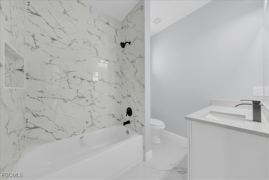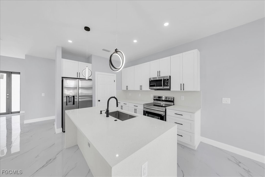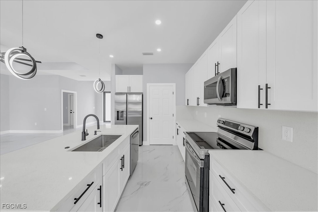 Brand-new construction in the heart of Lehigh Acres! This stunning 3-bedroom, 2-bathroom home with a 2-car garage features modern finishes throughout, including porcelain tile flooring, hurricane impact windows and doors, and an open-concept layout designed for today’s lifestyle. The kitchen offers granite countertops, stainless steel appliances, and a breakfast bar, while the spacious primary suite includes dual sinks and a walk-in shower. Enjoy the Florida lifestyle on your covered lanai and private backyard. Conveniently located near Southwest Florida International Airport (RSW), Daniels Parkway, I-75, shopping, dining, and schools, providing easy access to all of Southwest Florida. Perfect as a primary residence or investment property!