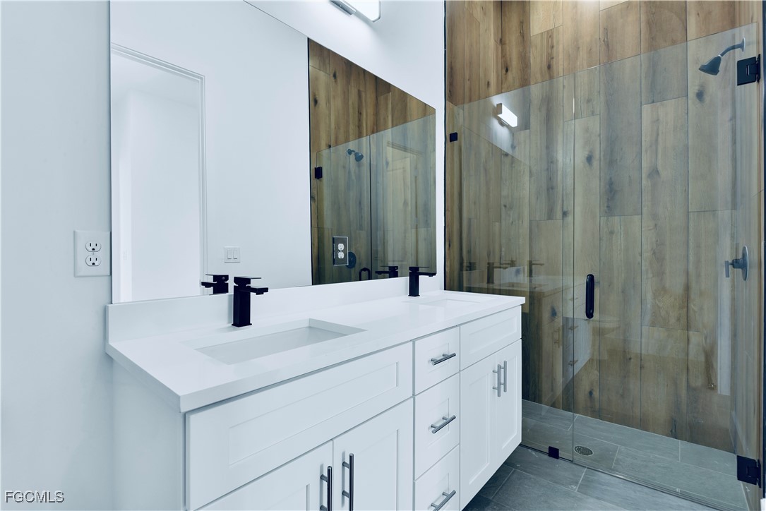 Retreat to luxurious bathrooms showcasing frameless tiled glass walk-in showers and admirable dual-sink floating vanities.