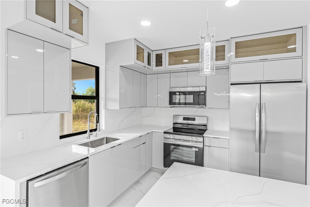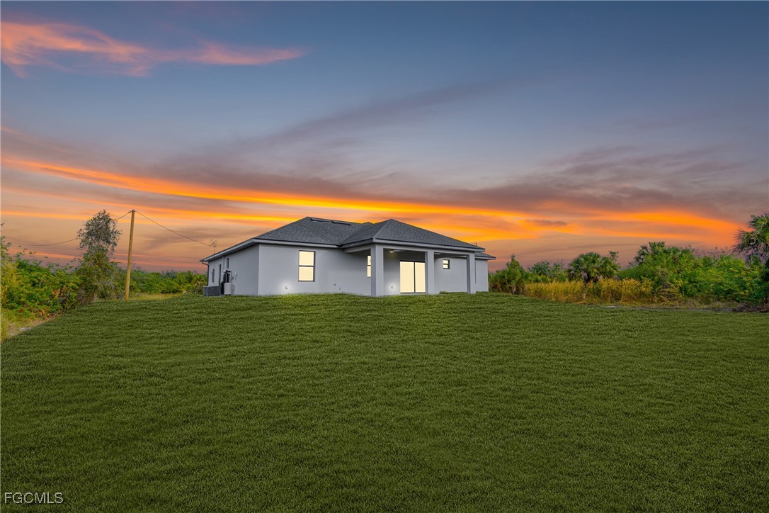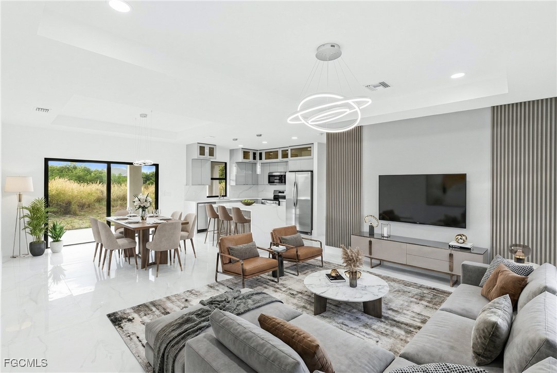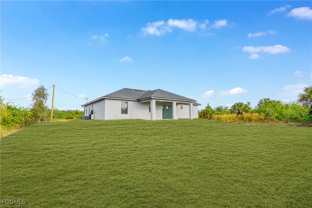 Brand-new 2025 construction—This beautifully designed 3-bedroom, 2-bath home features 1,387 sq ft of living area, an open-concept layout, and tall ceilings that create a bright, spacious feel. The modern kitchen includes a center island, pantry, refrigerator water line, and a seamless flow into the dining and great room—perfect for entertaining. The split-bedroom floor plan offers privacy, with a spacious primary suite featuring a walk-in closet and a beautifully finished walk-in shower. Secondary bedrooms are generously sized with egress-approved windows for natural light. Enjoy Florida living on the covered lanai overlooking the backyard. Home includes an interior laundry room, 2-car garage, modern finishes, and energy-efficient construction. Located in a growing area close to new homes, schools, shopping, and major roads. Move-in ready—and seller contribution of $5000 for closing costs make it even better!