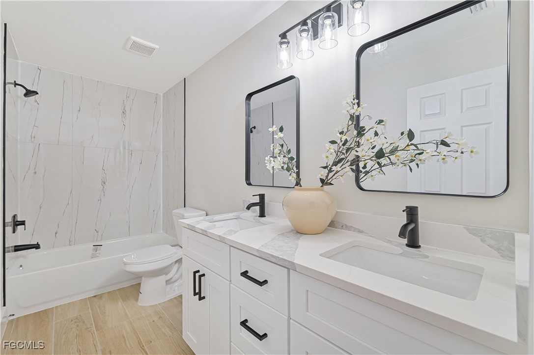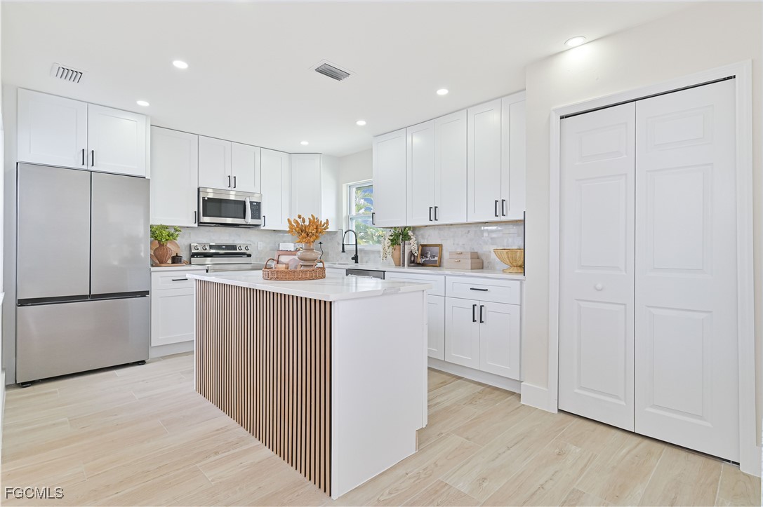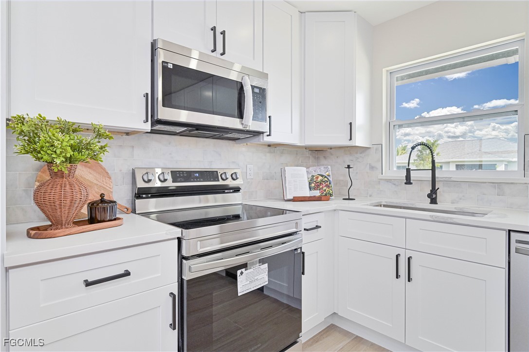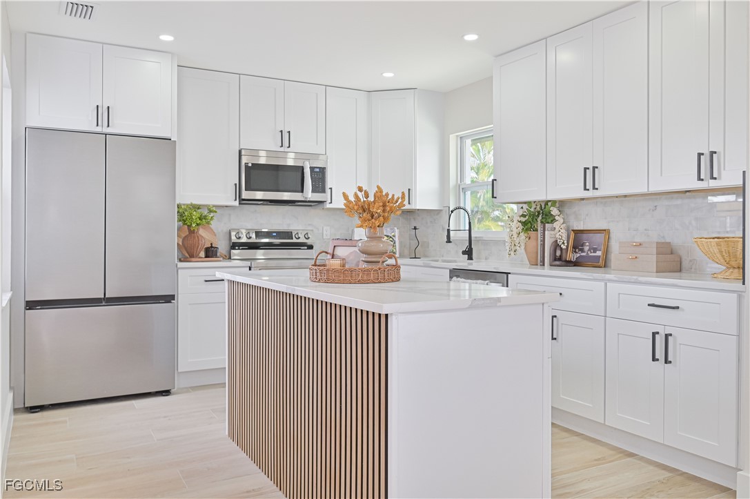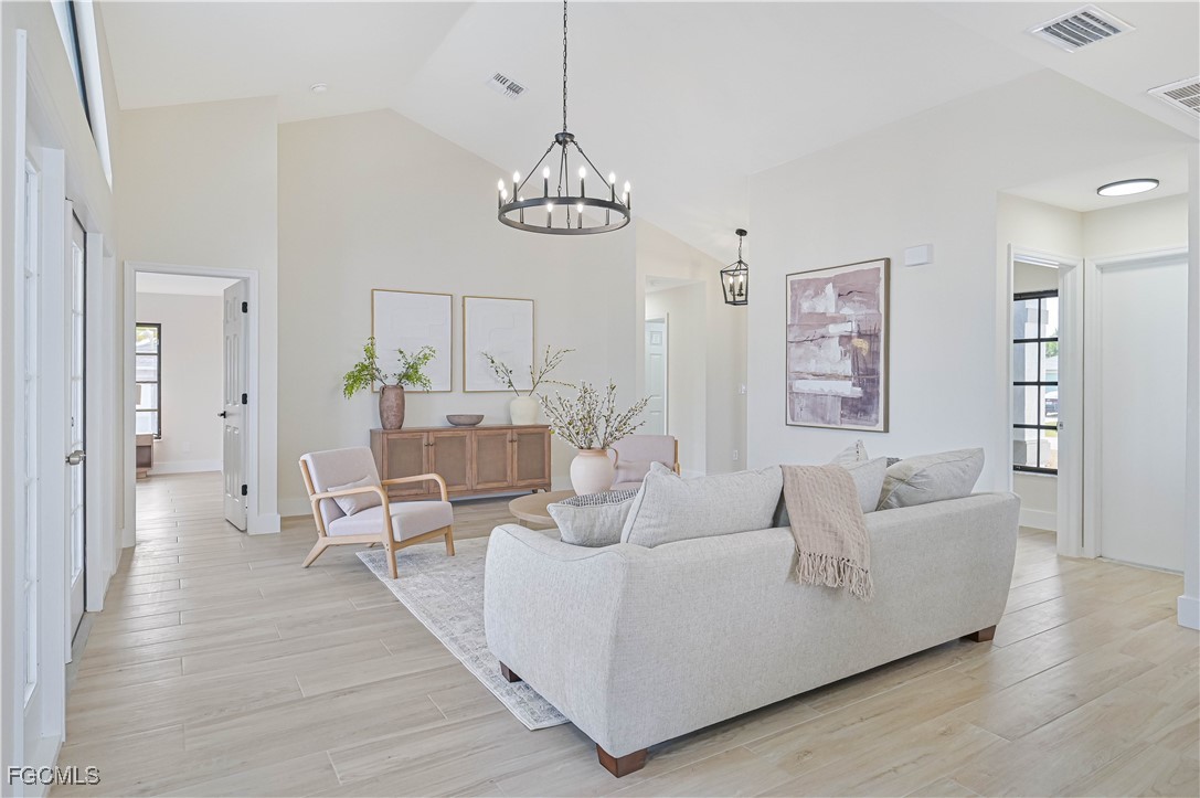 Buyer has got issue with job transfer! Welcome to this Stunning renovated home In SW Cape Coral. The property has been totally renovated from top to bottom like a new home. Step inside, you'll be greeted by stunning wood plank tile that graces the entire house with 5 inches base board gives it the modern feel. The Living room, open concept with kitchen and dining room offers great practical space for family and friends gathering and partying. This luxury kitchen carries brand new hardwood cabinets with soft closing features, beautiful calacatta quartz countertop, Big island and brand-new stainless-steel appliances. Stunning main bedroom and huge walk-in closet as well as the spa like main bathroom literally take your breath away when you walk in. Home has brand-new LED lighting throughout the entire house. Property has newer 2022 roof that provides peace of mind for years to come. Property is in X zone, so no flood insurance is required. Big patio provides tons of concrete pad with large cover area oversees practical backyard provides endless Florida outdoor living lifestyle. Hurry up before it is gone.